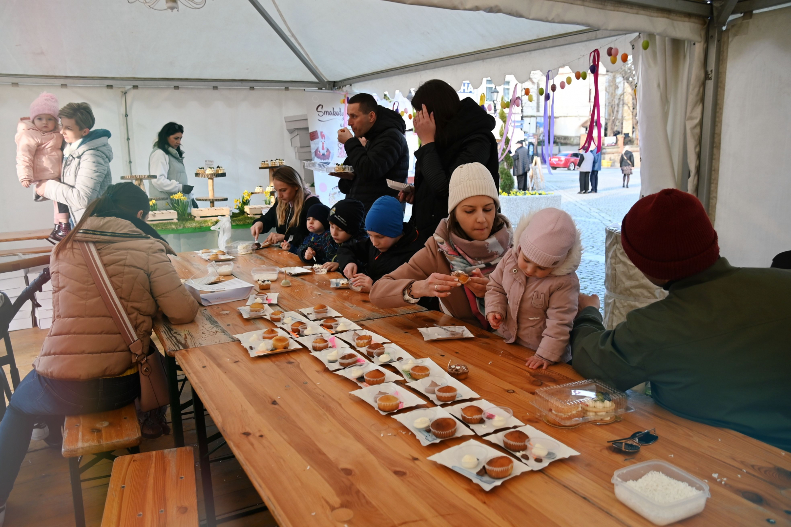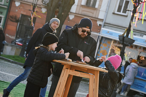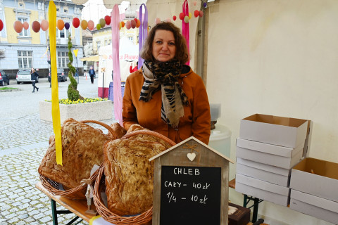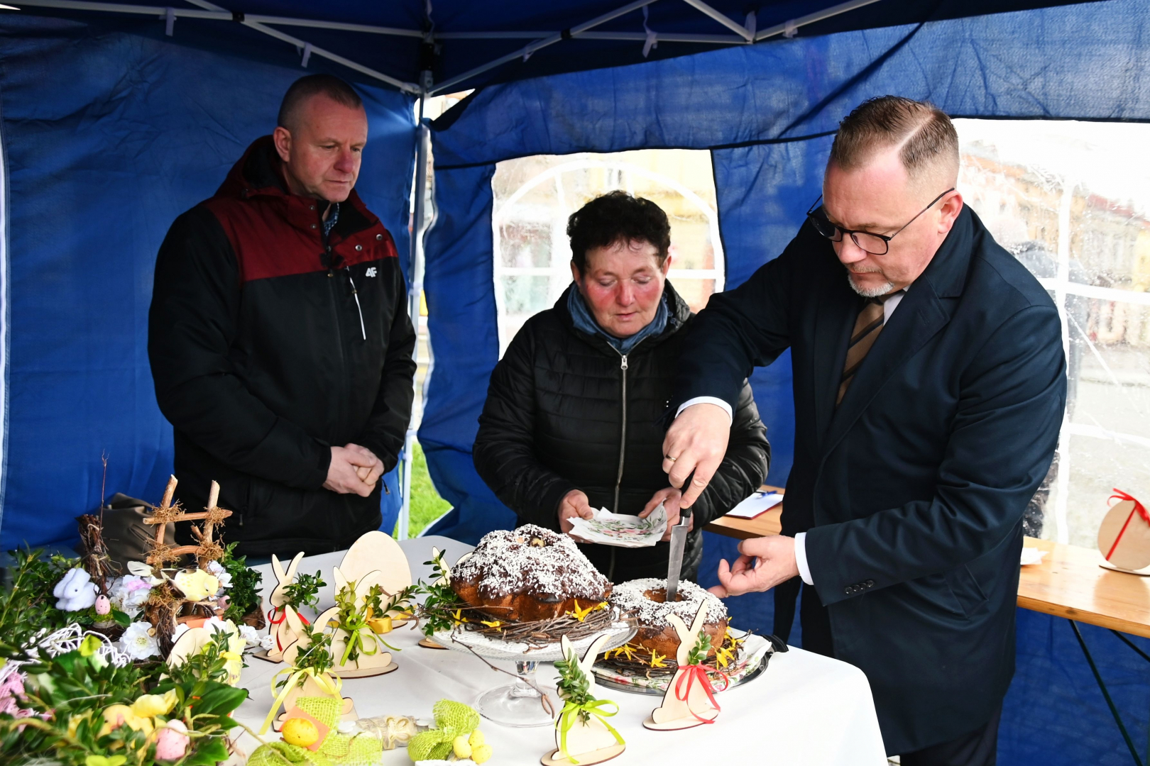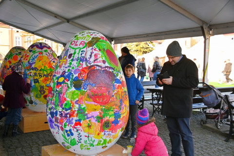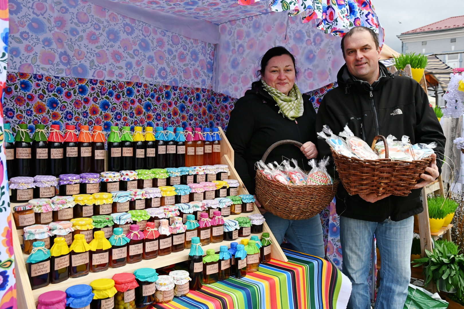 W programie tegorocznego Jarmarku zachowano sprawdzone już punkty, które cieszą się od lat niezmiennym powodzeniem. Było więc wspólne, rodzinne malowanie dużych wielkanocnych jajek XXL, w rogu Rynku została ustawiona dla dzieci łańcuchowa karuzela, przed którą po każdym rozjaśnieniu na niebie ustawiały się natychmiast spora kolejka. Nowością były przyjęte z entuzjazmem Warsztaty Cukiernicze dla Dzieci prowadzone przez Monikę Domańską, szefową firmy Smakołyki od Moniki. Oraz konkurs na najpiękniejszą i najpyszniejszą babkę wielkanocną. Przede wszystkim jednak cały plac wypełniony został ponad 30 stoiskami obsługiwanymi przez lokalnych przedsiębiorców – producentów, restauratorów i handlowców, których ofertę znakomicie uzupełniały lokalne Koła Gospodyń Wiejskich. Po raz kolejny spełnił się najważniejszy cel, jaki przyświeca organizatorom.
