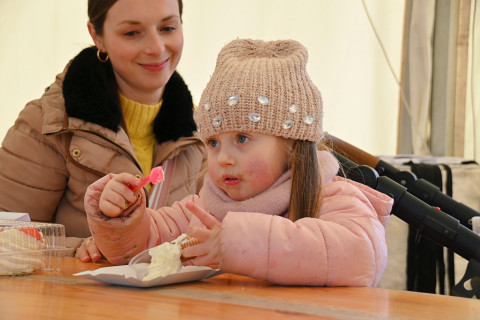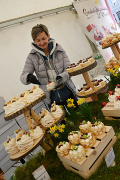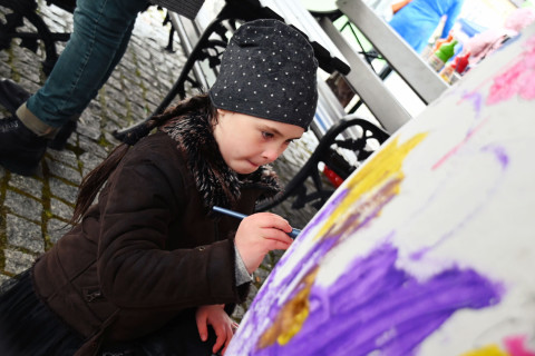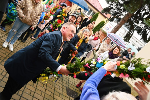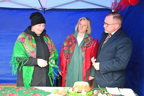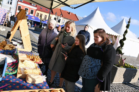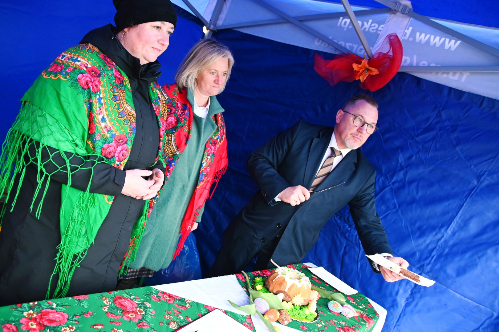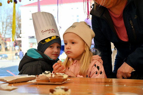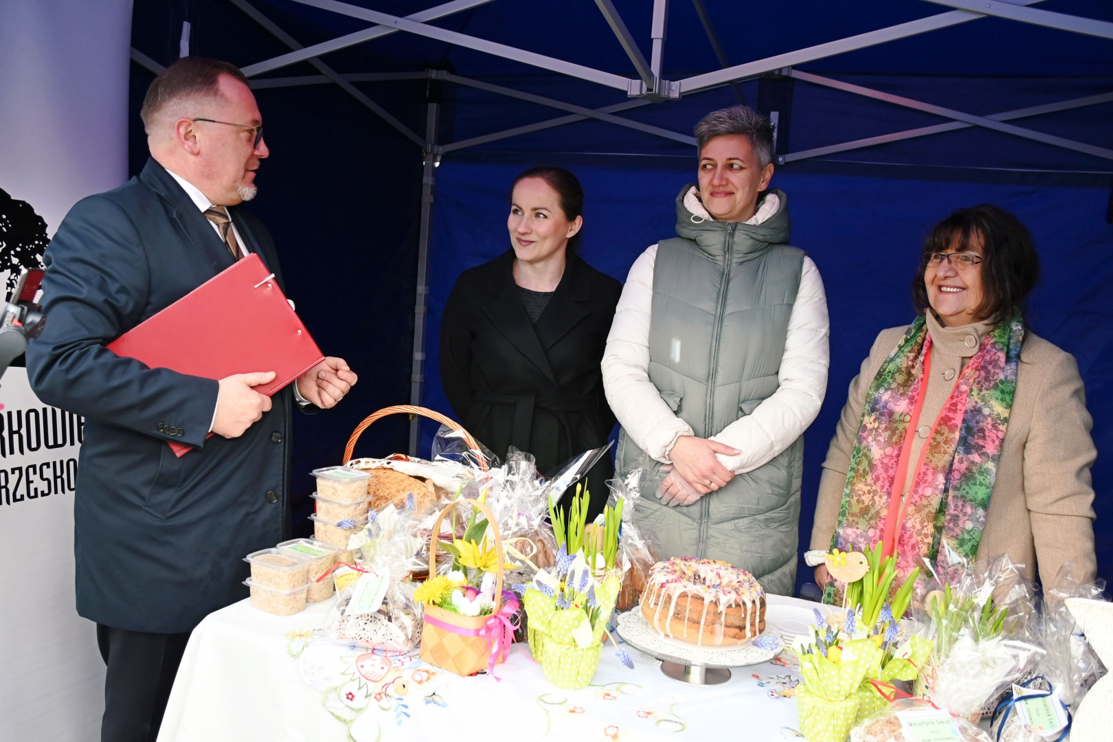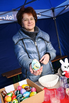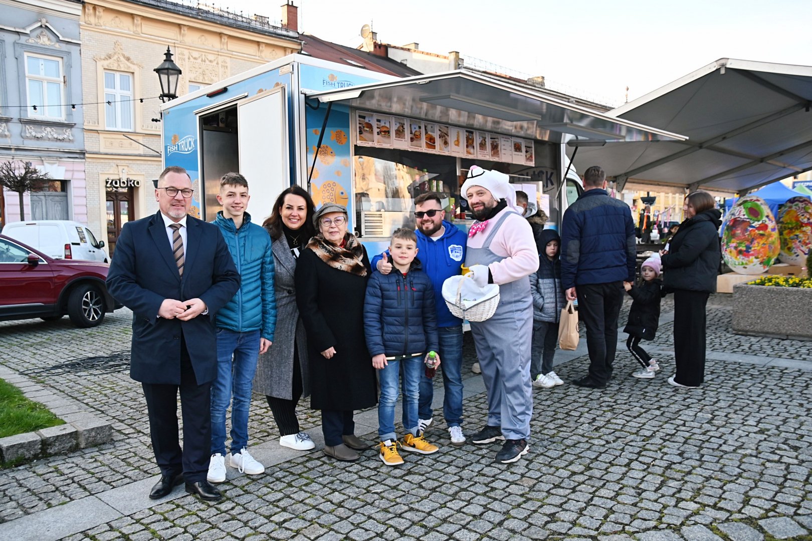 W programie tegorocznego Jarmarku zachowano sprawdzone już punkty, które cieszą się od lat niezmiennym powodzeniem. Było więc wspólne, rodzinne malowanie dużych wielkanocnych jajek XXL, w rogu Rynku została ustawiona dla dzieci łańcuchowa karuzela, przed którą po każdym rozjaśnieniu na niebie ustawiały się natychmiast spora kolejka. Nowością były przyjęte z entuzjazmem Warsztaty Cukiernicze dla Dzieci prowadzone przez Monikę Domańską, szefową firmy Smakołyki od Moniki. Oraz konkurs na najpiękniejszą i najpyszniejszą babkę wielkanocną. Przede wszystkim jednak cały plac wypełniony został ponad 30 stoiskami obsługiwanymi przez lokalnych przedsiębiorców – producentów, restauratorów i handlowców, których ofertę znakomicie uzupełniały lokalne Koła Gospodyń Wiejskich. Po raz kolejny spełnił się najważniejszy cel, jaki przyświeca organizatorom.