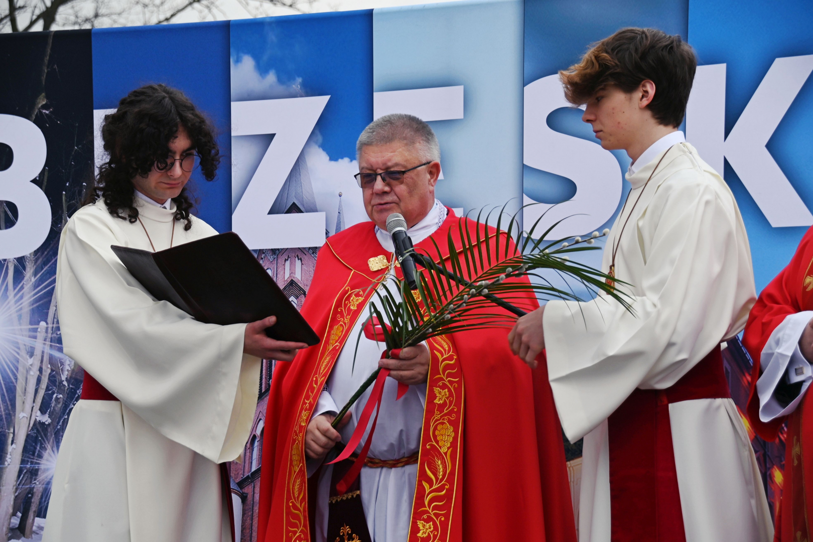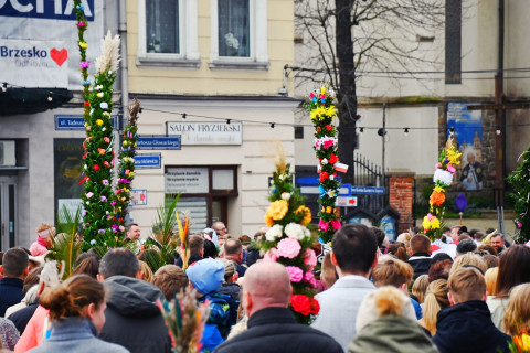 Jarmark tradycyjnie rozpoczęła msza św. poprzedzona poświęceniem przez księdza proboszcza Józefa Drabika wielkanocnych palm, z którym brzescy parafianie przybyli na Rynek. Po nabożeństwie na przykościelnym placu przeprowadzony został konkurs na największą i najpiękniejszą palmę, w którym na zwycięzców i większość uczestników czekały nagrody ufundowane przez Urząd Miejski.