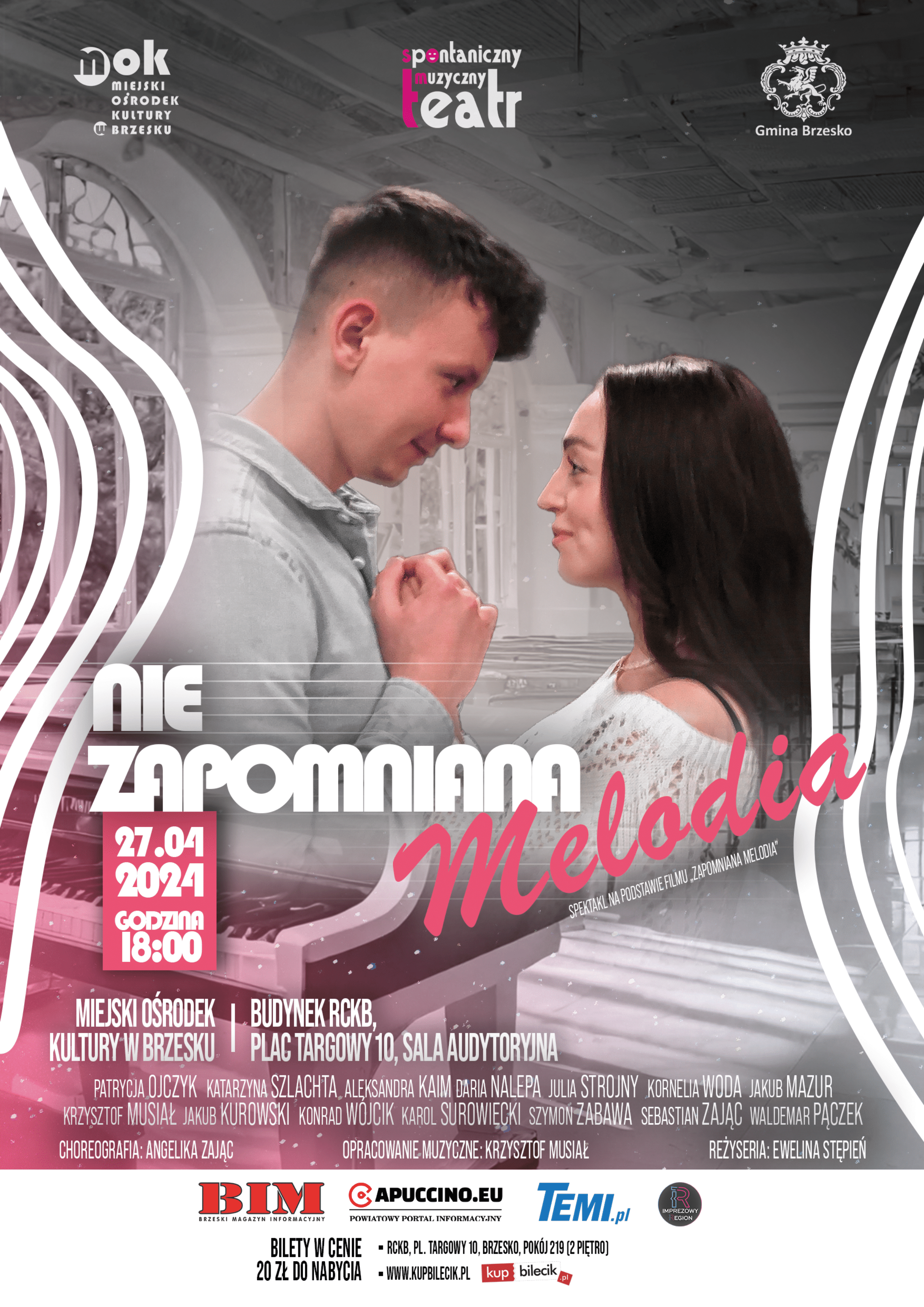 Spontaniczny Teatr Muzyczny działający w Miejskim Ośrodku Kultury w Brzesku powraca na scenę z kolejną sztuką. Tym razem grupa zaprasza widzów na spektakl NIE-zapomniana melodia, a więc w świat wielkich interesów, wielkiej miłości i jeszcze większych nieporozumień. Wszystko jak zwykle doprawione sporą dawką dobrego humoru, znanymi piosenkami oraz świetnym aktorstwem.