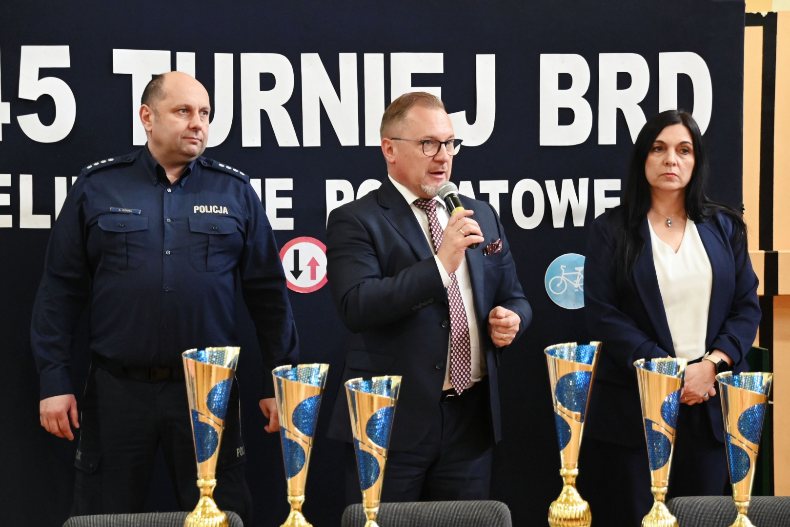 Turniej Bezpieczeństwa w Ruchu Drogowym cieszy się wśród młodzieży niezmiennie olbrzymią popularnością. Jest jednym z nielicznych konkursów, w których oprócz wiedzy teoretycznej trzeba wykazać się sprawnością fizyczną i umiejętnością przepisowego poruszania się po drogach. Każdy uczestnik przechodzi przez trzy etapy – test wiedzy w zakresie ruchu drogowego, tor przeszkód i prezentację umiejętności podczas jazdy po miasteczku rowerowym. O kolejności miejsc w końcowej klasyfikacji decydowała suma punktów zdobytych we wszystkich konkurencjach. Do klasyfikacji drużynowej zaliczano łączną ilość punktów zgromadzonych przez wszystkich członków każdego zespołu. Zgodnie z regulaminem, w kategorii młodszej drużyny składały się z czterech osób – dwóch dziewcząt i dwóch chłopców. W kategorii starszej startowały zespoły 3-osobowe w dowolnym składzie. Do eliminacji wojewódzkich awansowały tylko drużyny, które zajęły pierwsze miejsca. Ich opiekunami byli Jerzy Chrabąszcz oraz Piotr Jawor, którzy także koordynowali całość wydarzeń związanych z organizacją turnieju. Zarówno im jak i wszystkim uczestnikom wydarzenia należą się słowa uznania za zaangażowanie, postawę fair play oraz wolę walki, bowiem rywalizacja toczyła się w niesprzyjających warunkach, przy padającym deszczu.