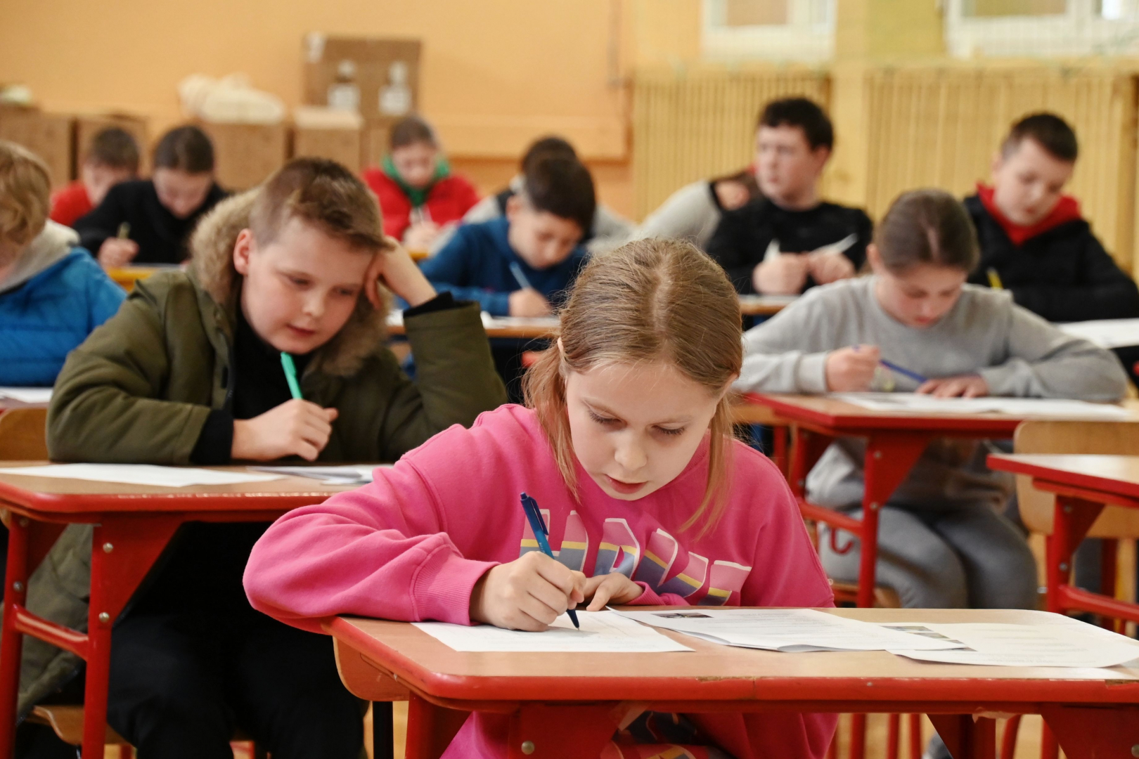 Klasy IV-V: Milena Topolska, Barbara Węgrzyn, Wojciech Chudy, Stanisław Zapiór.