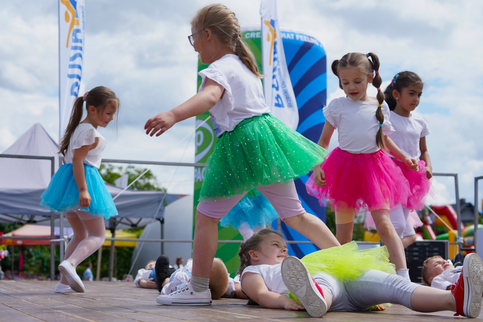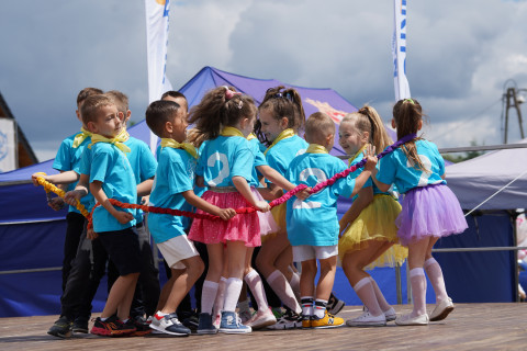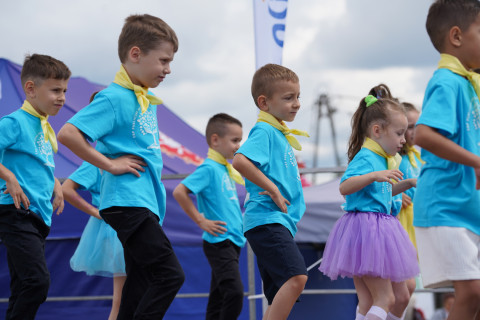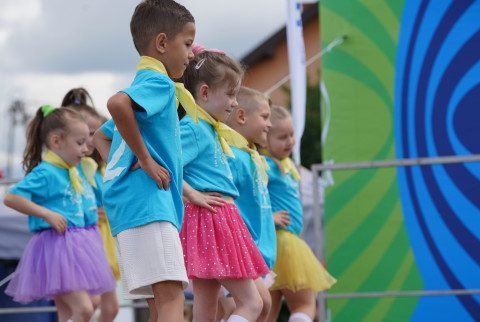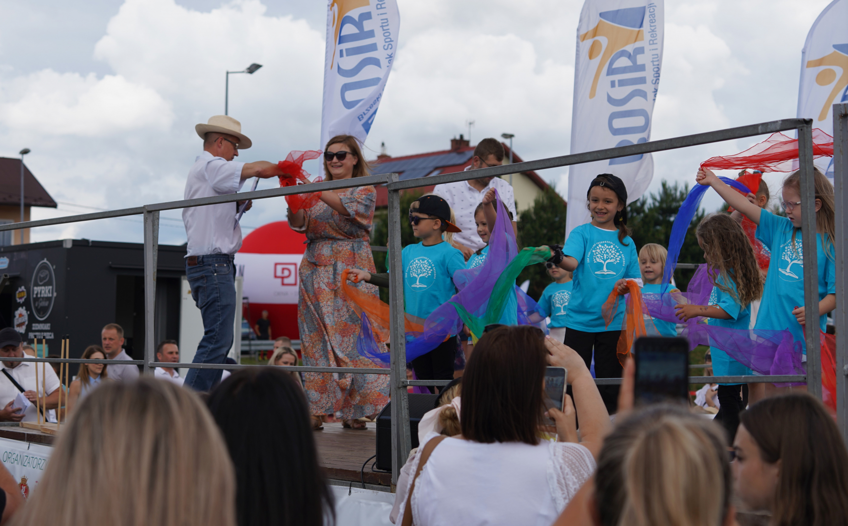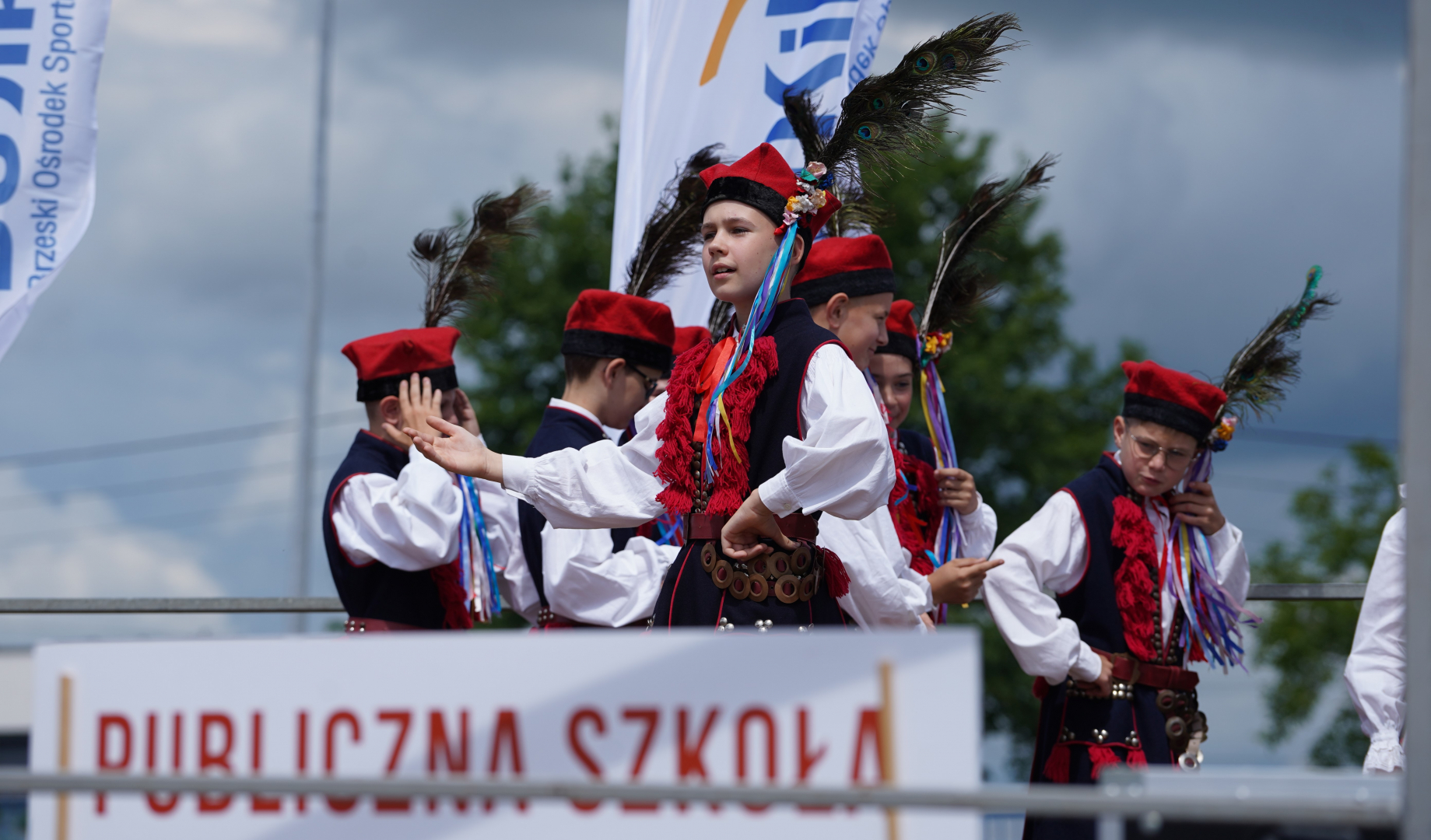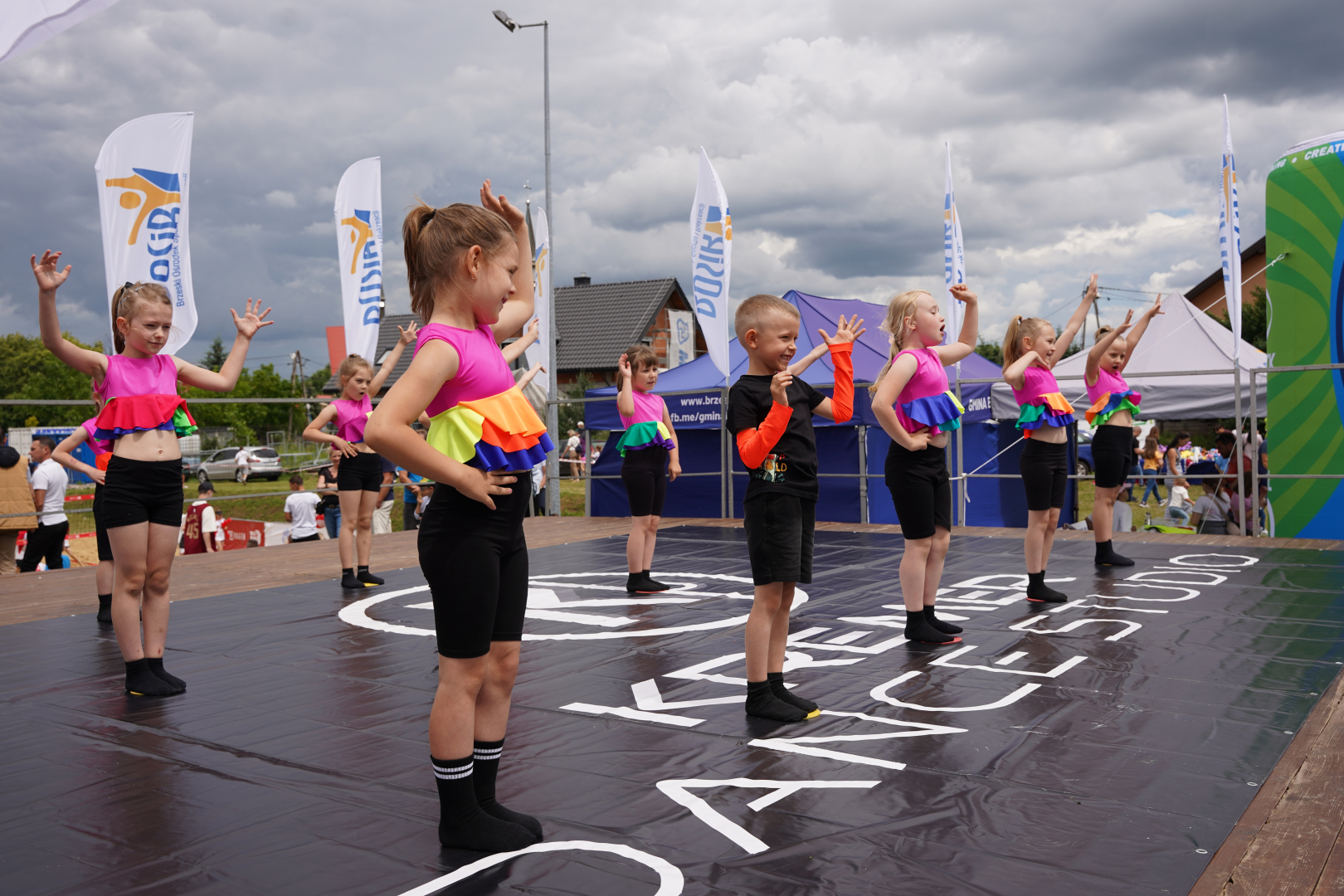 Uczniowie ze Szkoły Podstawowej w Porębie Spytkowskiej zaprezentowali występ folklorystyczny. Grupa prowadzona przez Anetę Gurak wystąpiła niejako wkrótce po podróży do Warszawy, gdzie reprezentowała gminę Brzesko na Ogólnopolskim Konkursie „Piątka z narodowych”. Sporo było popisów tanecznych w wykonaniu wychowanków Kremer Dance Studio, Modern Studio Tańca oraz Thomas Dance. Niezwykle interesująca była propozycja uczniów Szkoły Podstawowej w Buczu, którzy na jednej scenie, wspólnie ze swoimi rodzicami, wystawili sztukę „Kopciuszek na wesoło”, nagrodzoną przez liczną publiczność rzęsistymi oklaskami. Główną atrakcją bloku występów artystycznych był spektakl zaprezentowany przez Teatr Jednej Miny, którego aktorzy już od pierwszych minut nawiązali znakomity kontakt z widzami, tworząc wspólnie widowisko pełne iluzji i tricków cyrkowych. Ten spontaniczny spektakl rozpoczął się na scenie, jednak bardzo szybko przeniósł się niemal we wszystkie rejony piknikowego placu. Całość wypełniały liczne zabawy i gry muzyczno-ruchowe prowadzone przez mające już swoją wysoką markę animatorki z firmy Fiku Miku Klaudii Solak.