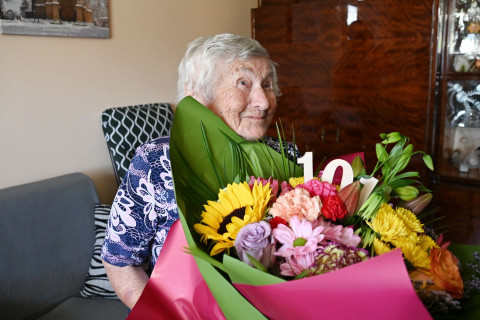 Stulatka otrzymała od burmistrza Brzeska bukiet kwiatów oraz ufundowane przez Urząd Miejski upominki. Wszyscy goście złożyli jubilatce życzenia dalszych długich lat życia, pełnego zdrowia, szczęścia i wielu pomyślnych chwil.