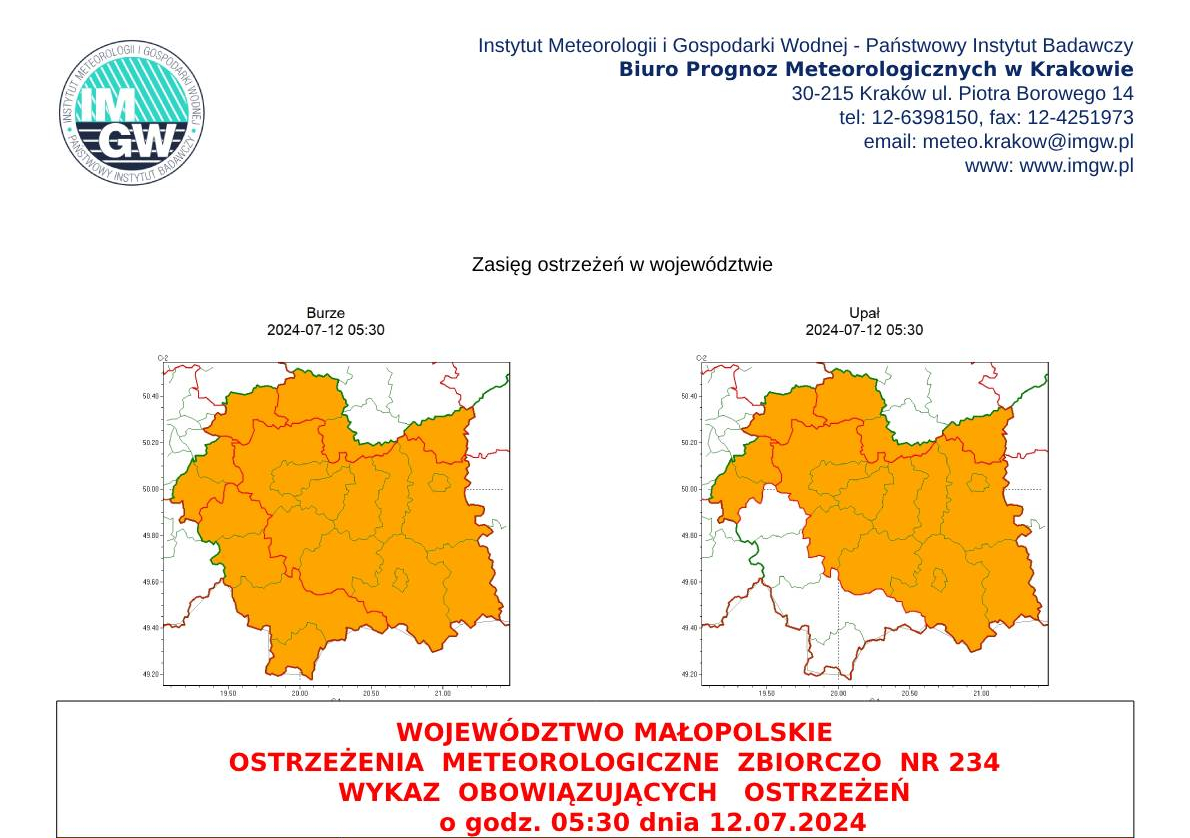 WOJEWÓDZTWO MAŁOPOLSKIE OSTRZEŻENIA METEOROLOGICZNE