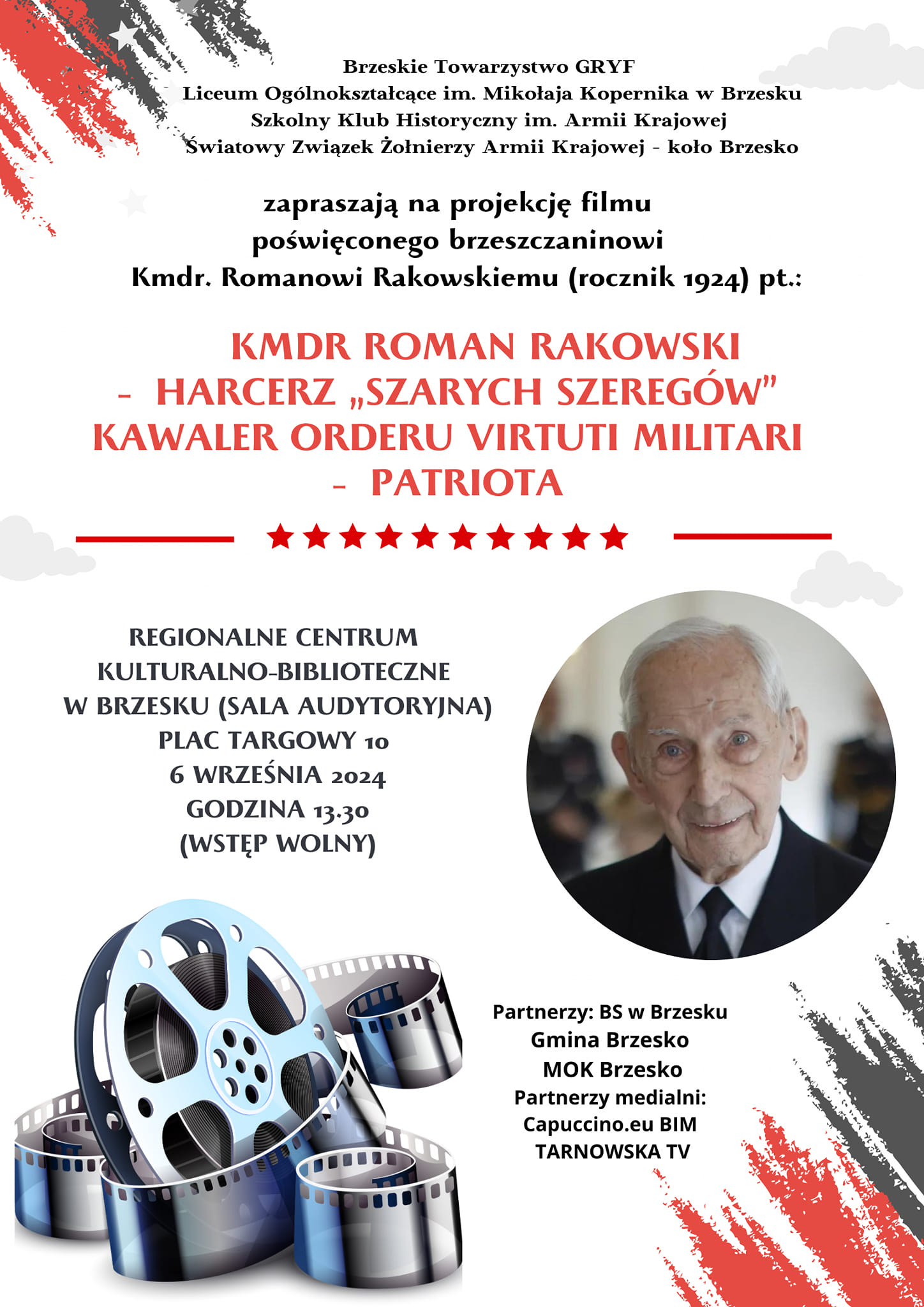 Zapraszamy na projekcję filmu poświęconego brzeszczaninowi kmdr. Romanowi Rakowskiemu.Szczegóły na plakacie.