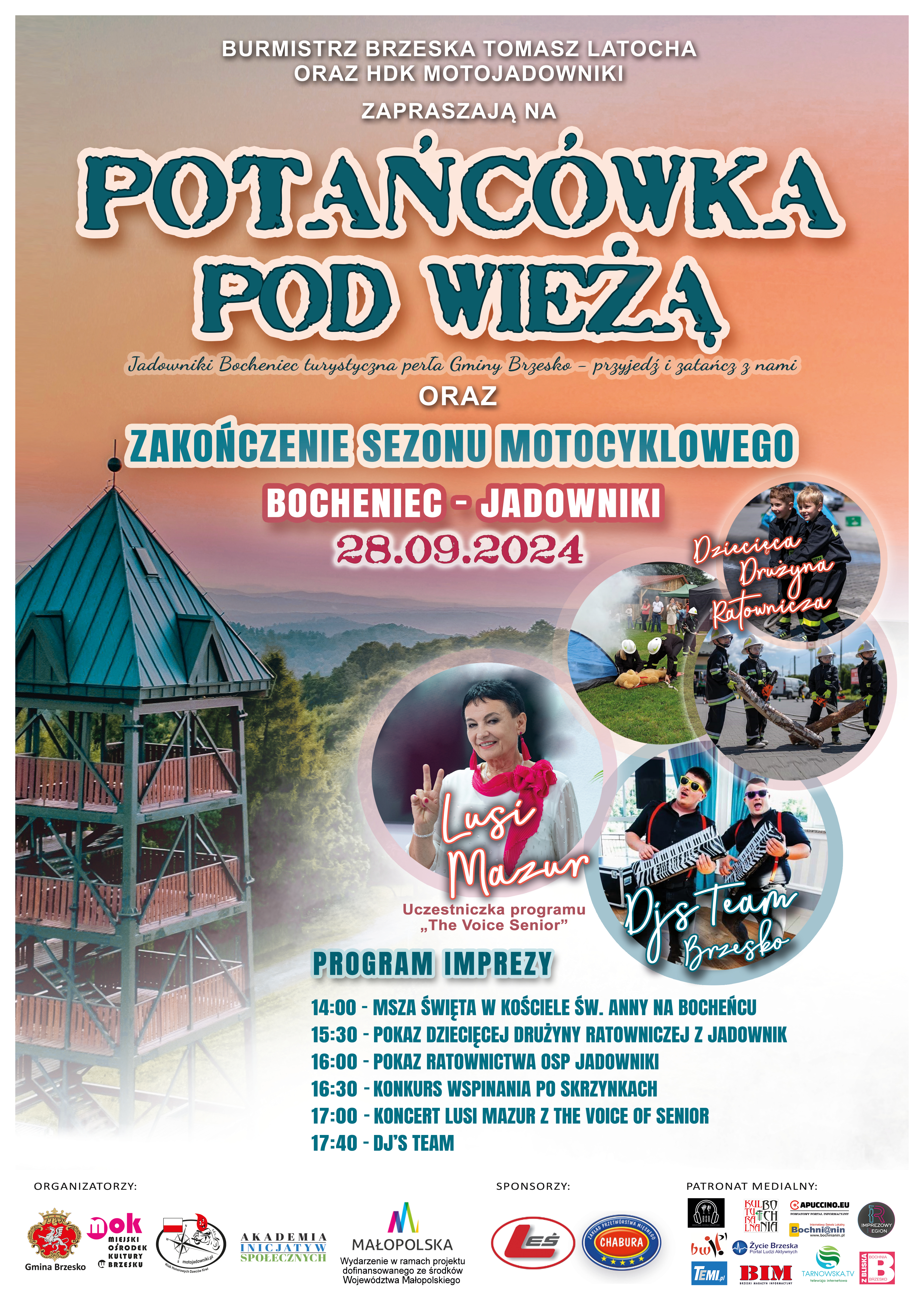 Burmistrz Brzeska Tomasz Latocha oraz HDK Motojadowniki zapraszają na potańcówkę pod wieżą oraz zakończenie sezonu motocyklowego, które odbędzie się 28.09.2024 r.