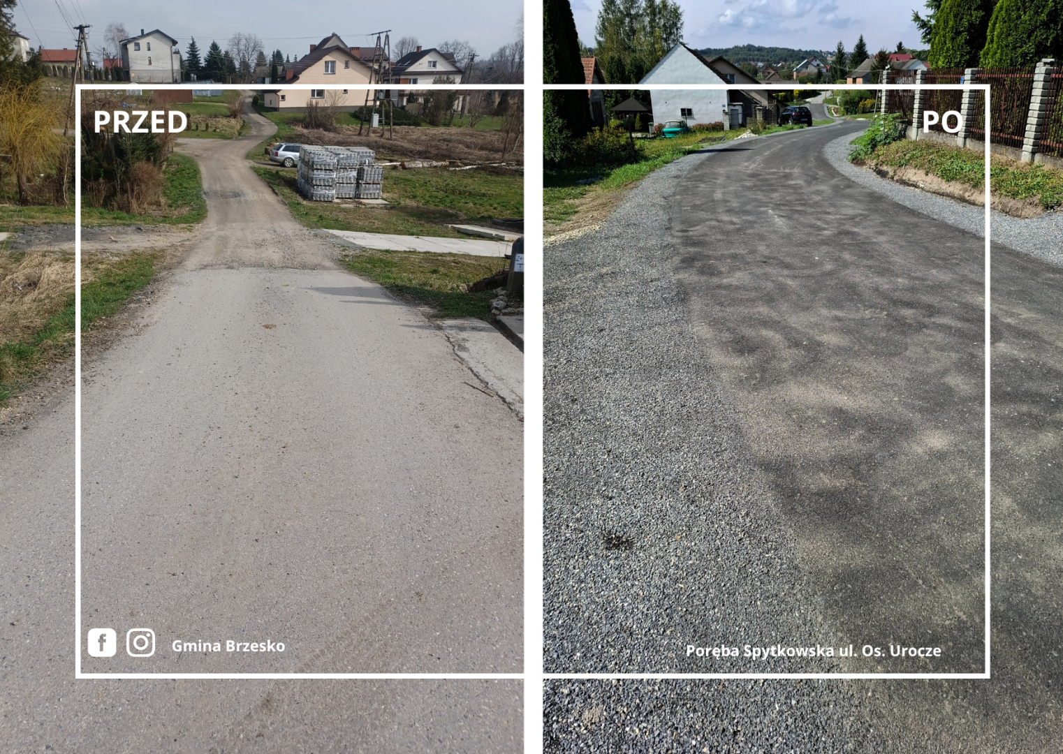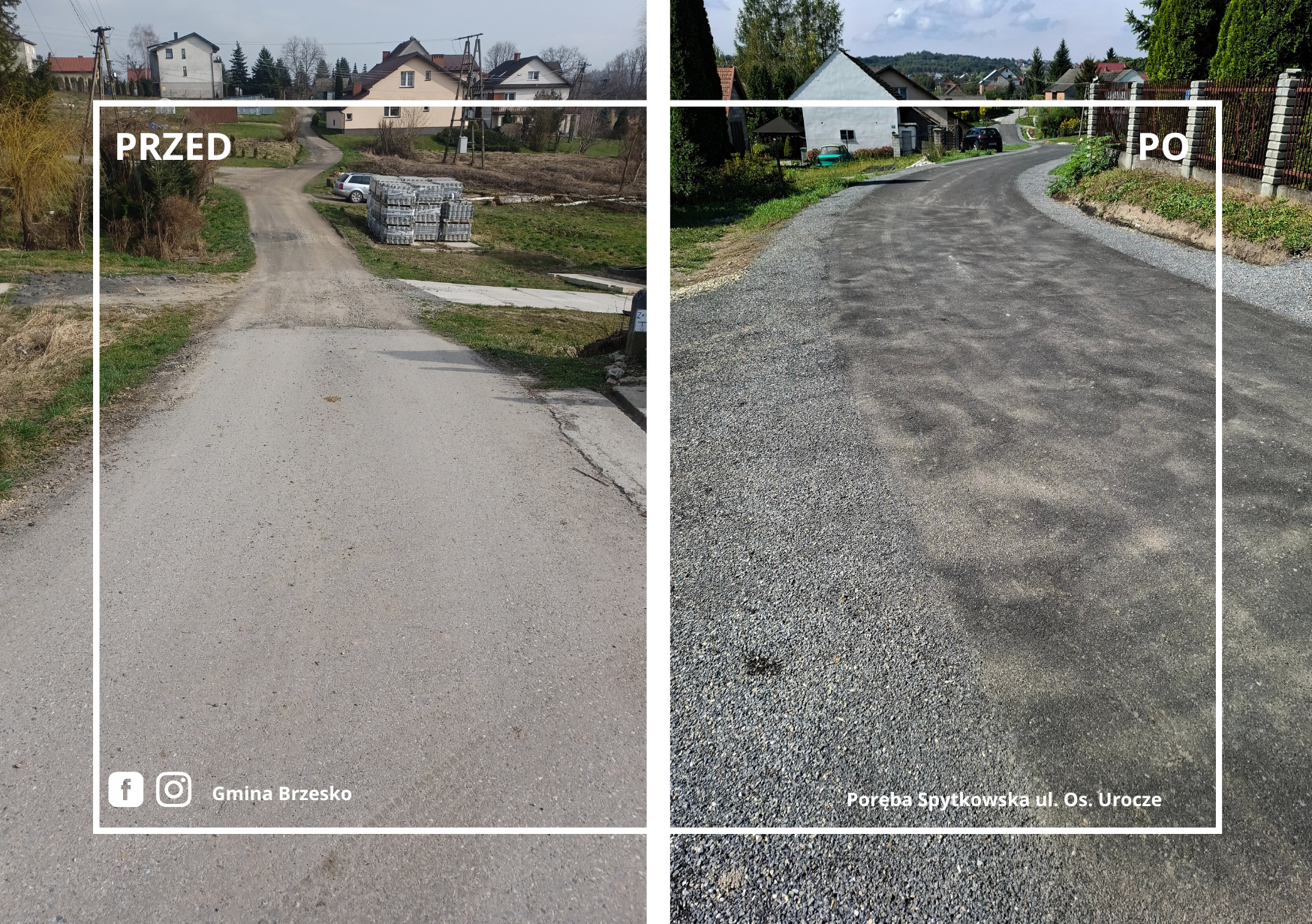 W pierwszych dniach września br. zakończyła się rozbudowa drogi gminnej na osiedlu Urocze w Porębie Spytkowskiej. Inwestycja została zrealizowana na 200-metrowym odcinku, stanowiącym połączenie z wyremontowaną w zeszłym roku drogą wiodącą do miejscowego cmentarza. Wartość zadania wyniosła 493 295,07 złotych, z czego 220 403 złote to dofinansowanie z Rządowego Funduszu Rozwoju Dróg, a środki własne Gminy Brzesko – 272 892,07 zł.