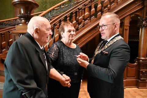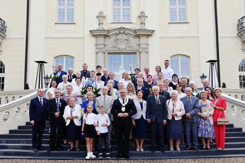 Przez trzy dni w zabytkowych wnętrzach Pałacu Goetzów burmistrz Brzeska Tomasz Latocha praz kierownik USC Aleksandra Fijałkowska gościli pary małżeńskie, które w tym roku obchodzą okazałe rocznice ślubów. Wszyscy jubilaci otrzymali pamiątkowe medale, bukiety kwiatów i listy gratulacyjne. Specjalnie dla nich przygotowano też poczęstunek i występy w wykonaniu młodych artystów z Miejskiego Ośrodka Kultury.