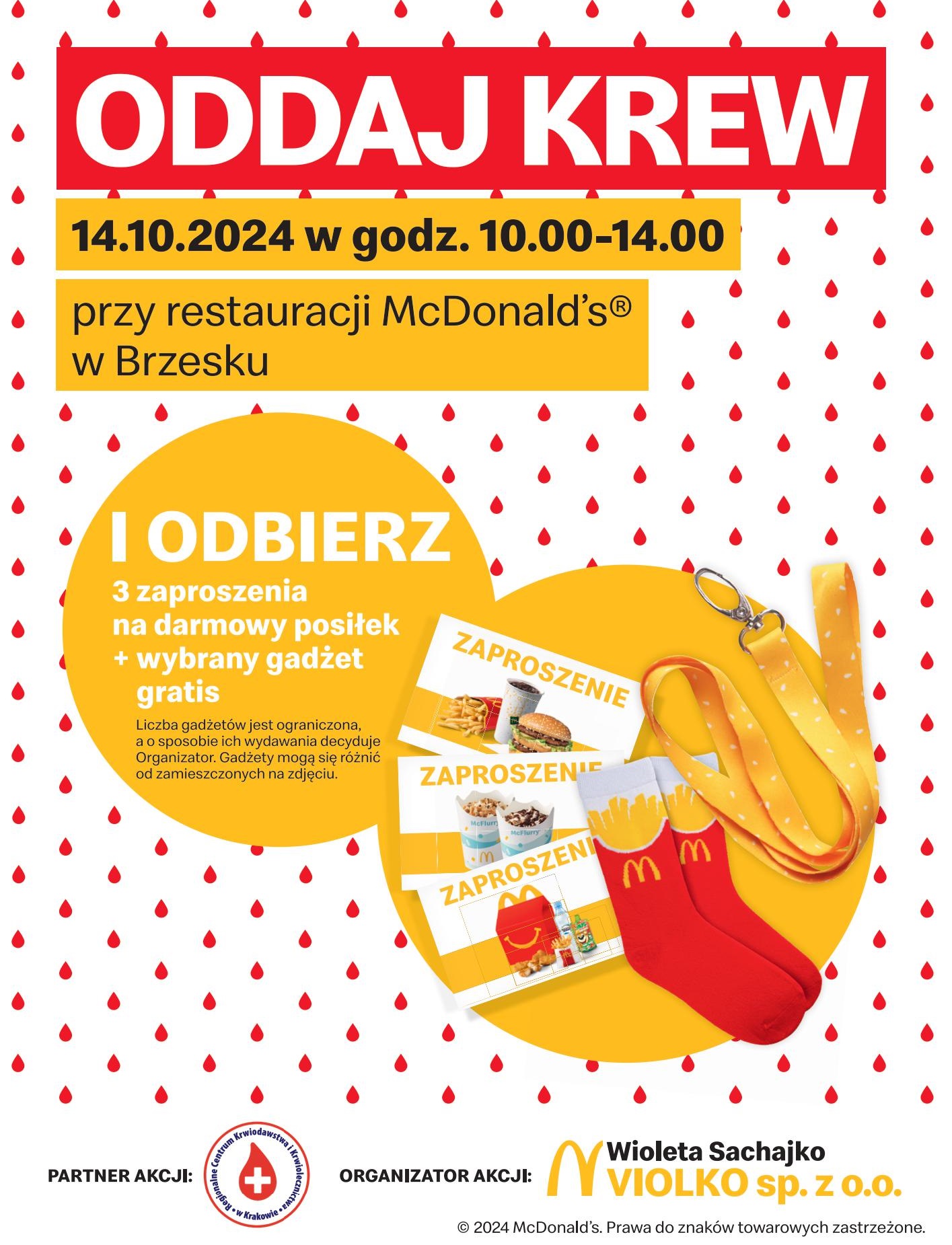 Firma Violko Sp. z o.o. zaprasza na akcję krwiodawstwa, która odbędzie się 14 października br. w godz. 10:00 - 14:00 przy restauracji McDonald's.