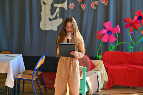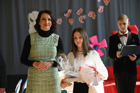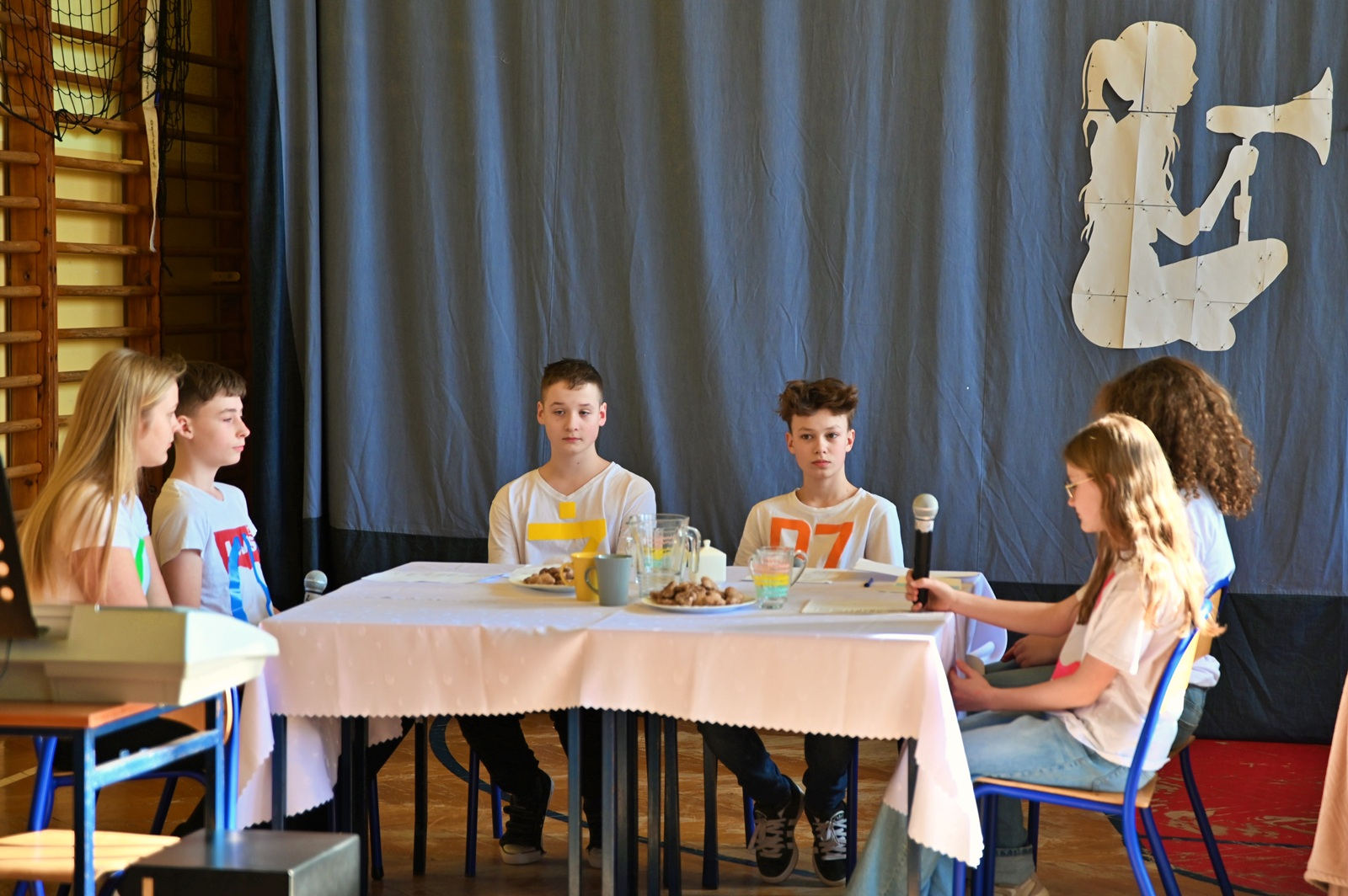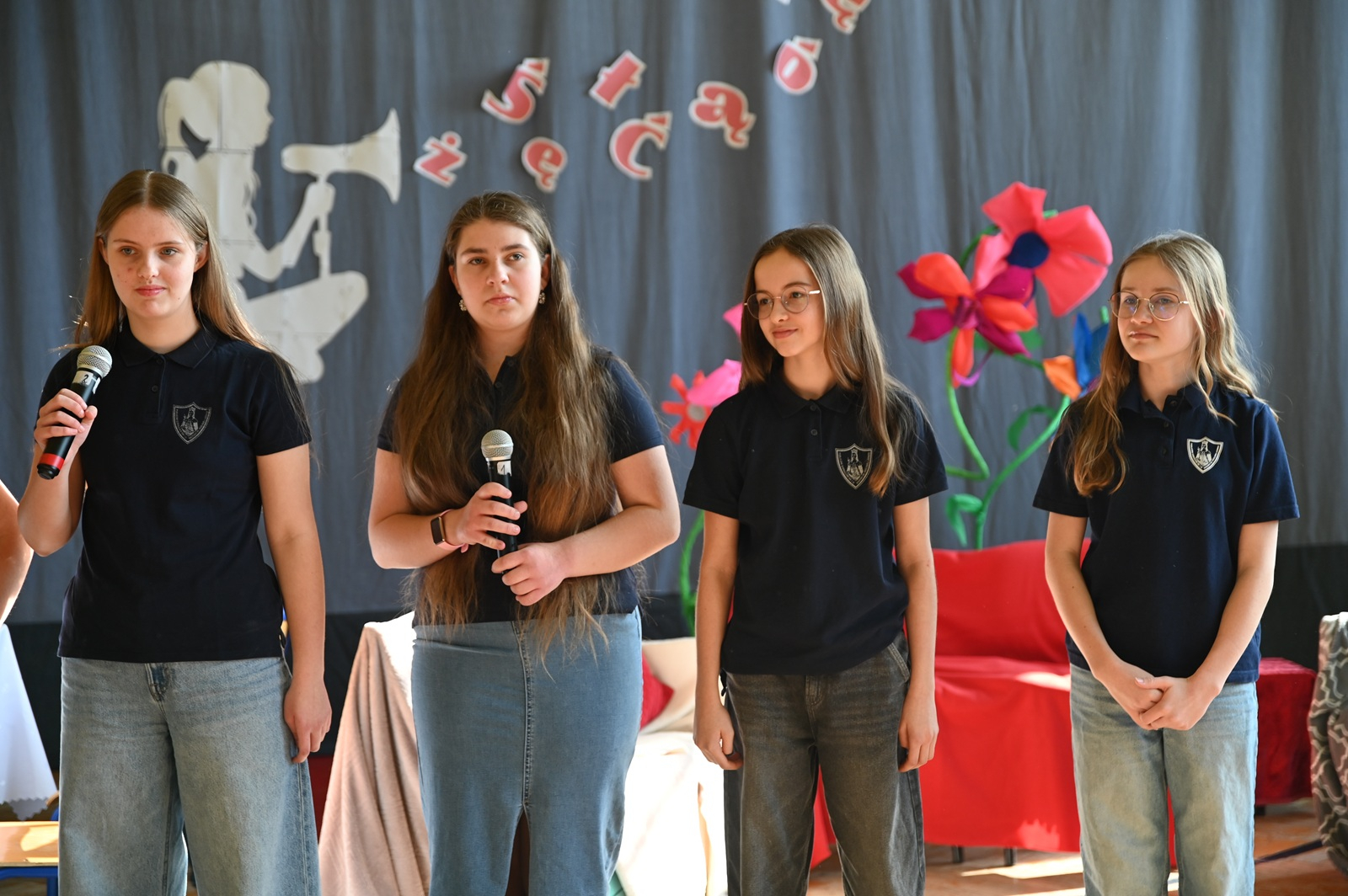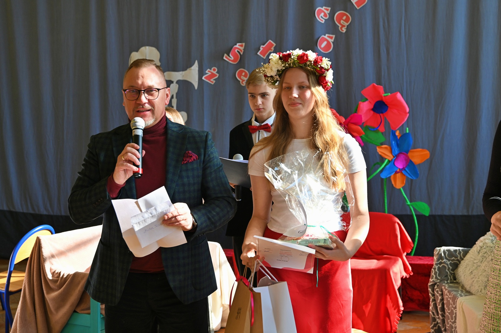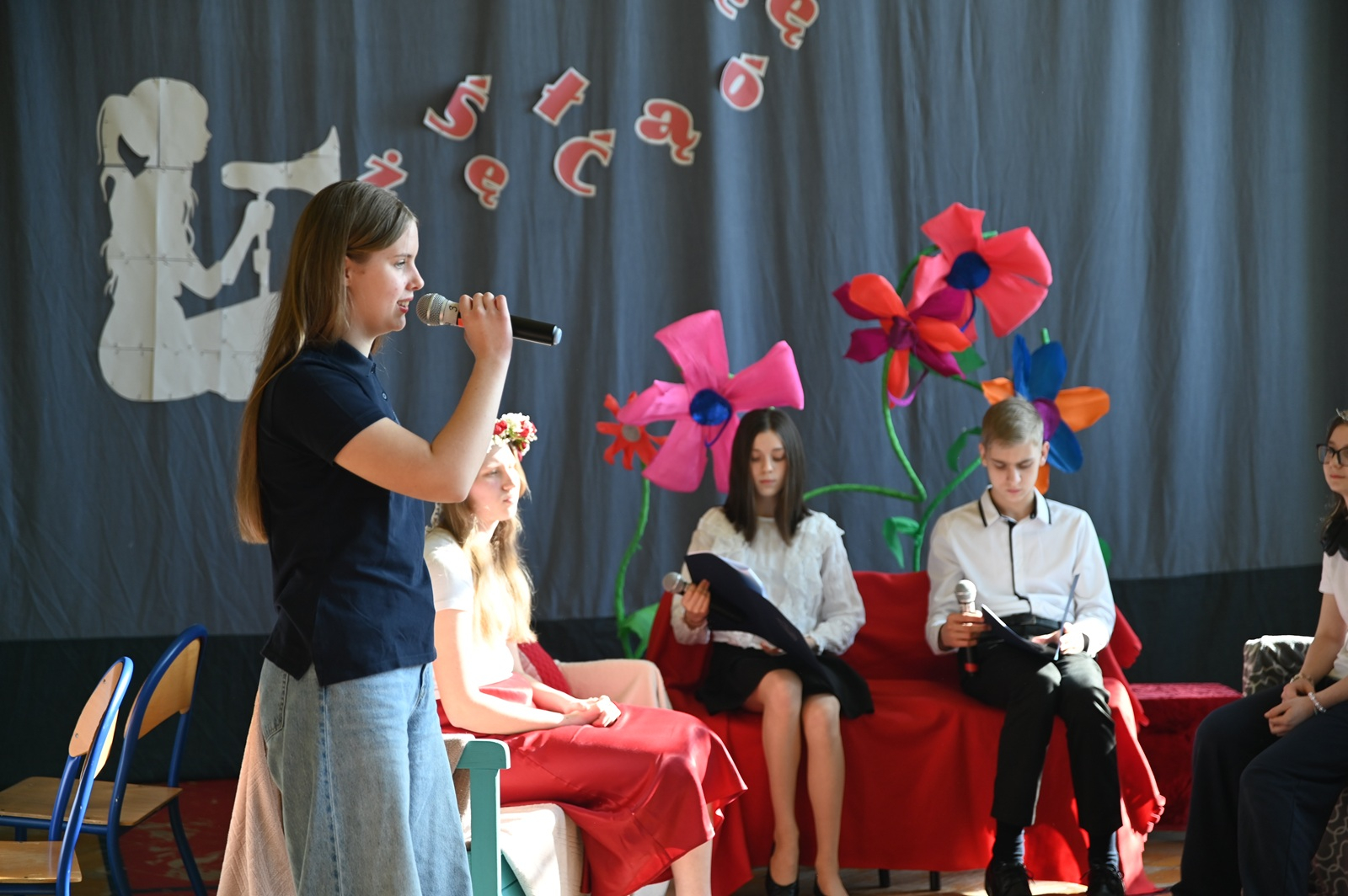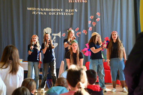 Całość rozpoczęła część artystyczna przygotowana przez nauczycielkę Agnieszkę Szczepanek oraz uczniów klasy 6b i 7a. Szczególny podziw publiczności wzbudziło bezbłędne deklamowanie przez występujących różnorakich łamańców językowych, pomysłowe porównania mowy potocznej i ojczystej, a także prezentacje muzyczne – polskie utwory zaprezentowała Kornelia Świątkowska oraz zespół Sigma Babki. Wybrzmiały Dni, których jeszcze nie znamy, Nic dwa razy się nie zdarza oraz Radość najpiękniejszych lat.