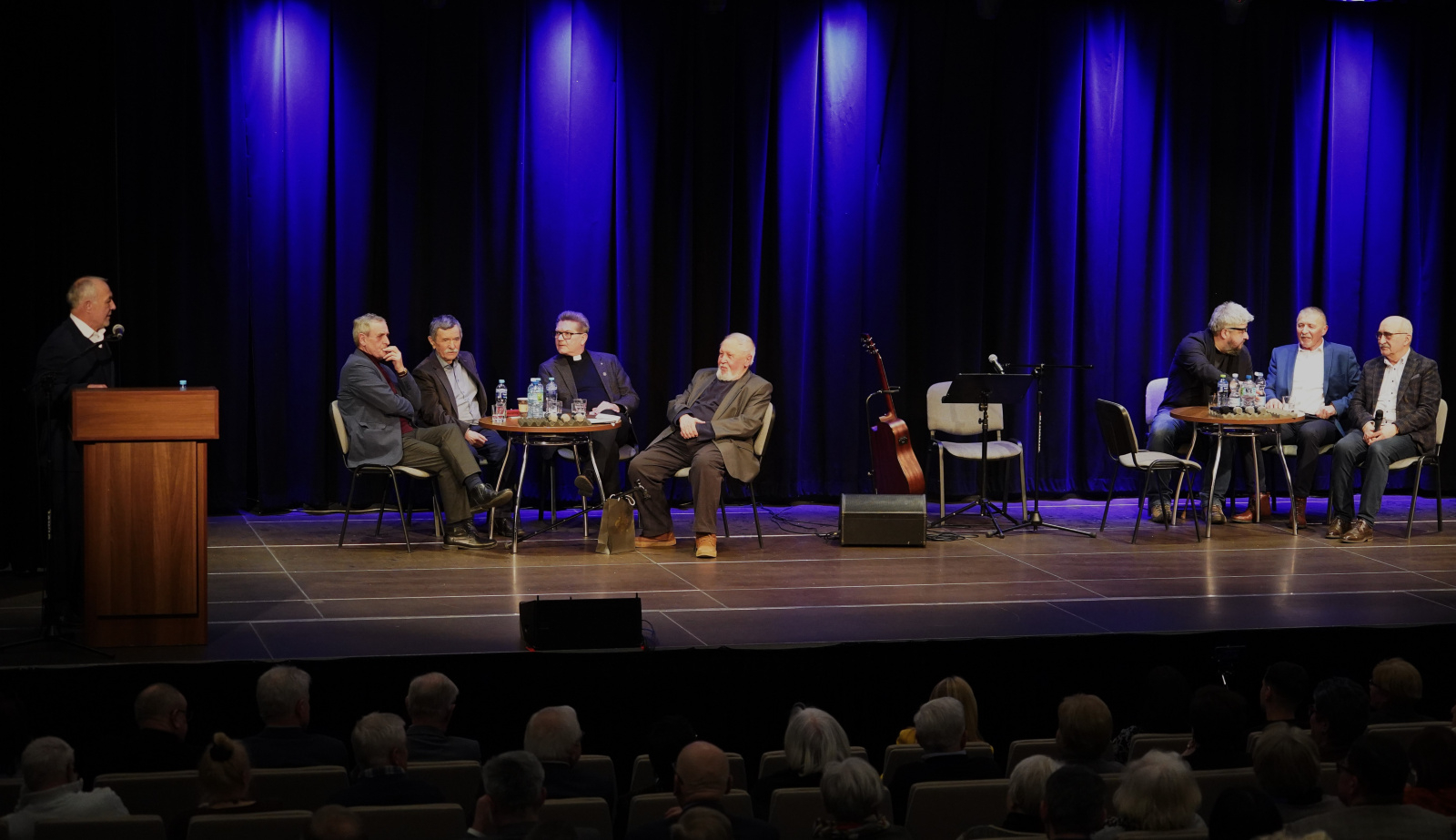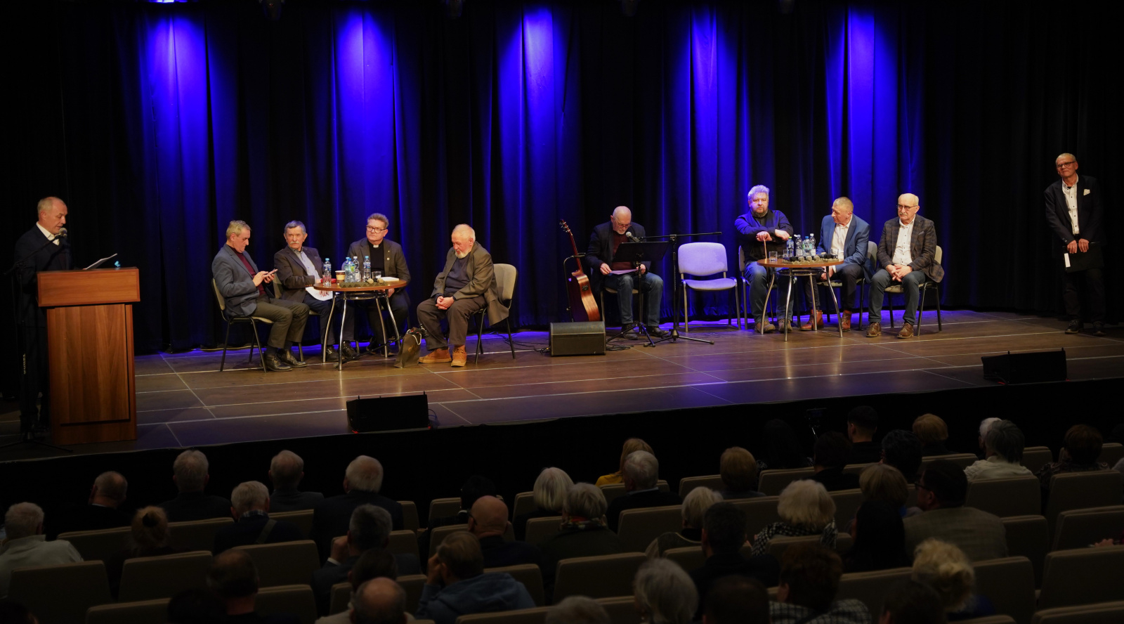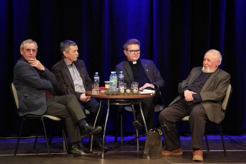 Termin spotkania zbiegł się z obchodami Międzynarodowego Dnia Języka Ojczystego, toteż tego wieczora zdecydowanie dominowała wysokich lotów polszczyzna, a najjaśniej świeciła gwiazda Beneficjenta. Przez trzy godziny (ten czas minął niepostrzeżenie) wiodącym tematem była poezja, przeplatana odniesieniami do prozy życia, uzupełniona anegdotami i faktami z życia Marka Karwali, którego sylwetka została przybliżona w krótkim filmie stanowiącym wstęp do panelu dyskusyjnego z udziałem wybitnych polskich poetów i nauczycieli akademickich. Do Brzeska specjalnie na ten wieczór przybyli prof. dr. hab. Jan Blecharz, prof. dr hab. Stanisław Koziara, prof. dr hab. Roman Mazurkiewicz, poeci Józef Baran, dr Eligiusz Dymowski i Adam Ziemianin oraz Kazimierz Brzyk i Grzegorz Karwala. Dyskusję prowadzili Marek Latasiewicz i Ryszard Ożóg, a całe wydarzenie odbywało się przy szczelnie wypełnionej widowni. Publiczność stanowili znajomi, sąsiedzi, byli studenci i przyjaciele Profesora, miłośnicy poezji i zwykli mieszkańcy wiedzeni ciekawością i chęcią poszerzenia wiedzy na temat swojego wybitnego Krajana. Już po oficjalnej, kilkugodzinnej części publiczność przeniosła się do foyer budynku RCK-B, by prowadzić kuluarowe rozmowy.