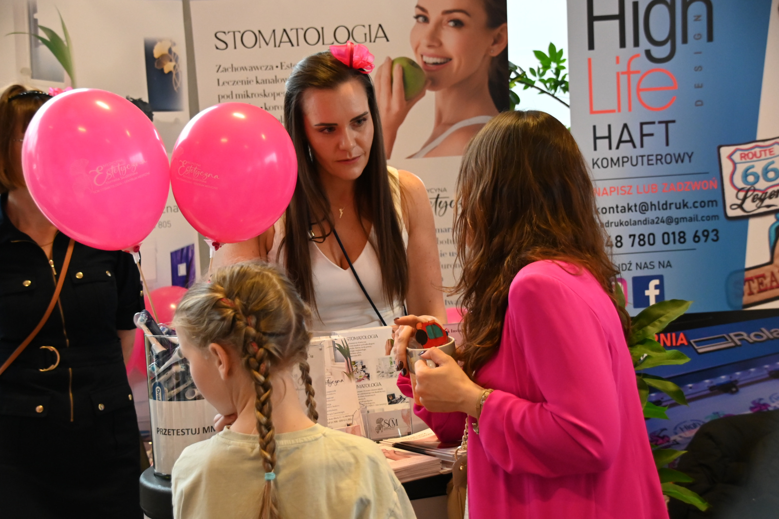 Wyjątkowo obficie prezentowały się w tym roku wystawiennicze stoiska, do których rozmieszczenia zostały wykorzystane wszystkie trzy kondygnacje budynku RCK-B. Łącznie było ich około trzydziestu. Poza firmami będącymi sponsorami całego wydarzenia, z powodzeniem prezentowały się ponadto Agnieszka Nowacka oferująca sportową odzież i obuwie, panie z Okocimskiego Klubu Tenisowego, Lucyna Stachura ze swoją „W Pudełku Kwiaciarnią”, Dorota Wójcik (Studio Hair Inspiration), Patrycja Grzesik (Beauty Bar), Gabriela Samek (Gabriela’Lashes) oraz Katarzyna Młynarczyk (Kwitnący Ogród). Swoje stoiska przygotowały także Klaudia Jeleń (Fizjo&Fitness), Agnieszka Chochoł (Warsztaty na różowo), Katarzyna Gierak (zapachowe świece sojowe), a także druhny z żeńskiej i młodzieżowej drużyny OSP Jadowniki i funkcjonariuszki Komendy Powiatowej Policji w Brzesku oraz przedstawiciele brzeskiego Sanepidu.