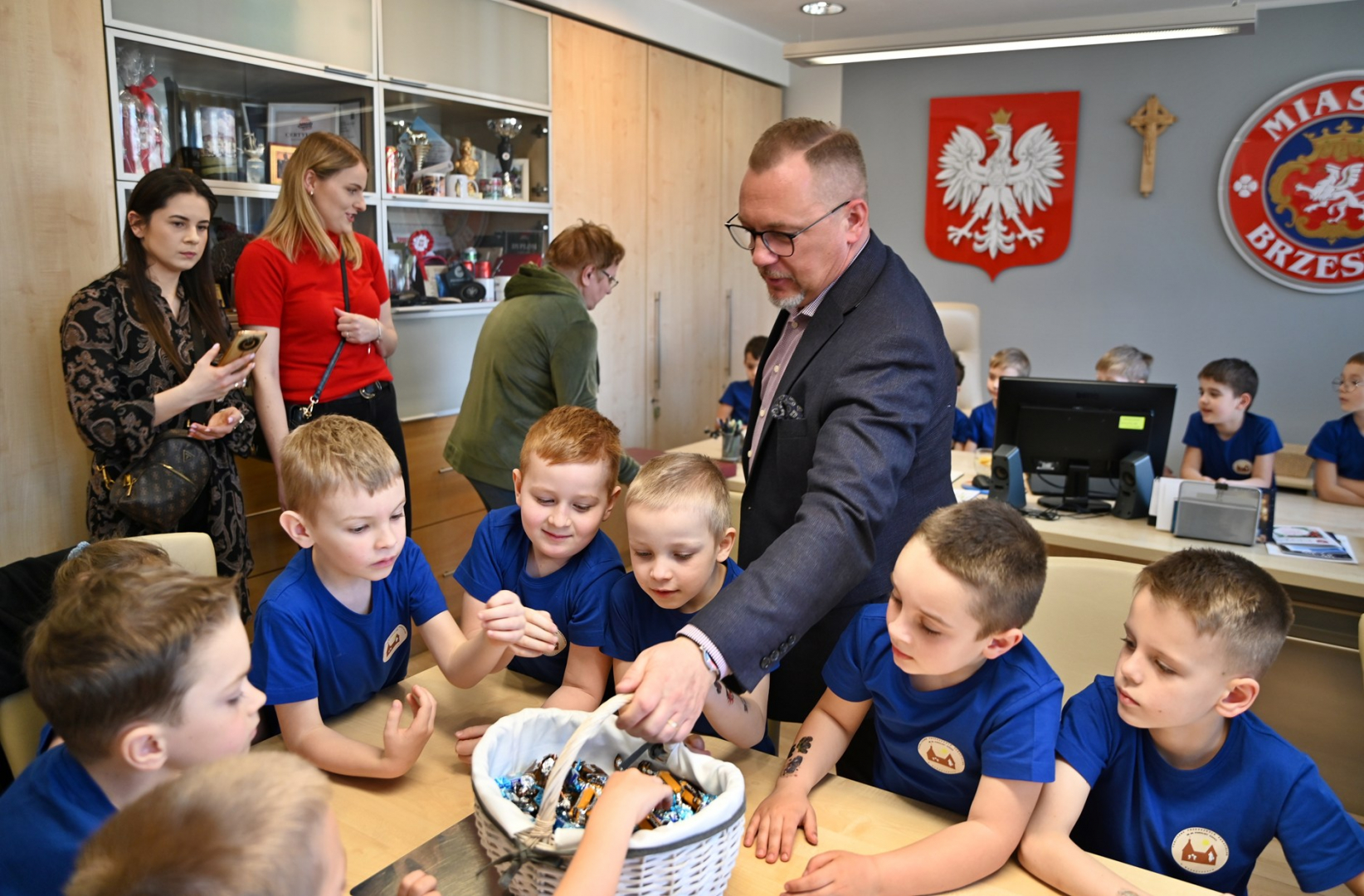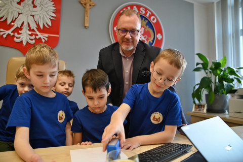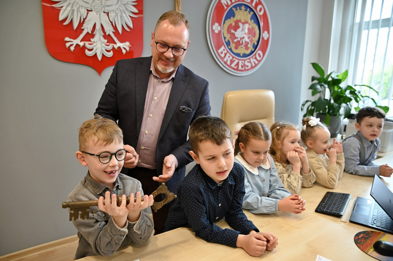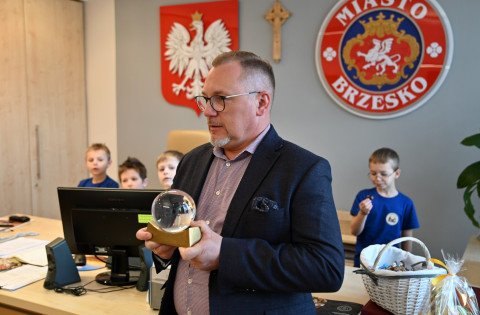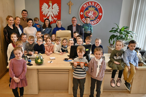 Wizytę w brzeskim magistracie złożyły dzieci z Publicznego Przedszkola Parafialnego im. Bł. Karoliny Kózki w Mokrzyskach, Publicznego Przedszkola Integracyjnego im. Św. S. Faustyny w Brzesku oraz Niepublicznego Przedszkola Zgromadzenia Sióstr Służebniczek BNDP w Jasieniu. Spotkania były okazją do wzajemnego złożenia sobie świątecznych życzeń. Mali goście wykorzystali czas pobytu u gospodarza gminy, aby w pełni zaspokoić wszystkie swoje pytania i wątpliwości dotyczące zarządzania lokalnym samorządem. Sami wykazali się przy tym dużą znajomością zagadnień, a większość sformułowanych pytań świadczyła o tym, że nawet najmłodsi mieszkańcy gminy starają się jak najwięcej wiedzieć na tematy, które tylko z pozoru są domeną dorosłych. Oczywiście, znalazł się również czas na bardziej luźne spędzenie tego czasu. W ruch poszły więc urzędowe pieczęcie, telefony i inne akcesoria (proszę się nie martwić – wszystko w kontrolowanym zakresie), jednak największym zainteresowaniem cieszył się symboliczny klucz do miasta. – To było bardzo miłe spotkanie – pełne uśmiechu, ciekawości i nauki przez zabawę. Dziękujemy za wizytę – kwituje Tomasz Latocha.