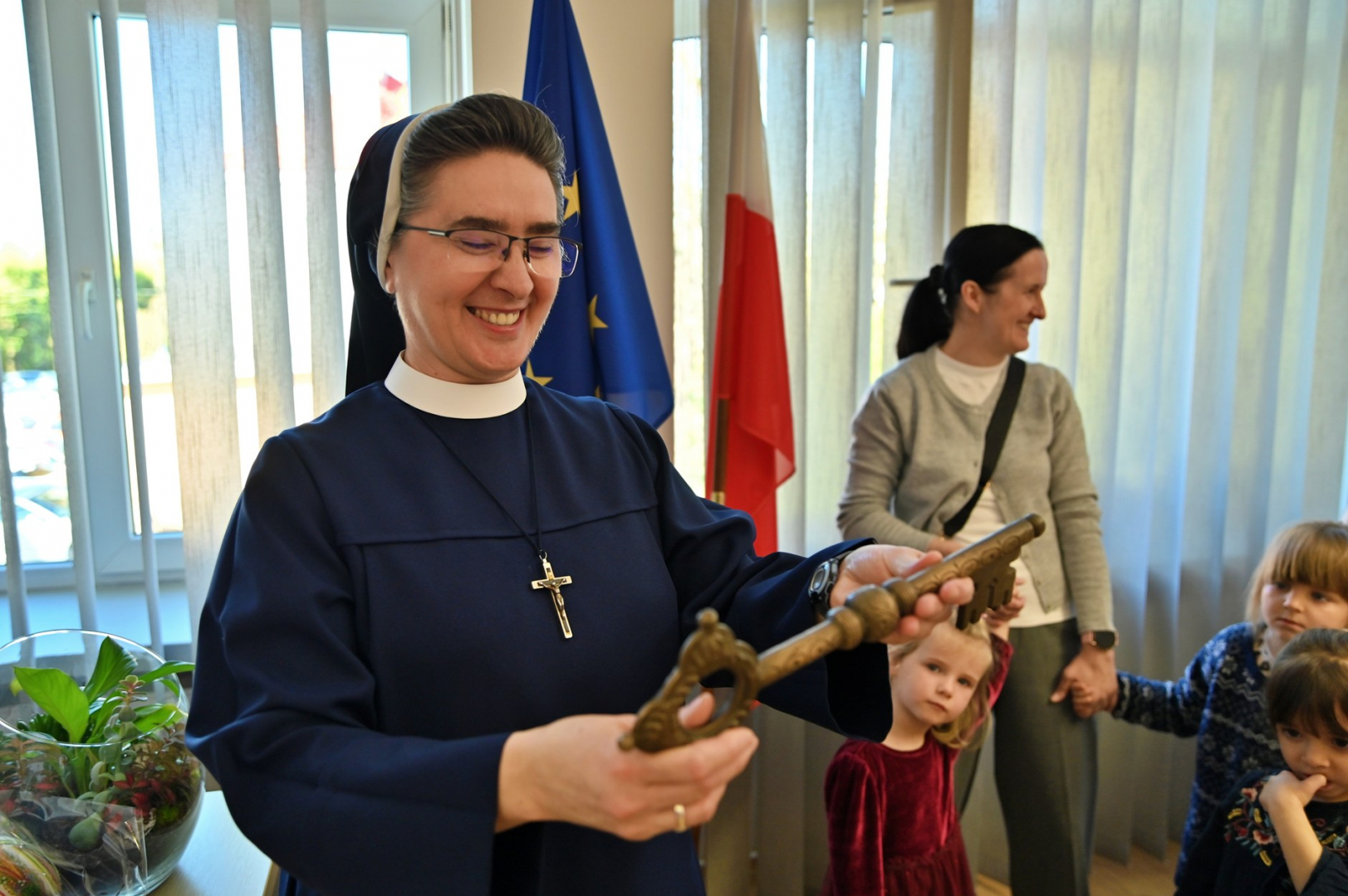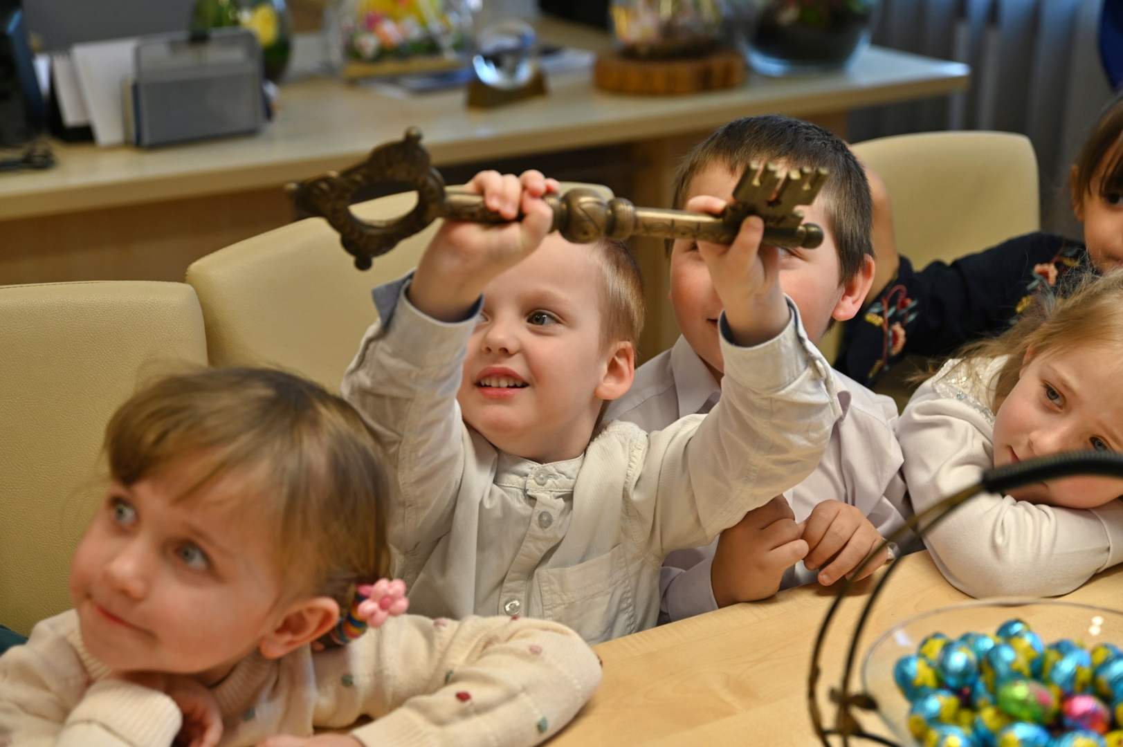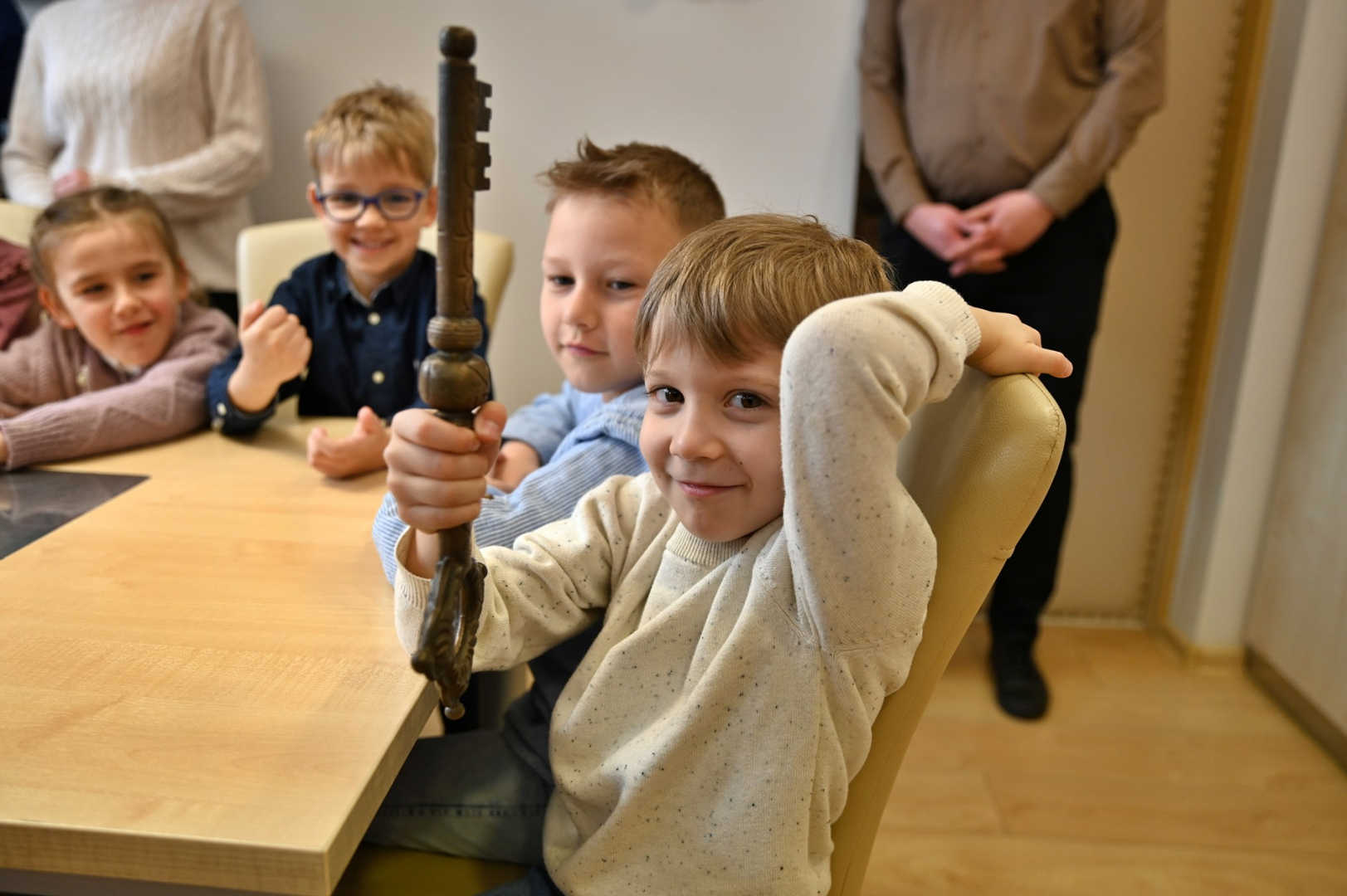 Wizytę w brzeskim magistracie złożyły dzieci z Publicznego Przedszkola Parafialnego im. Bł. Karoliny Kózki w Mokrzyskach, Publicznego Przedszkola Integracyjnego im. Św. S. Faustyny w Brzesku oraz Niepublicznego Przedszkola Zgromadzenia Sióstr Służebniczek BNDP w Jasieniu. Spotkania były okazją do wzajemnego złożenia sobie świątecznych życzeń. Mali goście wykorzystali czas pobytu u gospodarza gminy, aby w pełni zaspokoić wszystkie swoje pytania i wątpliwości dotyczące zarządzania lokalnym samorządem. Sami wykazali się przy tym dużą znajomością zagadnień, a większość sformułowanych pytań świadczyła o tym, że nawet najmłodsi mieszkańcy gminy starają się jak najwięcej wiedzieć na tematy, które tylko z pozoru są domeną dorosłych. Oczywiście, znalazł się również czas na bardziej luźne spędzenie tego czasu. W ruch poszły więc urzędowe pieczęcie, telefony i inne akcesoria (proszę się nie martwić – wszystko w kontrolowanym zakresie), jednak największym zainteresowaniem cieszył się symboliczny klucz do miasta. – To było bardzo miłe spotkanie – pełne uśmiechu, ciekawości i nauki przez zabawę. Dziękujemy za wizytę – kwituje Tomasz Latocha.