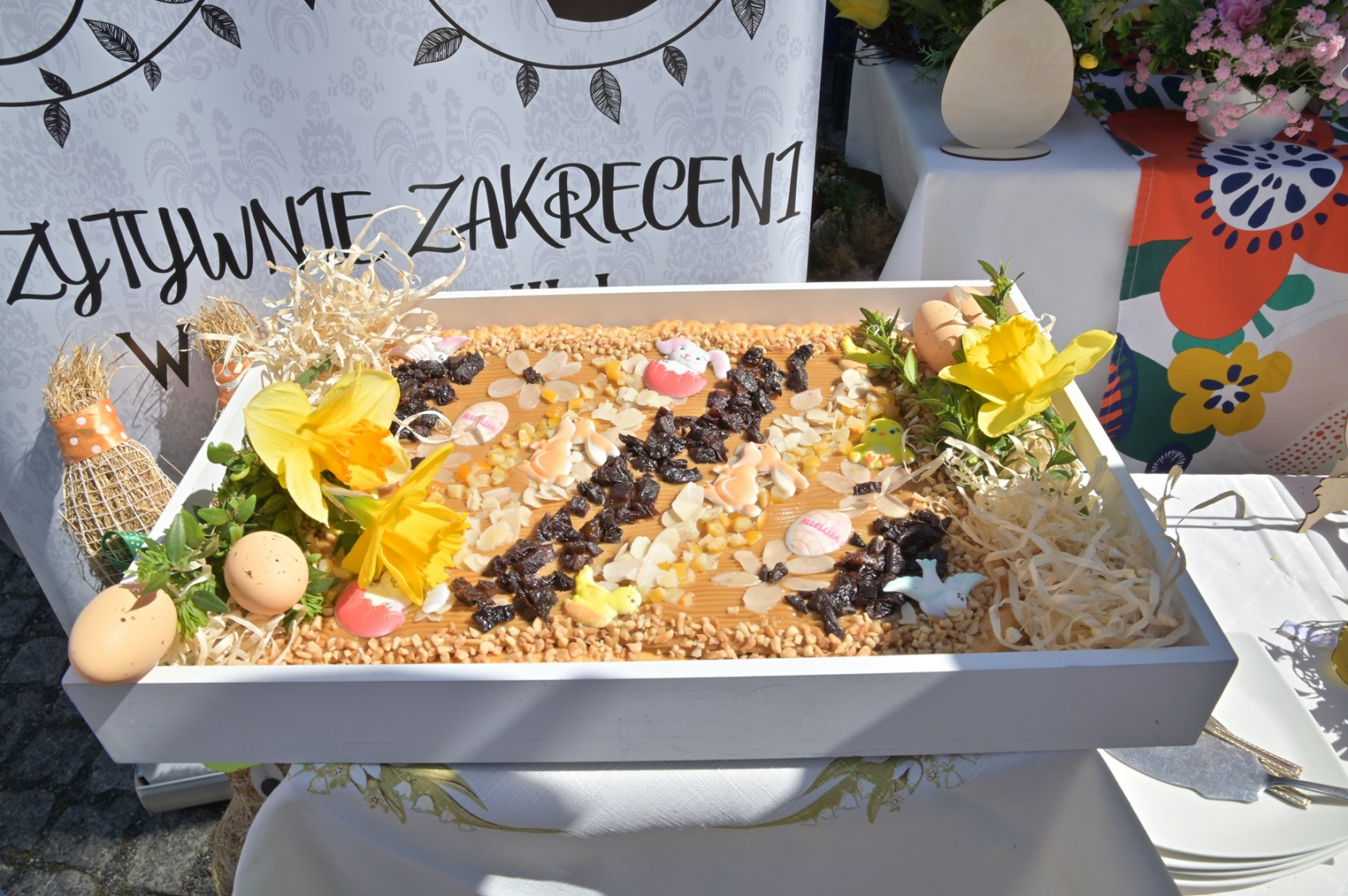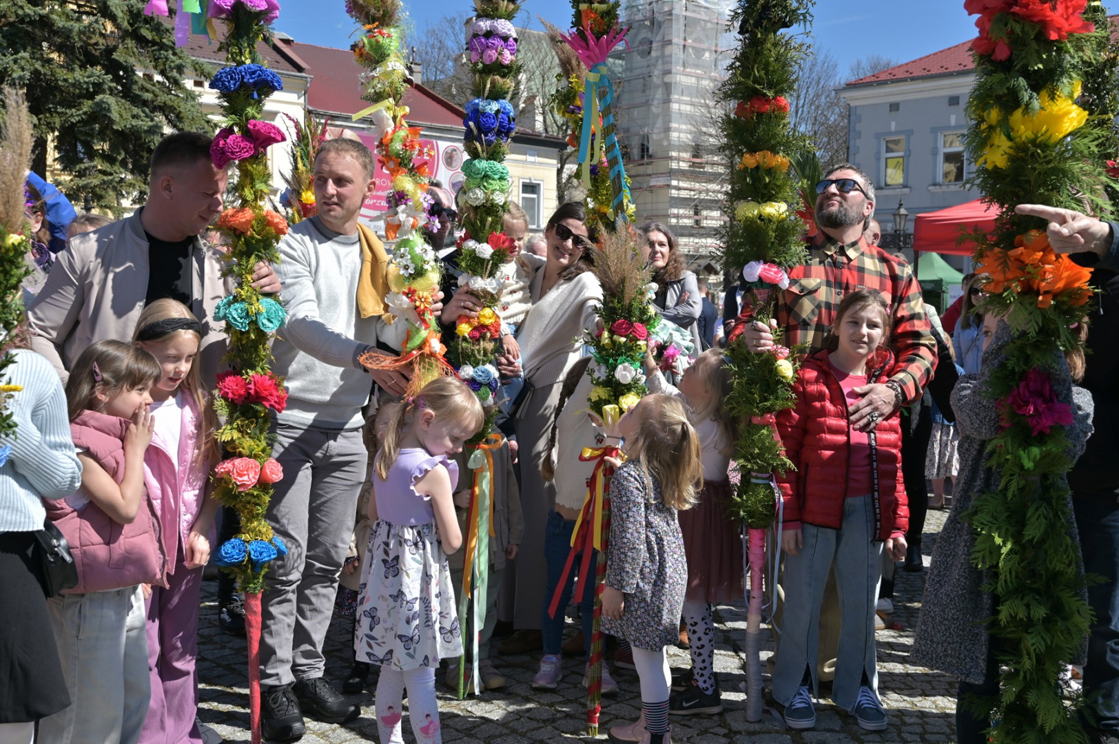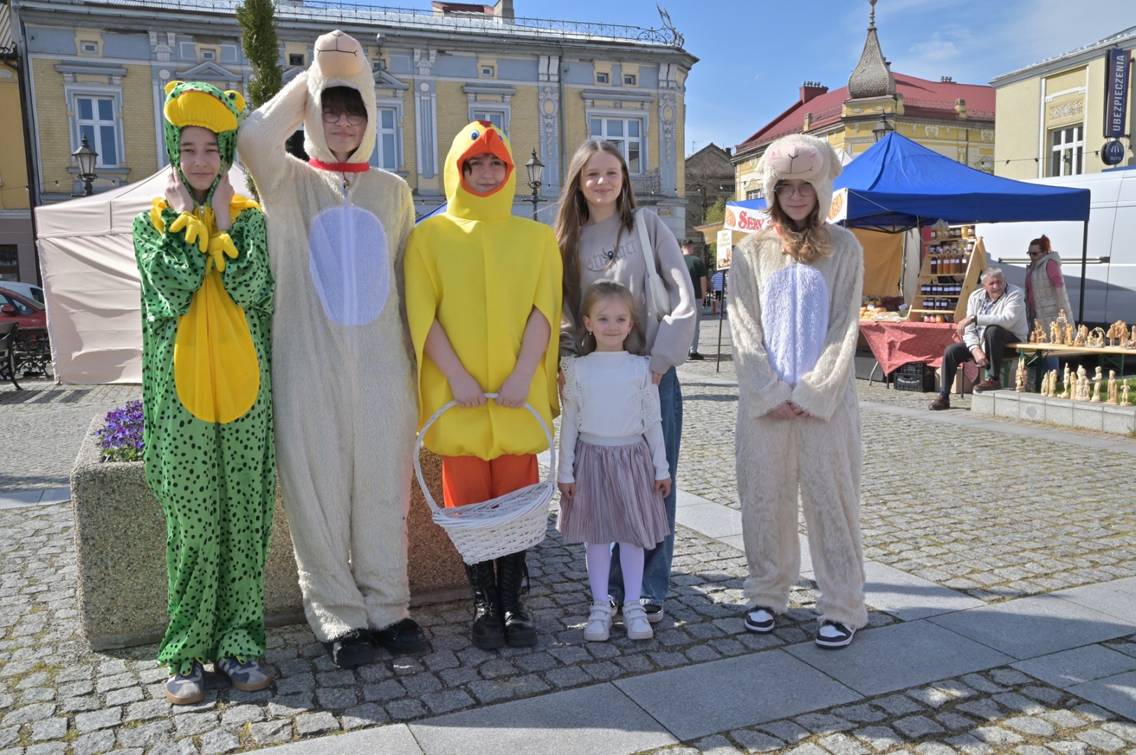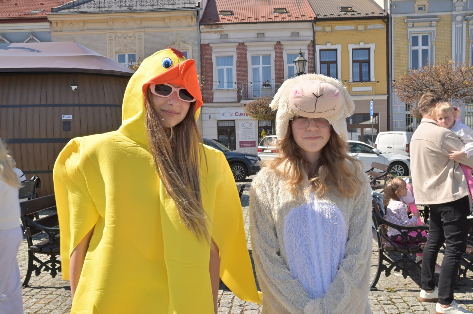 Swoje miejsce jak zwykle znalazły też pisanki XXL, które z zaangażowaniem malowały zgromadzone na rynku dzieci. Najmłodsi oblegali również łańcuchową karuzelę, umiejscowioną jak zwykle niedaleko fontanny oraz prowadzone przez firmę „Smakołyki od Moniki” warsztaty cukiernicze. Przez jakiś czas rynek ozdabiała będzie wielkanocna girlanda wykonana przez uczestników warsztatów plastyczno-rękodzielniczych pod okiem pań ze świetlicy wiejskiej MOK w Mokrzyskach. Podziału wiekowego nie było natomiast przy wielkanocnej ramce do zdjęć i stoiskach gastronomicznych. Dużą atrakcją jak zwykle był przechadzający się po placu z koszem czekoladowych jajek zając wielkanocny, którego z czasem zastąpili członkowie grup teatralnych GT i Stonoga.