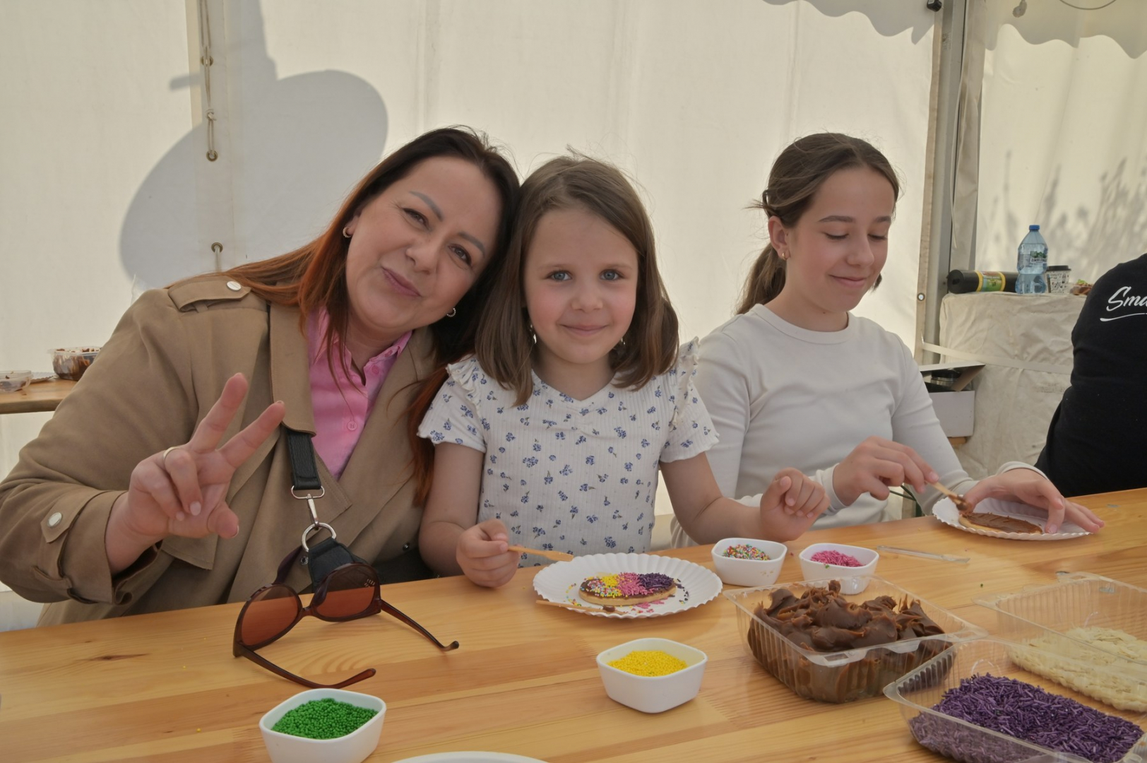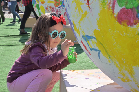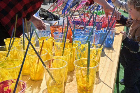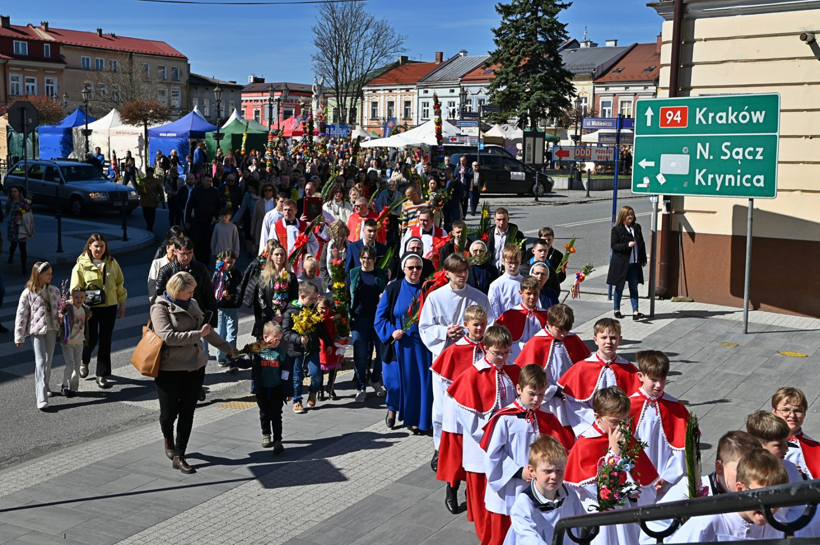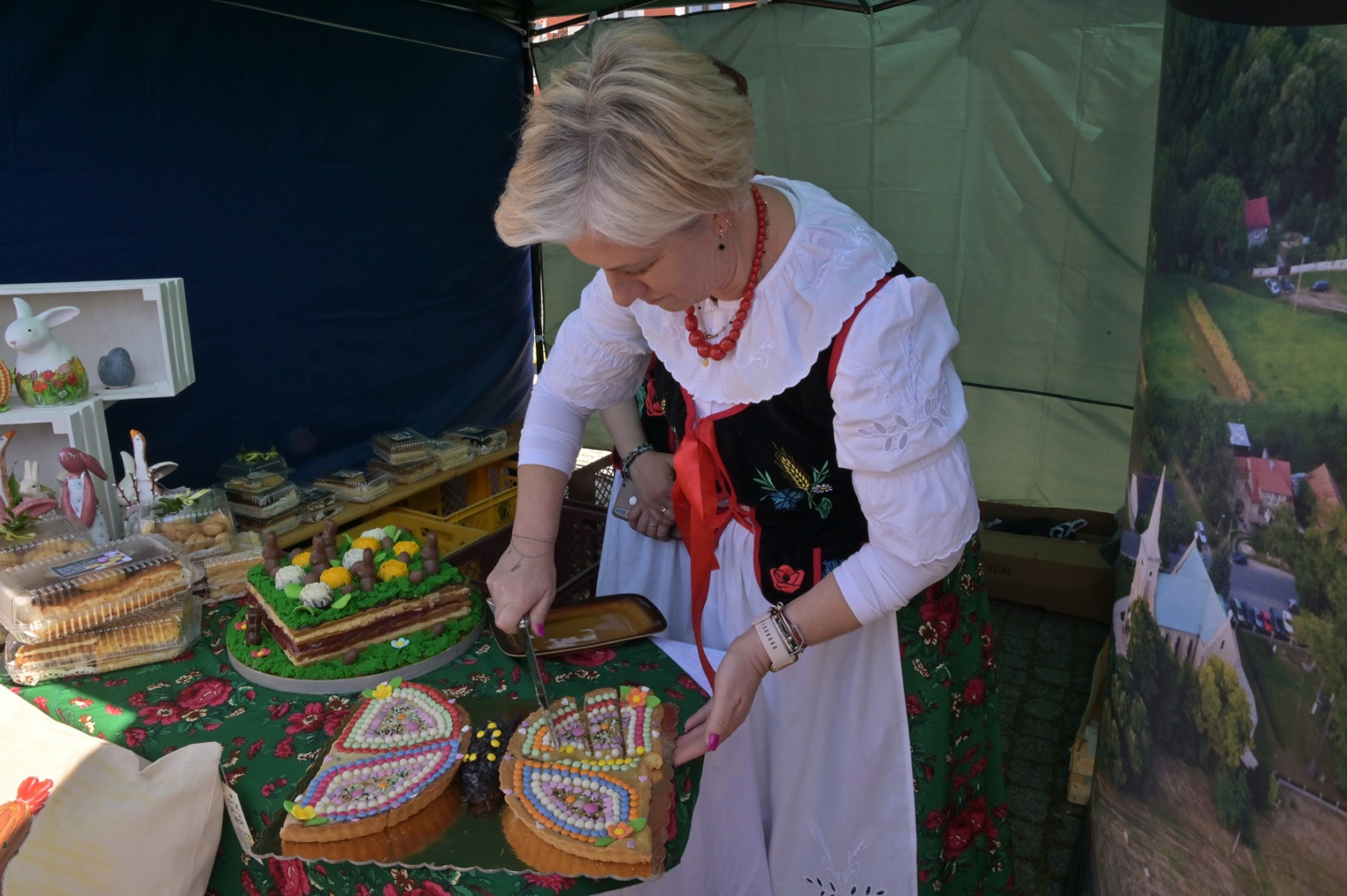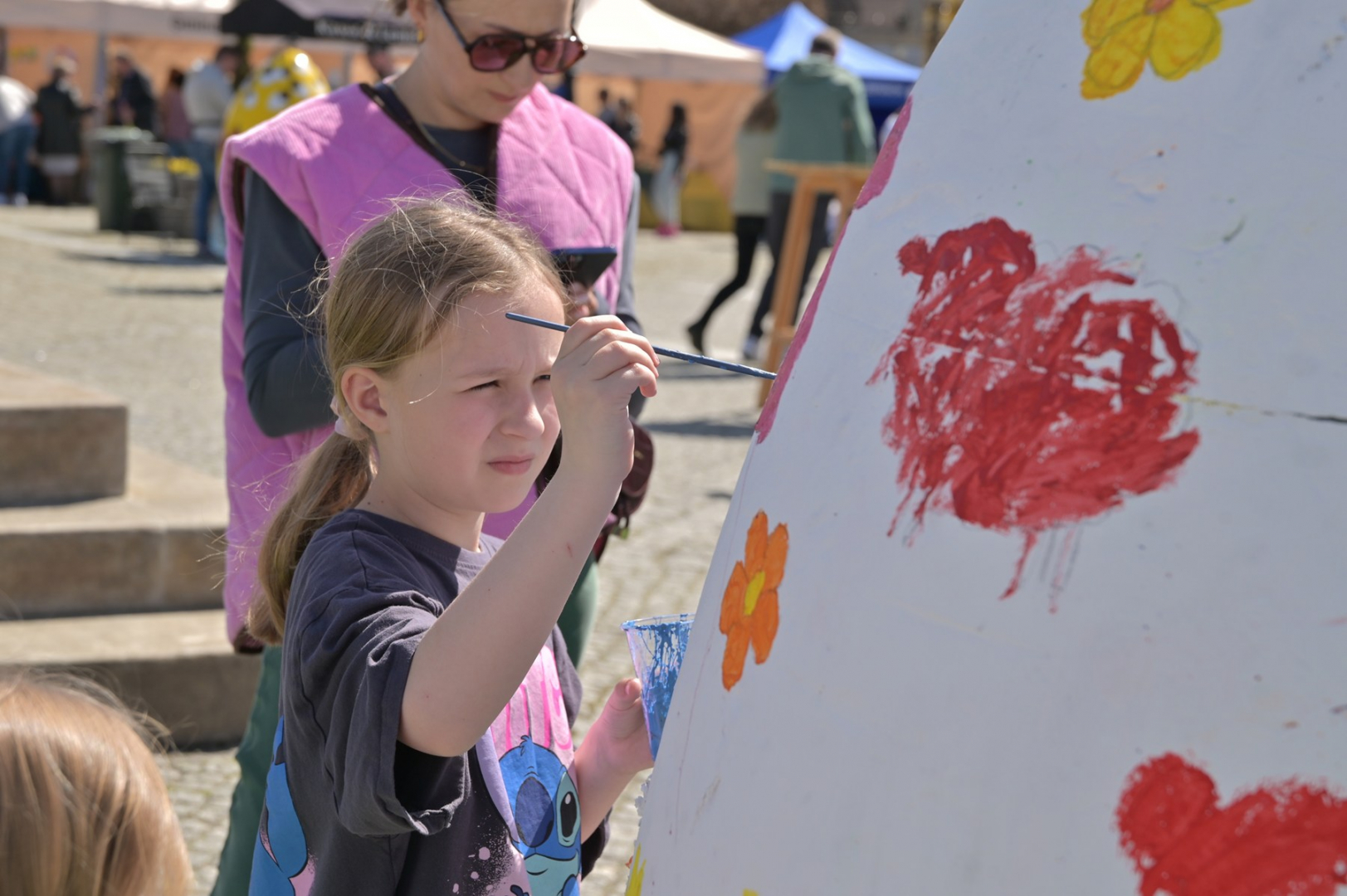 Swoje miejsce jak zwykle znalazły też pisanki XXL, które z zaangażowaniem malowały zgromadzone na rynku dzieci. Najmłodsi oblegali również łańcuchową karuzelę, umiejscowioną jak zwykle niedaleko fontanny oraz prowadzone przez firmę „Smakołyki od Moniki” warsztaty cukiernicze. Przez jakiś czas rynek ozdabiała będzie wielkanocna girlanda wykonana przez uczestników warsztatów plastyczno-rękodzielniczych pod okiem pań ze świetlicy wiejskiej MOK w Mokrzyskach. Podziału wiekowego nie było natomiast przy wielkanocnej ramce do zdjęć i stoiskach gastronomicznych. Dużą atrakcją jak zwykle był przechadzający się po placu z koszem czekoladowych jajek zając wielkanocny, którego z czasem zastąpili członkowie grup teatralnych GT i Stonoga.