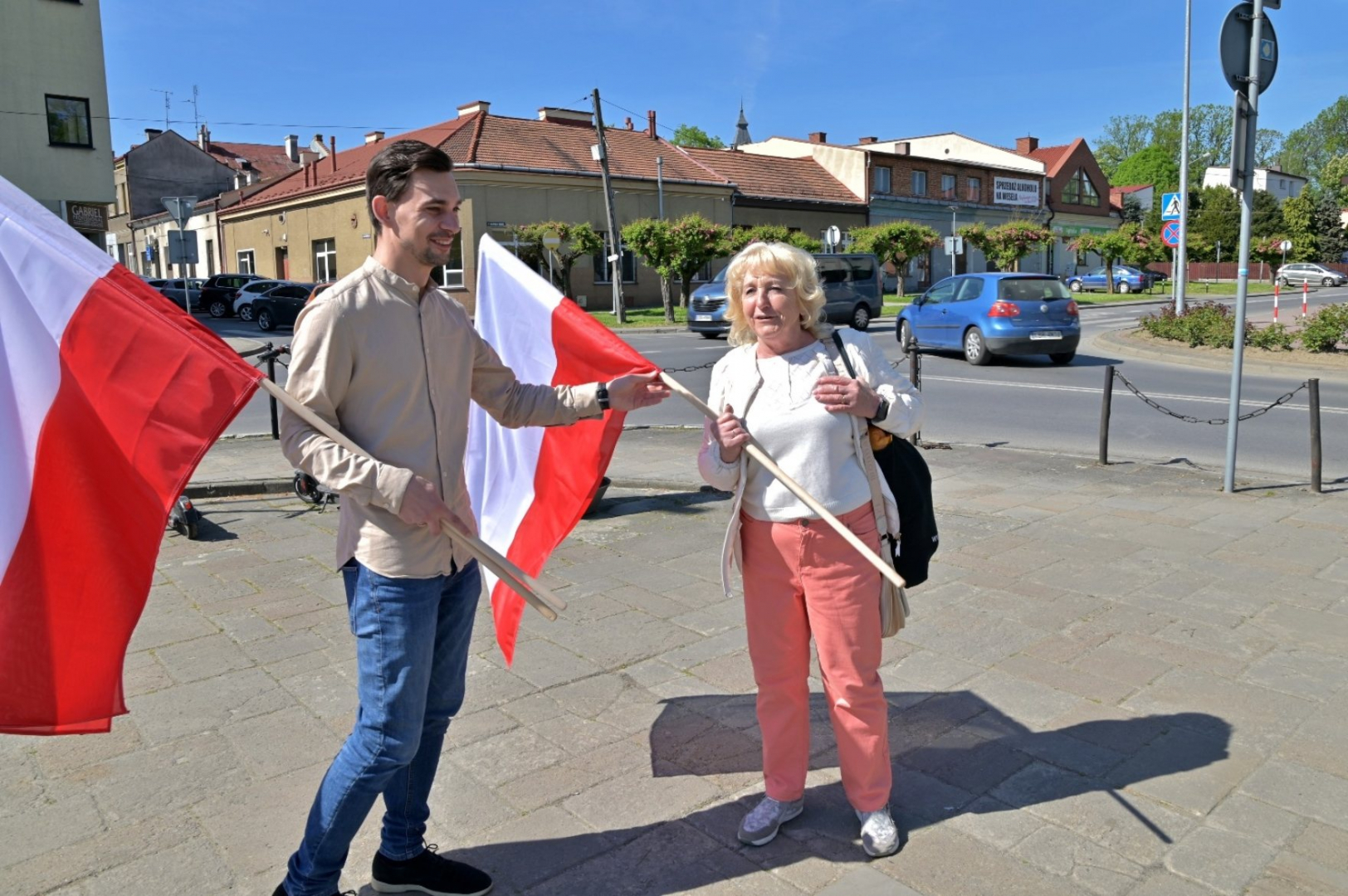2 maja, zgodnie z kilkuletnią tradycją, przedstawiciele brzeskich władz samorządowych wybrali się na spacer ulicami miasta, by napotkanym mieszkańcom przekazać białoczerwone flagi i chorągiewki ufundowane przez Urząd Miejski. W tym miłym spacerze uczestniczyli burmistrz Brzeska Tomasz Latocha, przewodniczący Rady Miejskiej Adrian Zaleśny, wiceprzewodniczący Rady Miejskiej Bogusław Sambor, radny miejski Kamil Trąba oraz przewodnicząca Zarządu Osiedla Kościuszki-Ogrodowa Renata Kornaś-Wnęk. Akcja, jak co roku, spotkała się z życzliwym i spontanicznym odbiorem, a każde spotkanie było też okazją do krótkich rozmów. Większość obdarowanych flagami i chorągiewkami można było nazajutrz rozpoznać w 3-majowym pochodzie.