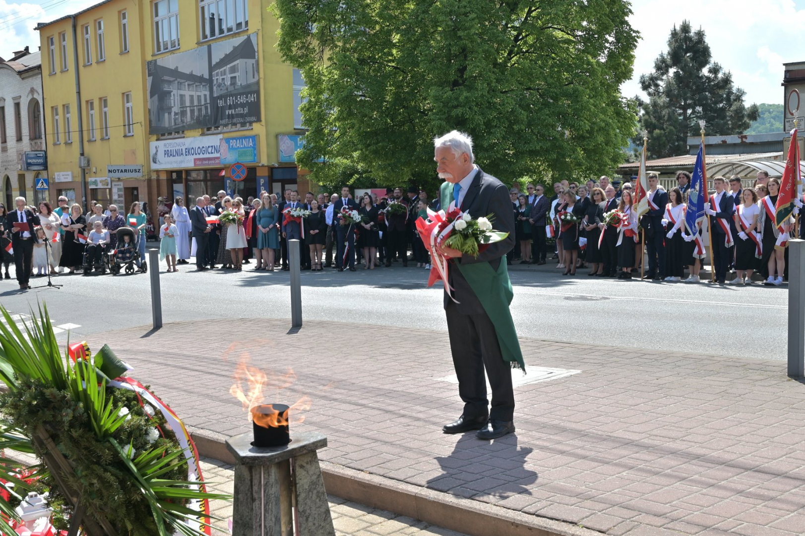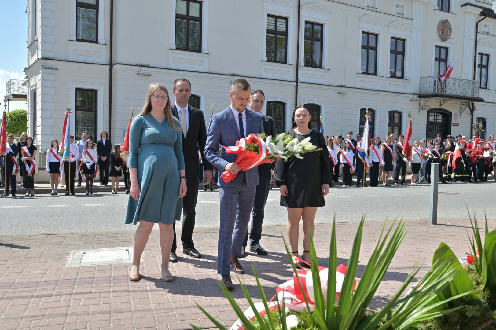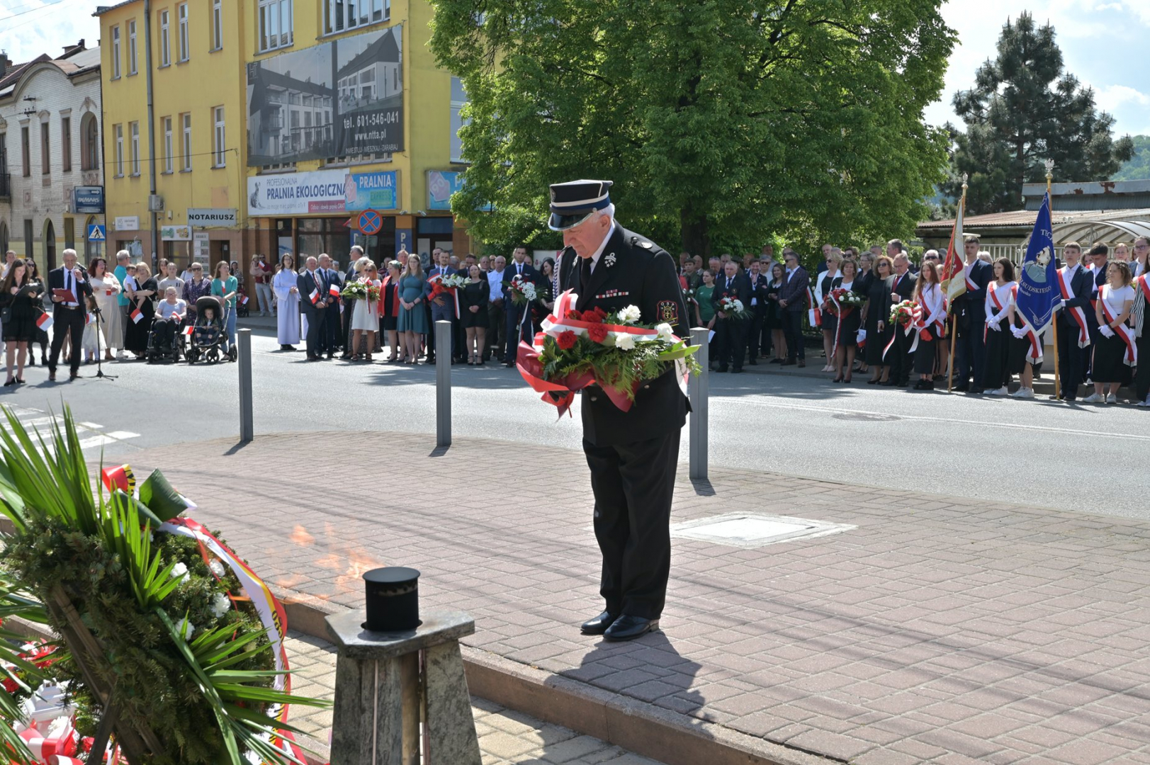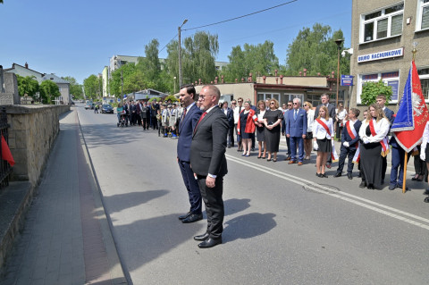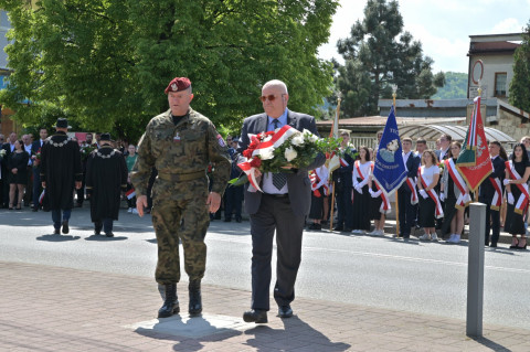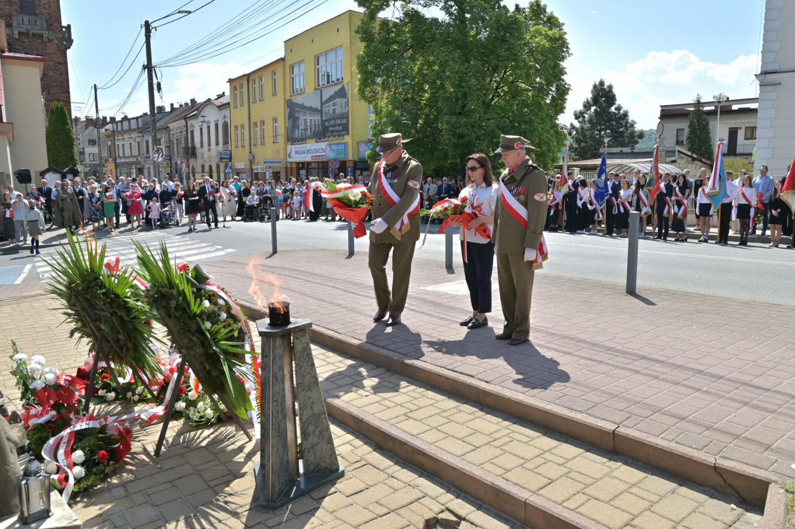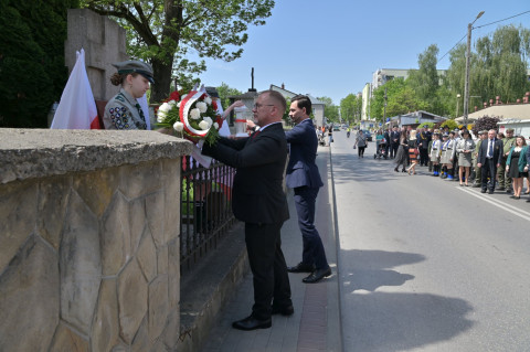 Po nabożeństwie uczestnicy uroczystości, przy dźwiękach Miejskiej Orkiestry Dętej, przeszli pod Pomnik Nieznanego Żołnierza, gdzie nastąpiło złożenie wiązanek kwiatów przez wszystkie delegacje biorące udział w tym wydarzeniu. W uroczystości uczestniczyli żołnierze kompanii reprezentacyjnej 2 Korpusu Polskiego, stanowiący asystę honorową wystawioną przez 5 Pułk Dowodzenia. Uzupełnieniem obchodów Święta Konstytucji 3 Maja było zorganizowane w Regionalnym Centrum Kulturalno-Bibliotecznym wspólne śpiewanie pieśni patriotycznych.