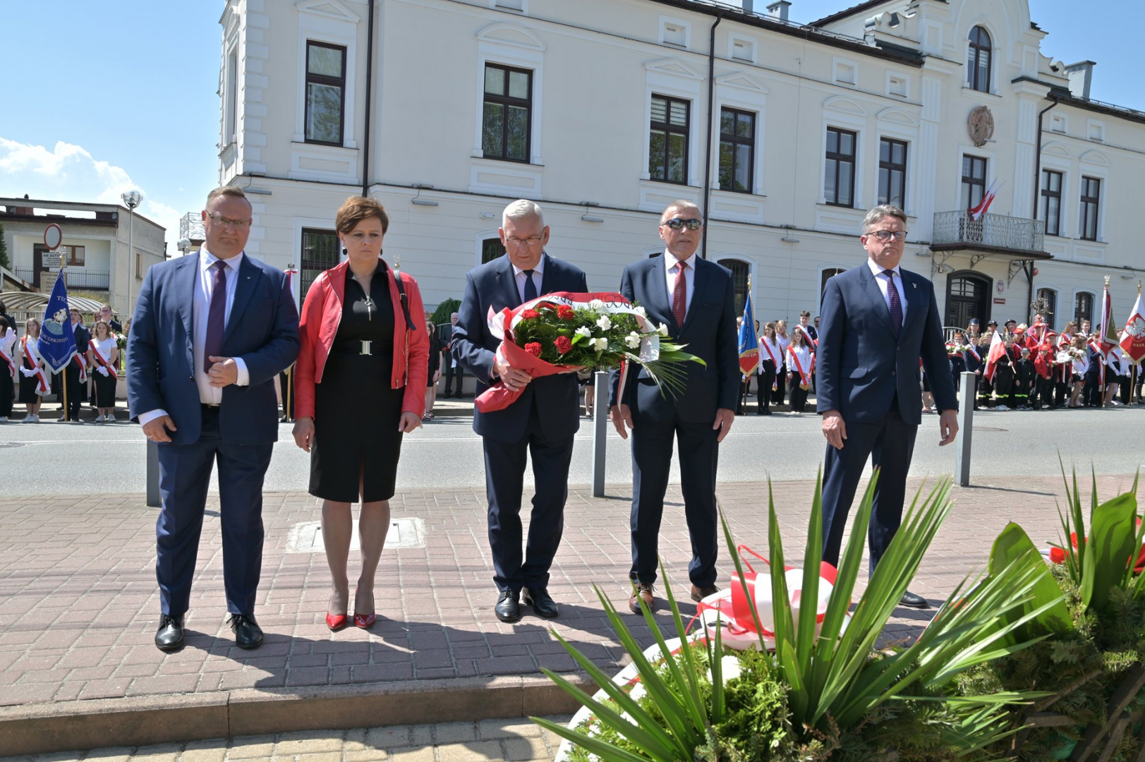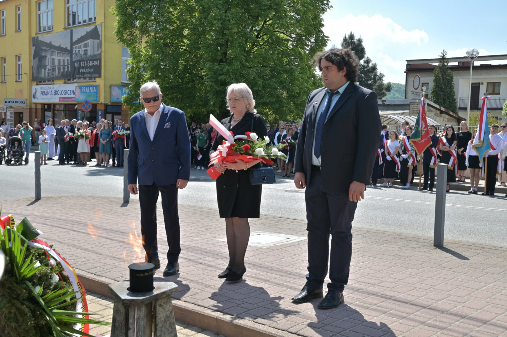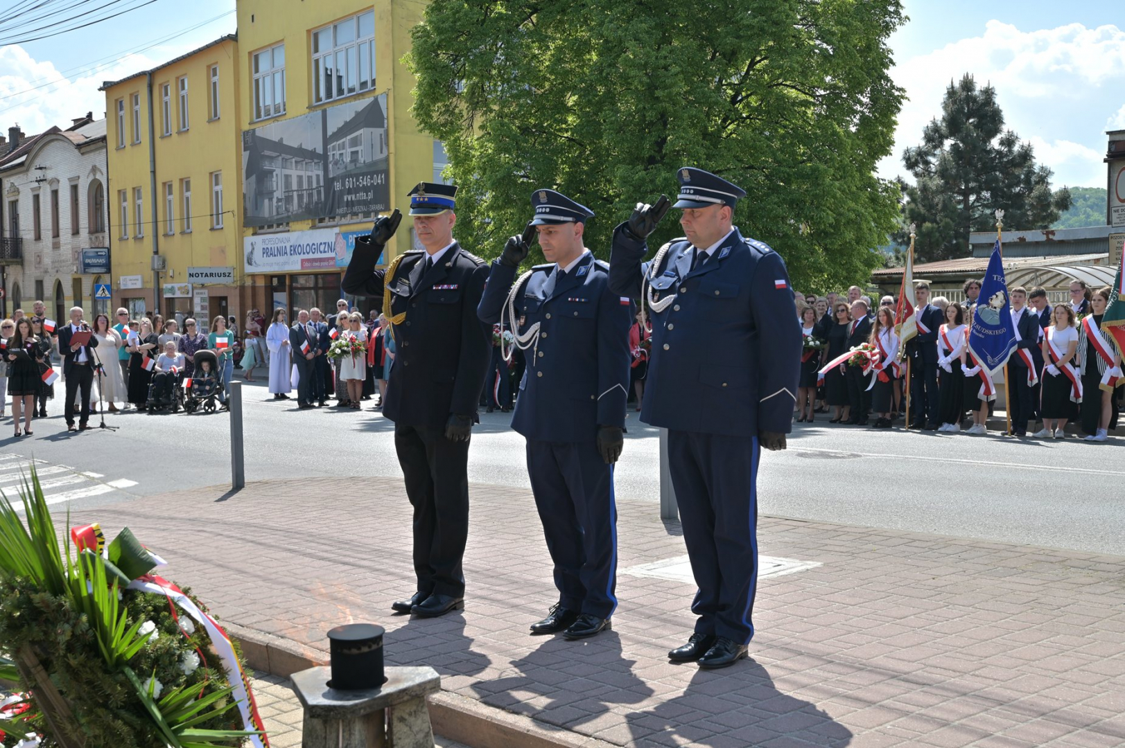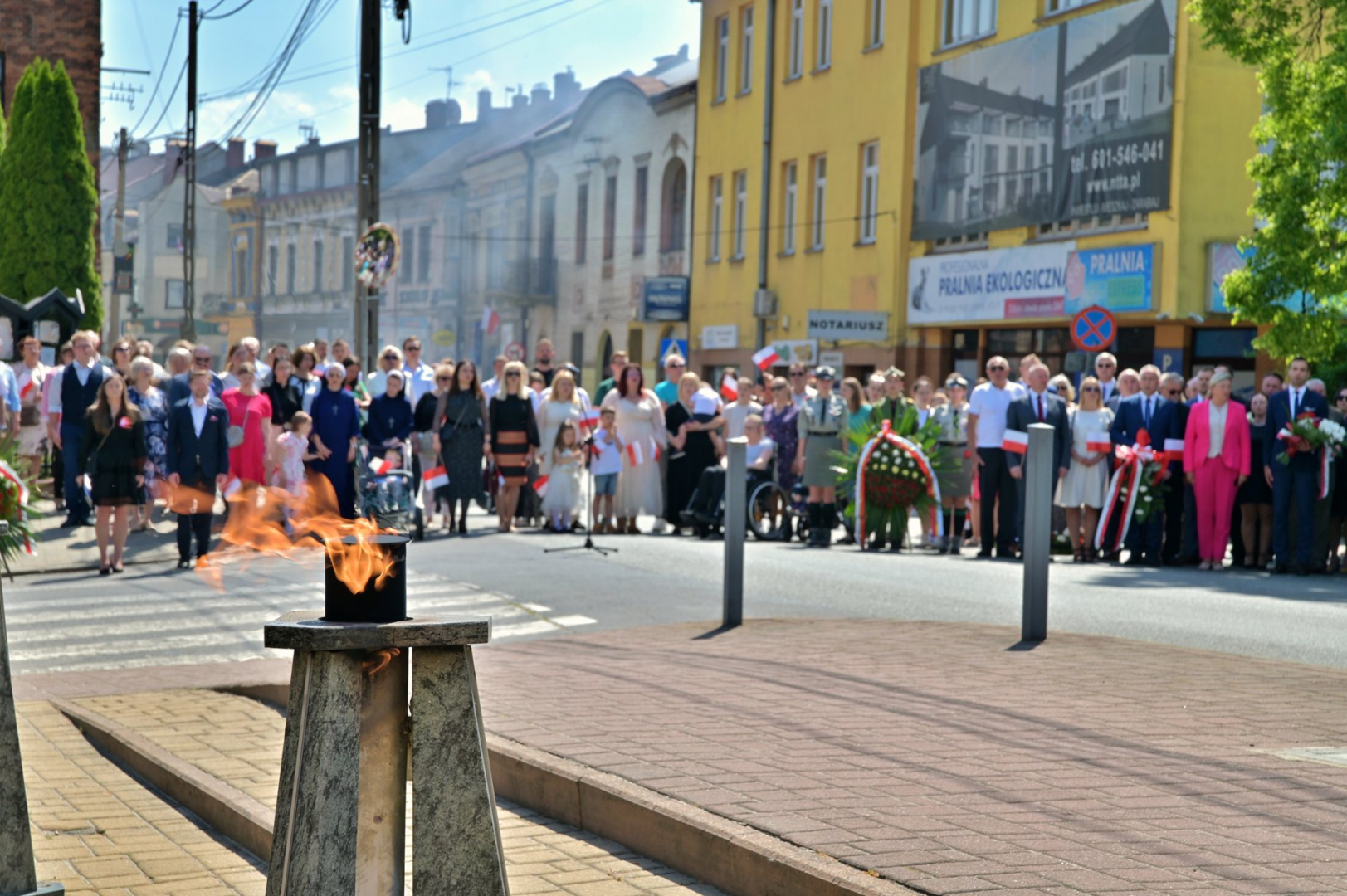 Po nabożeństwie uczestnicy uroczystości, przy dźwiękach Miejskiej Orkiestry Dętej, przeszli pod Pomnik Nieznanego Żołnierza, gdzie nastąpiło złożenie wiązanek kwiatów przez wszystkie delegacje biorące udział w tym wydarzeniu. W uroczystości uczestniczyli żołnierze kompanii reprezentacyjnej 2 Korpusu Polskiego, stanowiący asystę honorową wystawioną przez 5 Pułk Dowodzenia. Uzupełnieniem obchodów Święta Konstytucji 3 Maja było zorganizowane w Regionalnym Centrum Kulturalno-Bibliotecznym wspólne śpiewanie pieśni patriotycznych.
