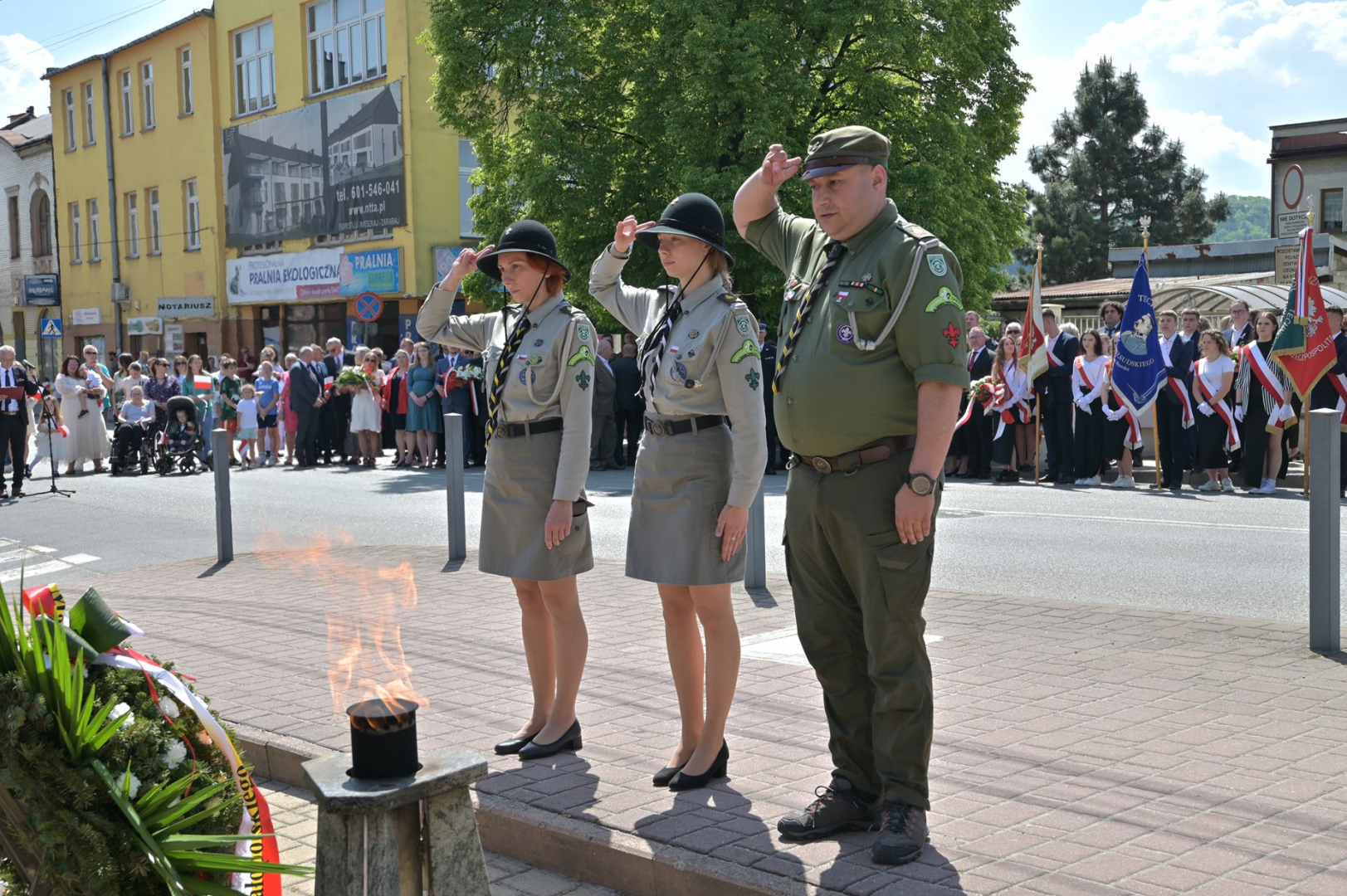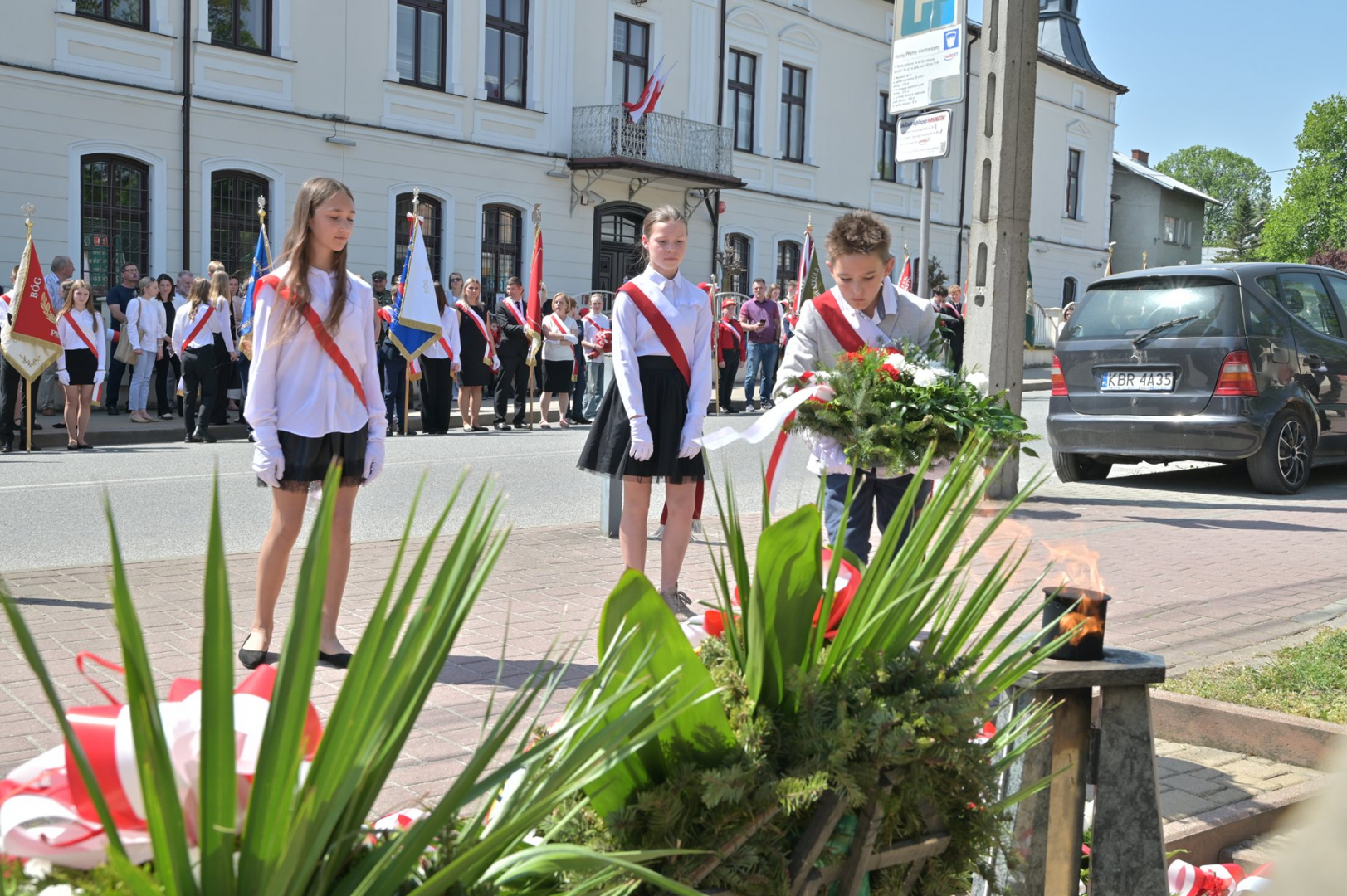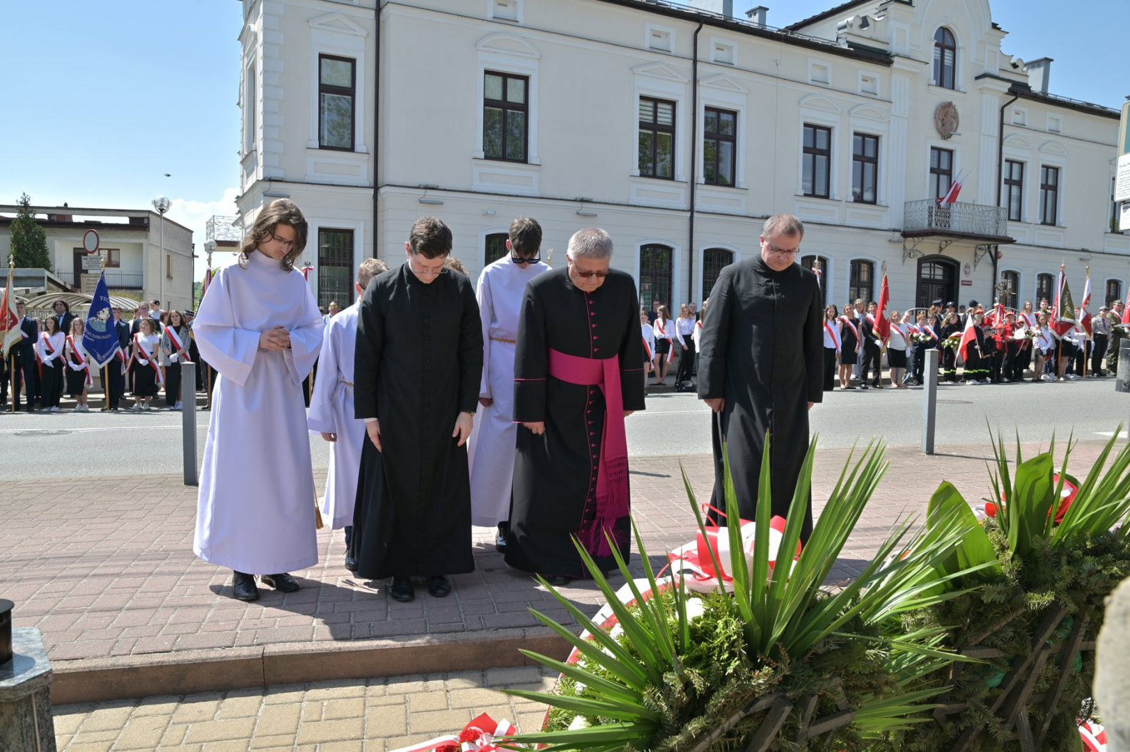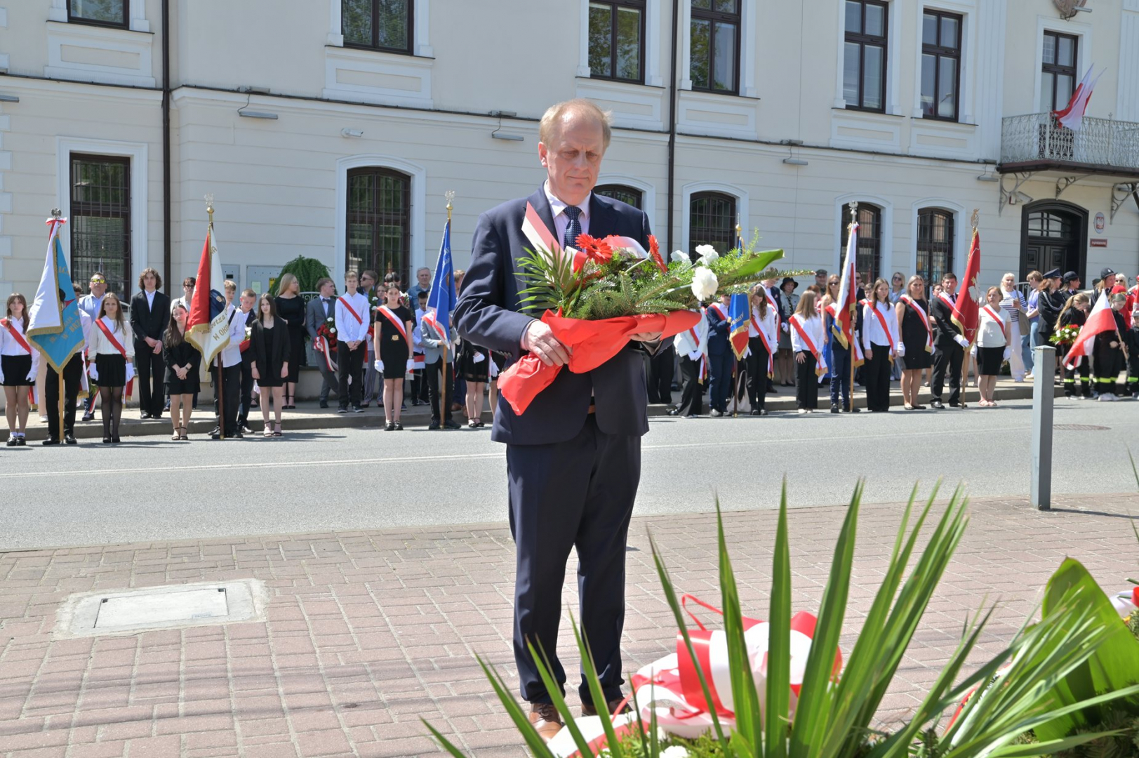 Po nabożeństwie uczestnicy uroczystości, przy dźwiękach Miejskiej Orkiestry Dętej, przeszli pod Pomnik Nieznanego Żołnierza, gdzie nastąpiło złożenie wiązanek kwiatów przez wszystkie delegacje biorące udział w tym wydarzeniu. W uroczystości uczestniczyli żołnierze kompanii reprezentacyjnej 2 Korpusu Polskiego, stanowiący asystę honorową wystawioną przez 5 Pułk Dowodzenia. Uzupełnieniem obchodów Święta Konstytucji 3 Maja było zorganizowane w Regionalnym Centrum Kulturalno-Bibliotecznym wspólne śpiewanie pieśni patriotycznych.