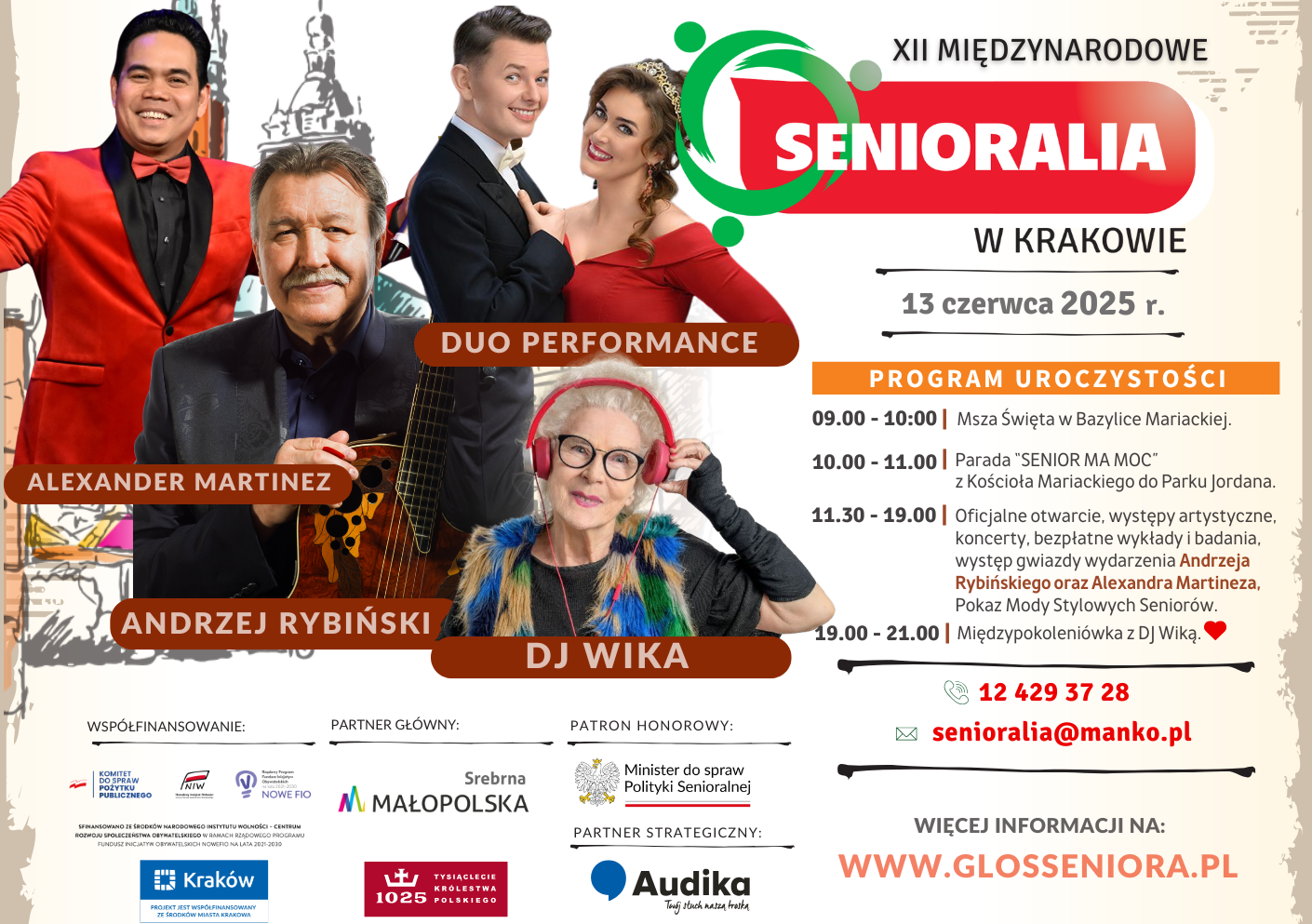 Burmistrz Brzeska Tomasz Latocha organizuje wyjazd reprezentacji Gminy Brzesko na XII Międzynarodowe Senioralia, które odbędą się 13 czerwca 2025 r. w Parku Jordana w Krakowie. Zapisy osób zainteresowanych uczestnictwem w tym wydarzeniu i skorzystaniem z bezpłatnego transportu (w obie strony) przyjmowane są w Urzędzie Miejskim w Brzesku pod numerem telefonu: 502 159 949.