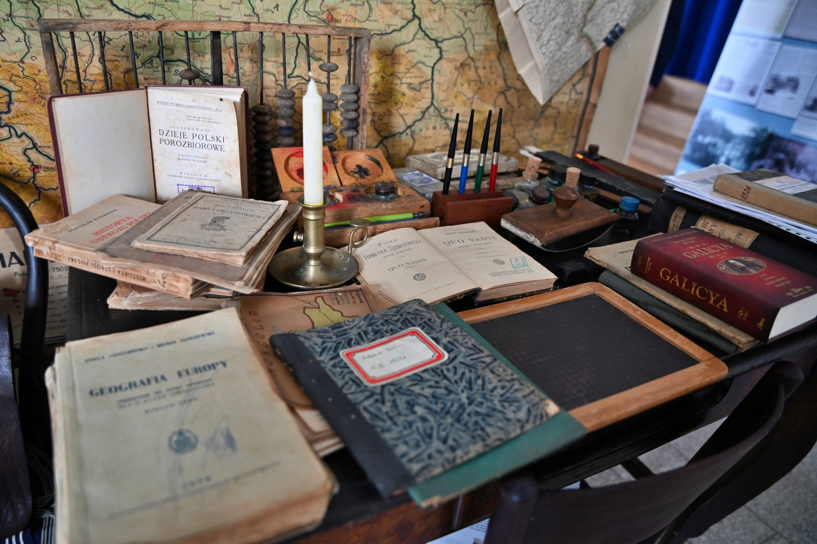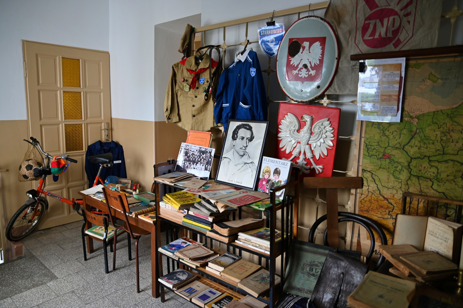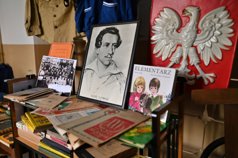 Uroczystości towarzyszyła wystawa „Szkoła z dawnych lat” przygotowana przez Piotra Styrnę. Ekspozycja dzieli się na dwie epoki – szkołę przedwojenną oraz lata osiemdziesiąte. Podziwiać można na niej biurko nauczycielskie datowane na lata dwudzieste XX w., krzesło z końca XIX wieku, kałamarze, pióra czy zabytkową mapę szkolną przedstawiającą Polskę pod zaborami. Część bardziej współczesna to przybory papiernicze, półka z lekturami, mundurki, ławka, słynny elementarz Mariana Falskiego a nawet rower Wigry 3 czy korkotrampki Stomil.