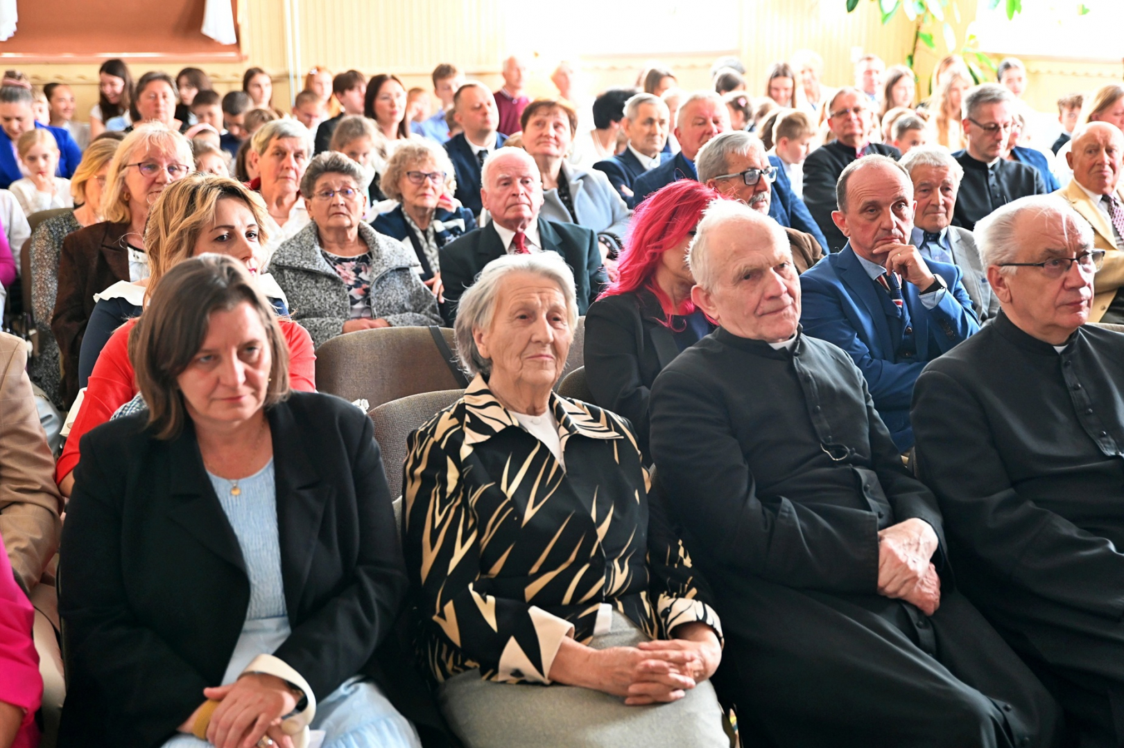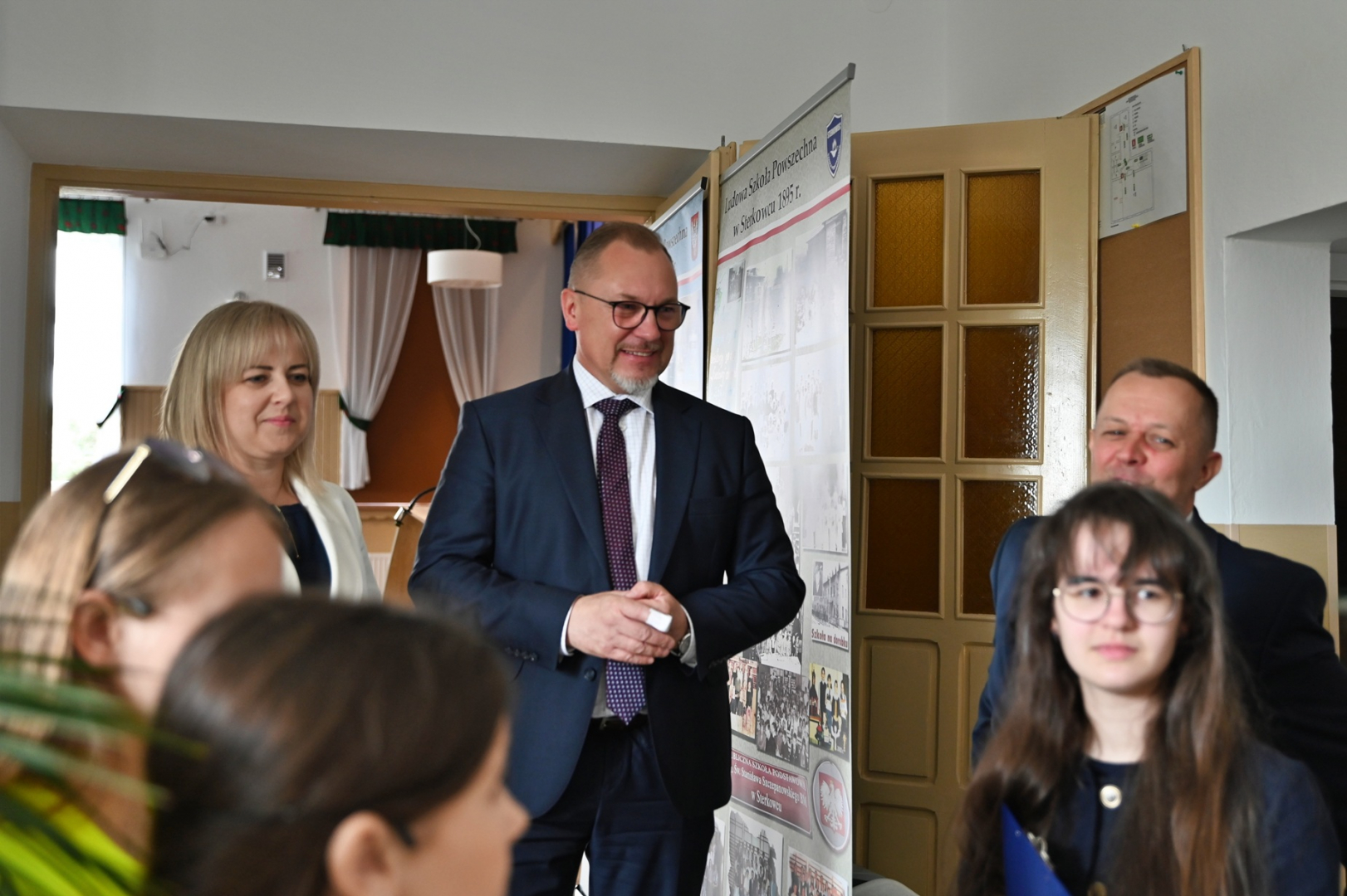 Wśród zgromadzonych znaleźli się m.in. wizytator Małopolskiego Kuratorium Oświaty Tomasz Donatowicz, burmistrz Brzeska Tomasz Latocha, wicestarosta Maciej Podobiński, dyrektor Wydziału Edukacji Kultury i Sportu UM Urszula Białka oraz sołtys Sterkowca Dorota Karaś. Zaproszono również obecnych i byłych nauczycieli oraz absolwentów i sympatyków placówki. Gospodarzem była dyrektor szkoły Maria Dąbrowa – Legutko.