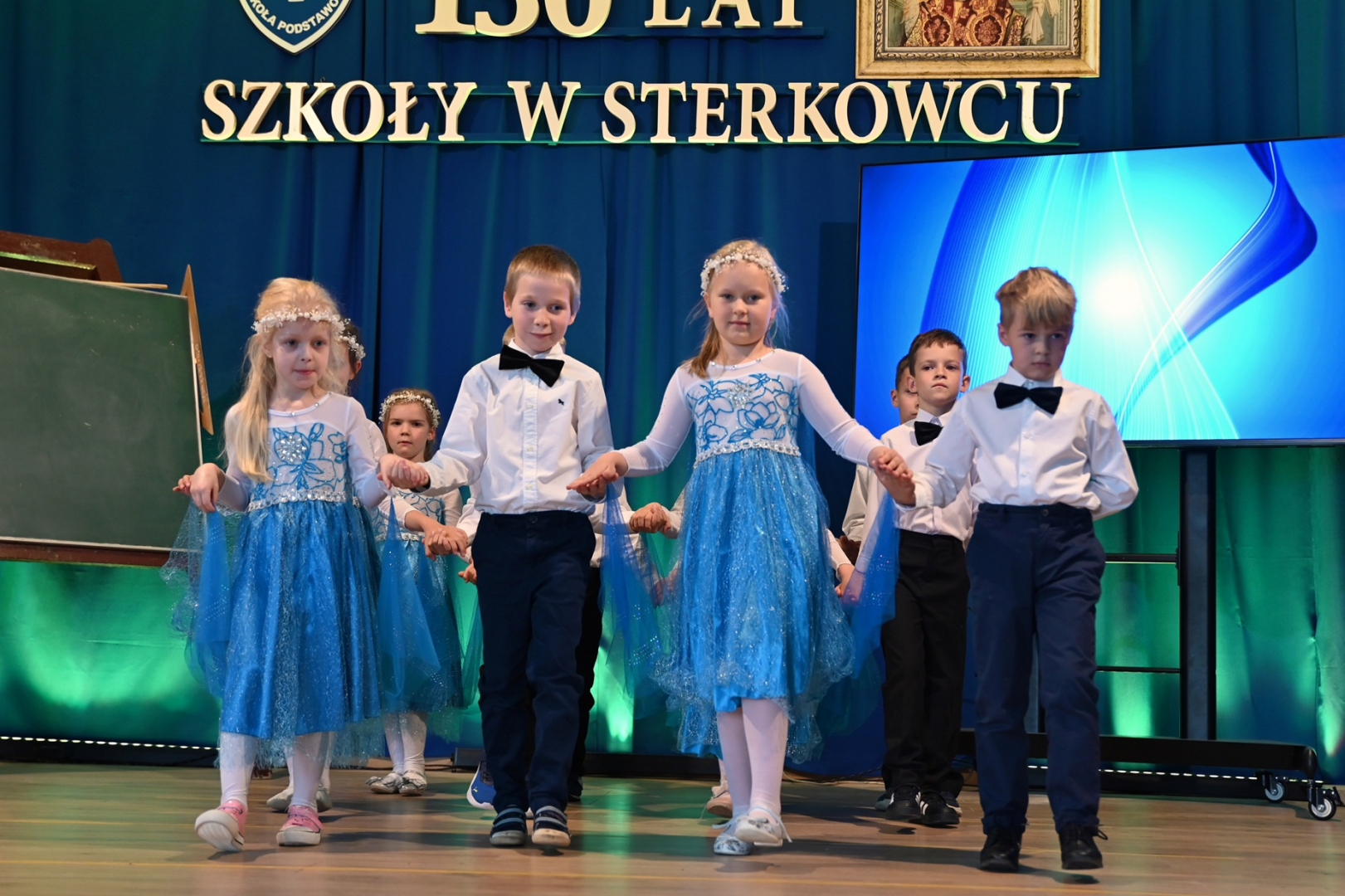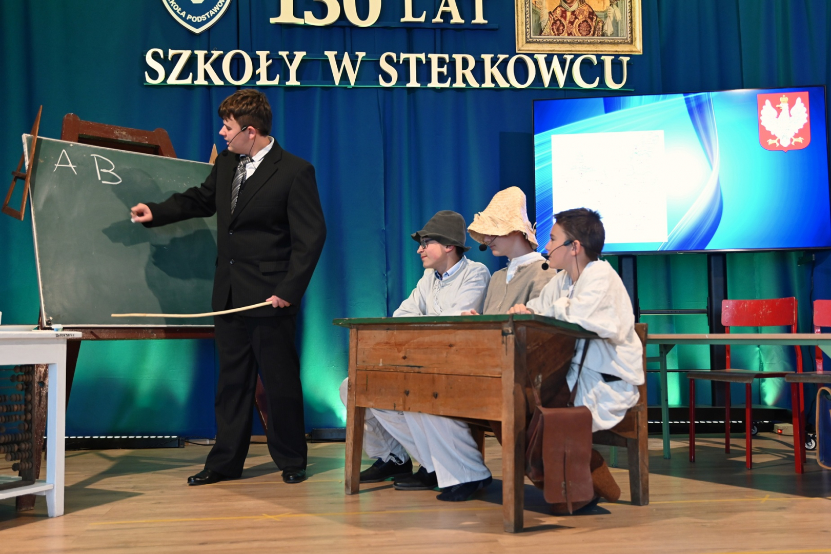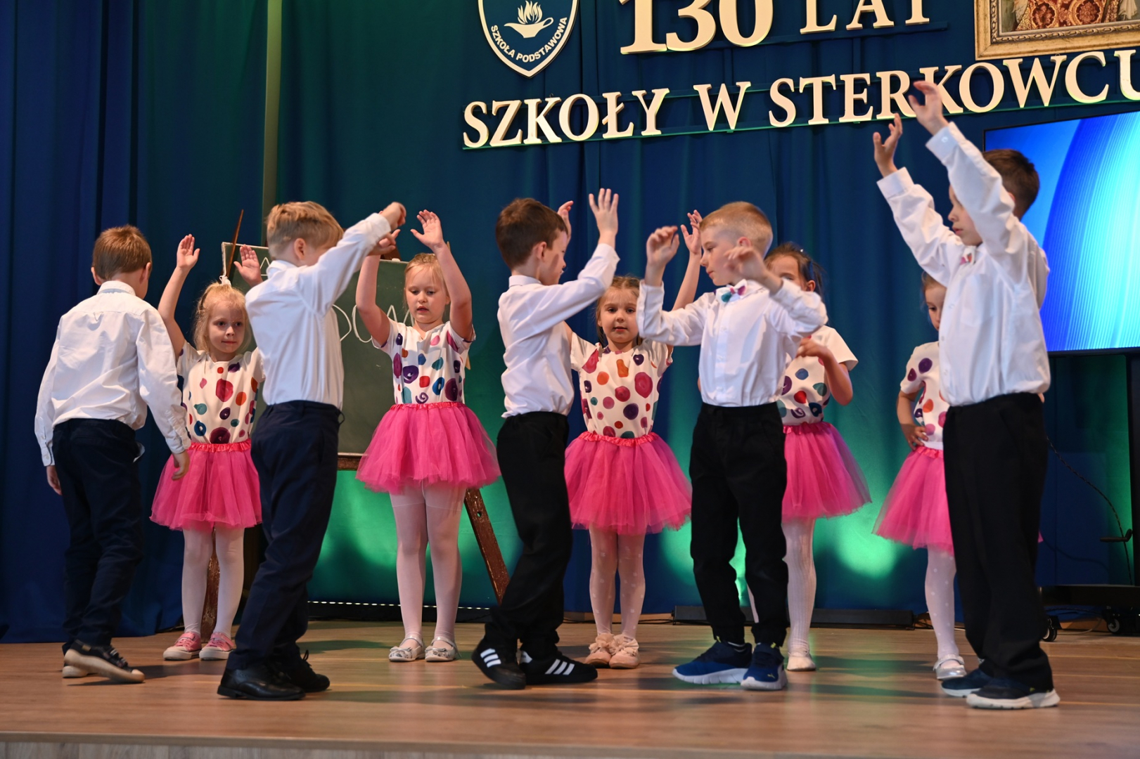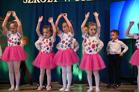 O część artystyczną zadbali uczniowie. Odegrali żartobliwe scenki, które odbywały się w szkolnych ławach na przestrzeni dekad, podkreślając tym samym, że 130 lat szkoły to również niezwykle burzliwe 130 lat naszego kraju. Dzieci z oddziału przedszkolnego zaprezentowały natomiast entuzjastycznie przyjęte przez publikę układy taneczne.