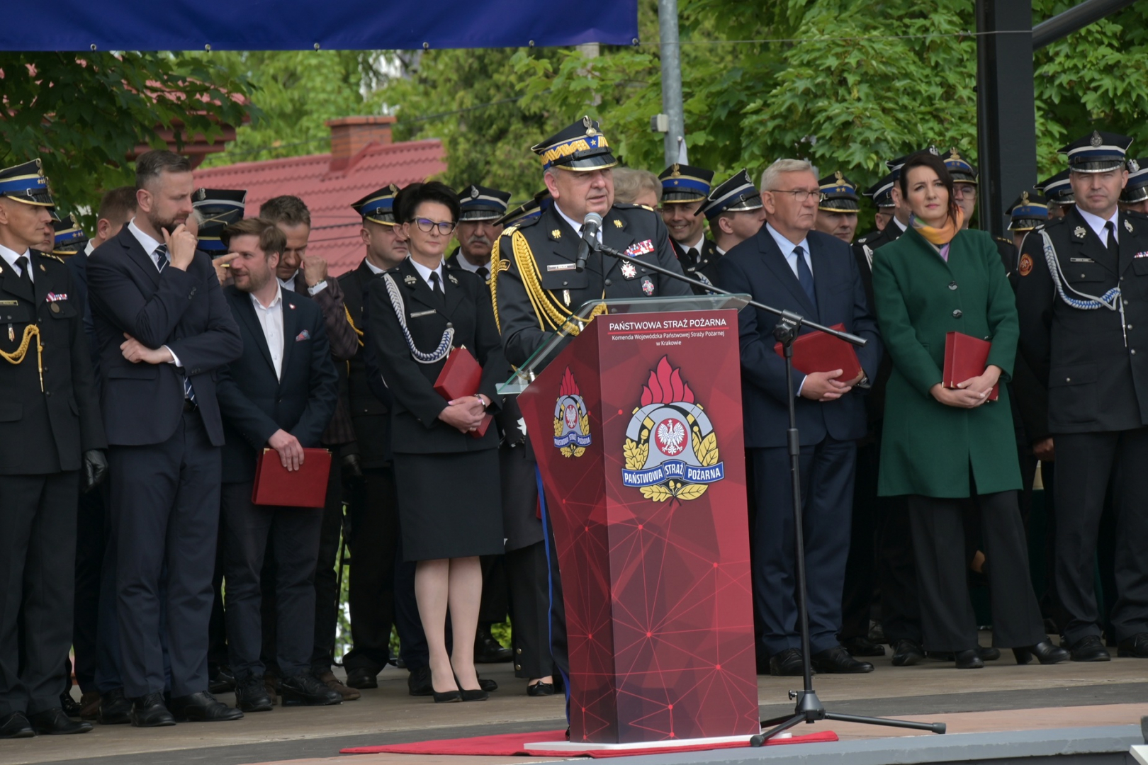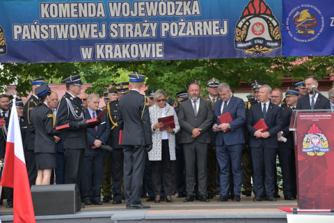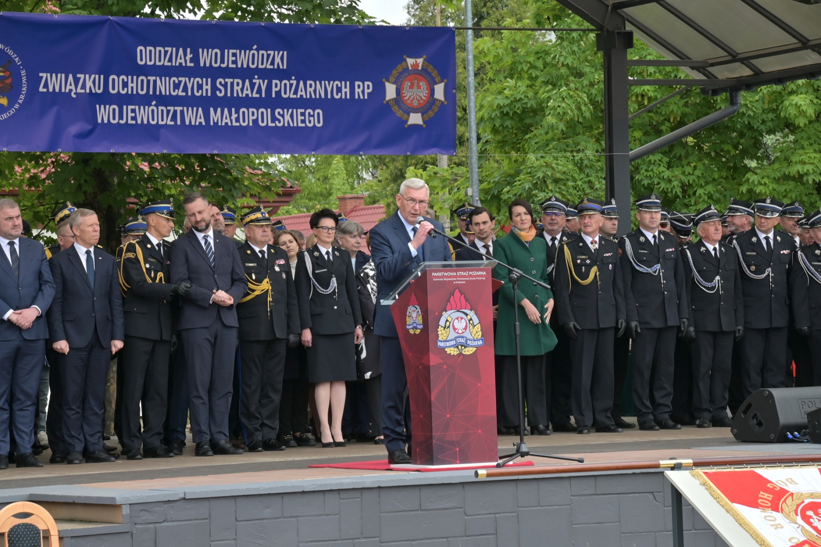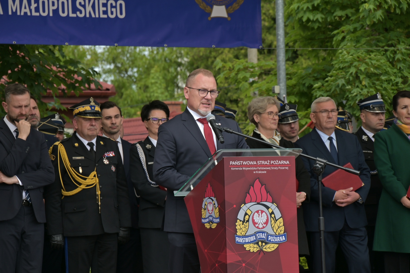 Gospodarzem wydarzenia był Burmistrz Brzeska Tomasz Latocha. - Na placu Kazimierza Wielkiego wielka uroczystość, bardzo symptomatyczna, bo w samym centrum Brzeska przecież jest pomnik świętego Floriana z 1731 roku, który jest patronem strażaków. (…) Cieszę się, że właśnie nasze miasto zostało wyróżnione i komendant wojewódzki przyjął nasze zaproszenie, aby tutaj ta uroczystość miała miejsce – mówił w rozmowie z telewizją Tarnowska TV. Wątki historyczne poruszył w swoim wystąpieniu również Władysław Kosiniak-Kamysz. - Brzesko wie, co znaczy trud walki z powodzią. Doświadczyliśmy tego bardzo mocno w 1997 i w 2010 roku. Gdyby nie wasza ofiarność, funkcjonariuszy Państwowej Straży Pożarnej i druhów ochotników, nie stalibyśmy pewnie dziś w tym miejscu. Nie moglibyśmy odbudować tego wszystkiego, co zostało utracone. To jest wielka misja i wielka sprawa. (…) Są tu świadkowie tamtych wydarzeń – mówił, wspominając jednocześnie, że pomnik świętego Floriana pojawił się na rynku jeszcze zanim zawiązała się zorganizowana straż ogniowa.