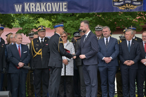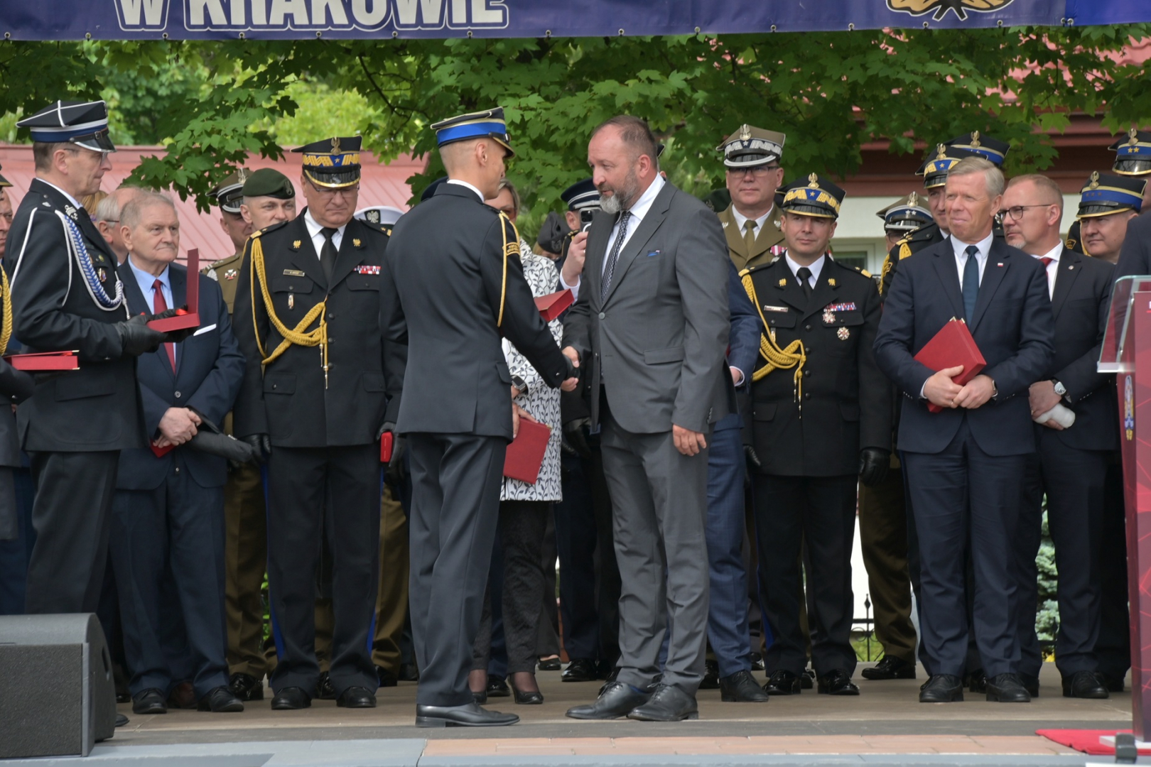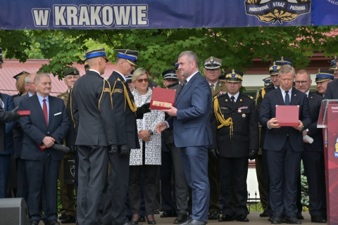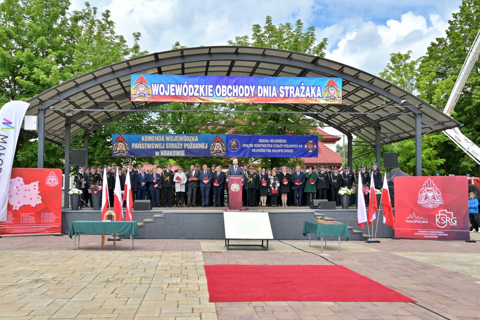 Gospodarzem wydarzenia był Burmistrz Brzeska Tomasz Latocha. - Na placu Kazimierza Wielkiego wielka uroczystość, bardzo symptomatyczna, bo w samym centrum Brzeska przecież jest pomnik świętego Floriana z 1731 roku, który jest patronem strażaków. (…) Cieszę się, że właśnie nasze miasto zostało wyróżnione i komendant wojewódzki przyjął nasze zaproszenie, aby tutaj ta uroczystość miała miejsce – mówił w rozmowie z telewizją Tarnowska TV. Wątki historyczne poruszył w swoim wystąpieniu również Władysław Kosiniak-Kamysz. - Brzesko wie, co znaczy trud walki z powodzią. Doświadczyliśmy tego bardzo mocno w 1997 i w 2010 roku. Gdyby nie wasza ofiarność, funkcjonariuszy Państwowej Straży Pożarnej i druhów ochotników, nie stalibyśmy pewnie dziś w tym miejscu. Nie moglibyśmy odbudować tego wszystkiego, co zostało utracone. To jest wielka misja i wielka sprawa. (…) Są tu świadkowie tamtych wydarzeń – mówił, wspominając jednocześnie, że pomnik świętego Floriana pojawił się na rynku jeszcze zanim zawiązała się zorganizowana straż ogniowa.