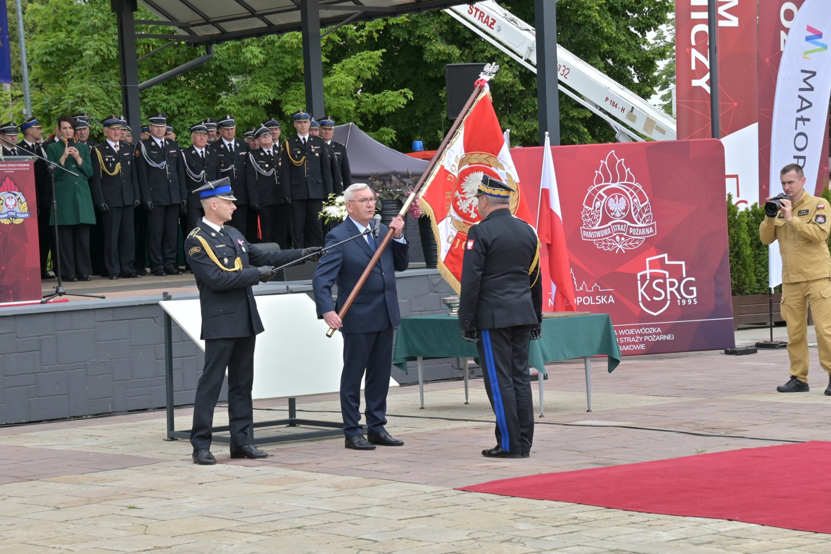 Uroczystego przekazania sztandaru dokonał Przewodniczący Komitetu Fundacji Sztandaru - Starosta Brzeski Andrzej Potępa. Jako pierwszy wbił w drzewiec sztandaru symboliczny pamiątkowy gwóźdź. Tego dnia wręczono również wyróżnienia, odznaczenia i nagrody dla zasłużonych strażaków z całej Małopolski. Przed budynkiem Regionalnego Centrum Kulturalno-Bibliotecznego umiejscowiono namioty i stanowiska, przy których najmłodsi uczestnicy wydarzenia mieli okazję zapoznać się z tajnikami pracy strażaków.