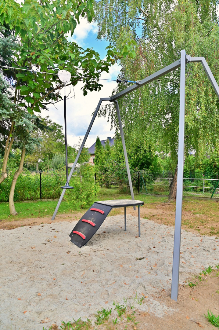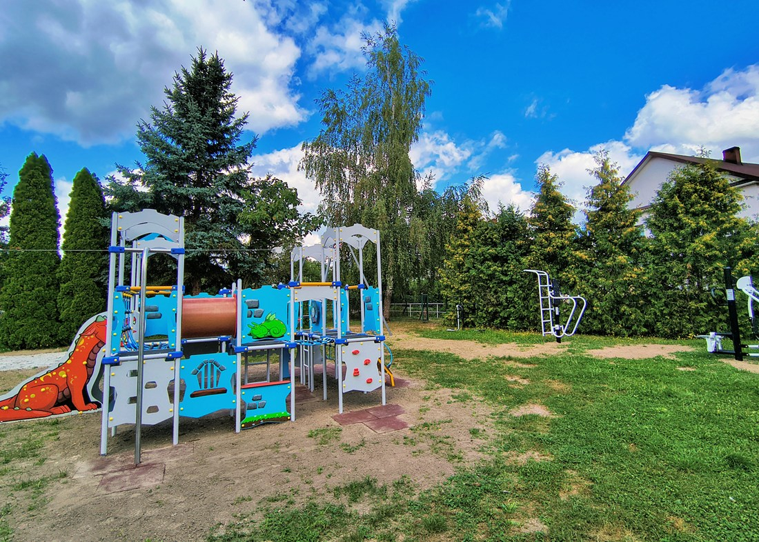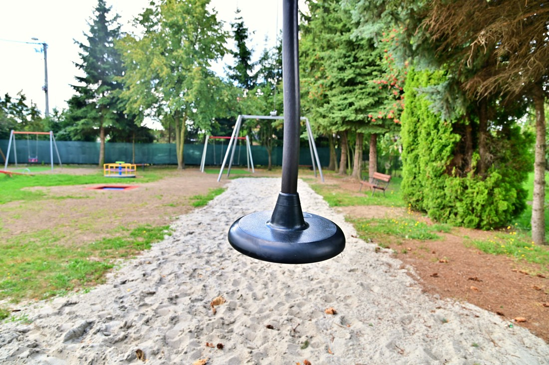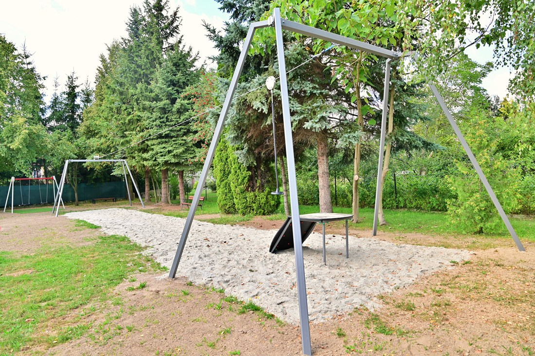Na terenie placu zabaw zainstalowano również trampolinę naziemną. Tego typu urządzenia są w ostatnich latach niezwykle popularnym elementem wyposażenia placów i parków. Co ciekawe – zgodnie z wytycznymi jest przeznaczona dla dzieci od 3 roku życia, pod nadzorem opiekuna a także – za sprawa trwałości wykorzystanych materiałów – również samych opiekunów. Dorosłych ucieszą również urządzenia charakterystyczne dla siłowni plenerowych. Rodzice bez obaw będą mogli skorzystać również ze zjazdu linowego, zwanego potocznie „tyrolką”. Atrakcja polegająca na zjeżdżaniu po linie rozpiętej między dwoma punktami na wysokości jest bowiem w stanie udźwignąć ciężar aż trzystu kilogramów.