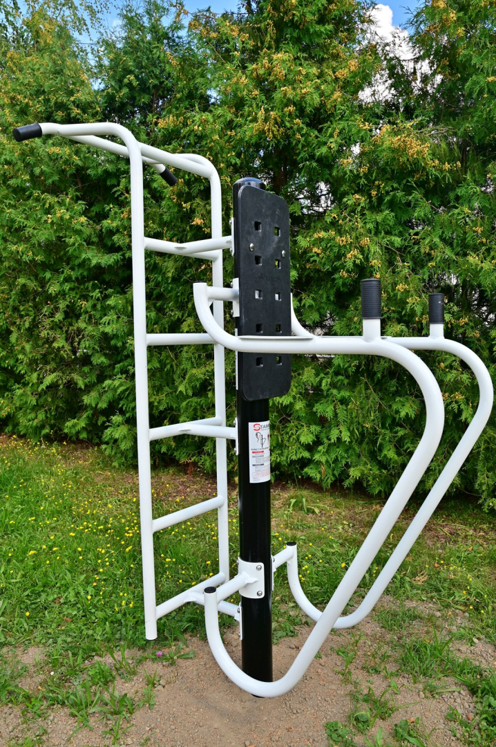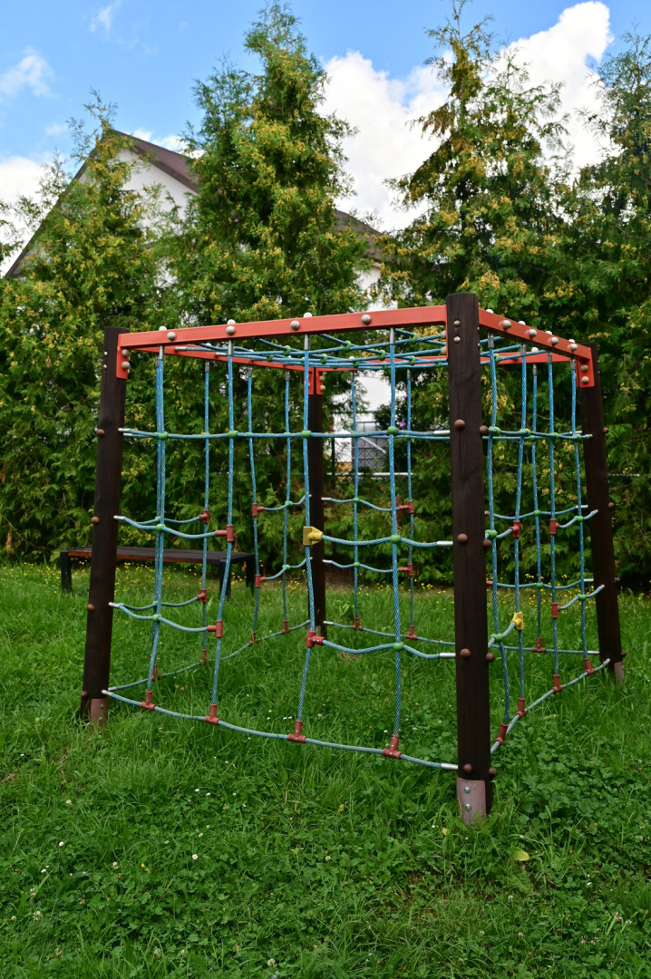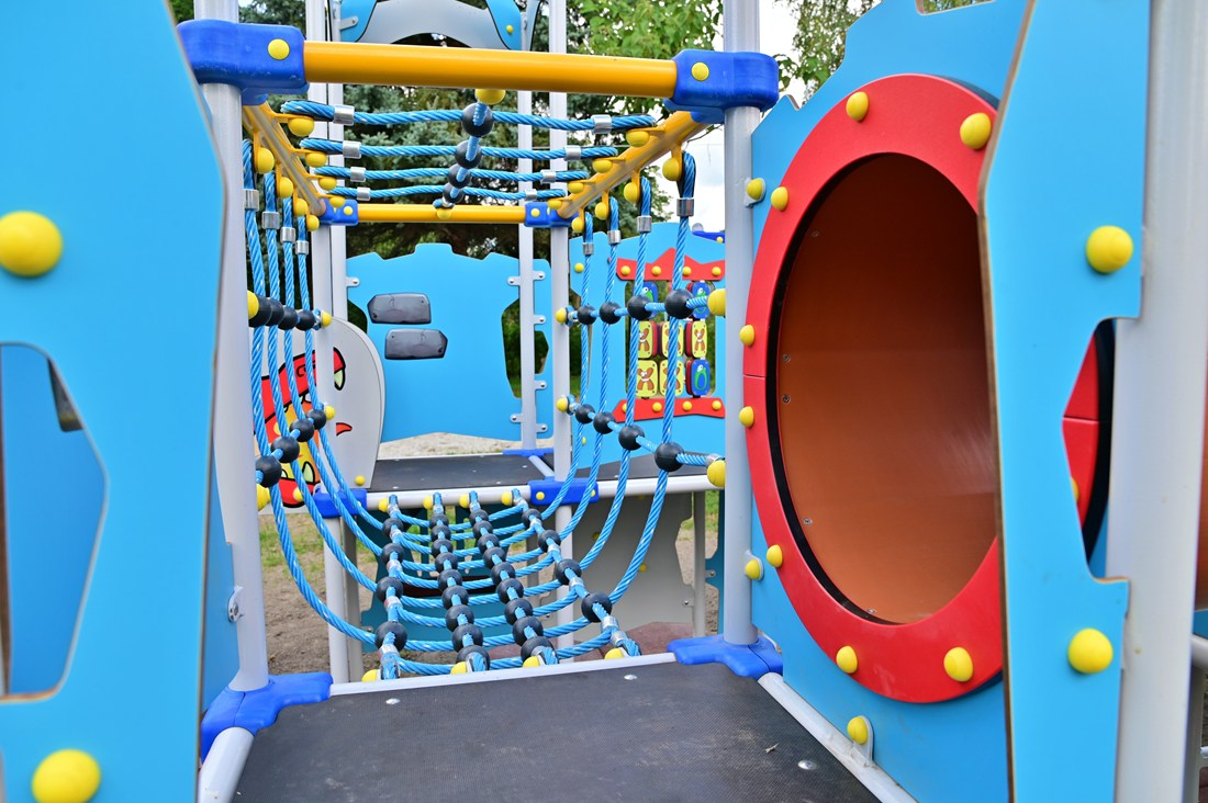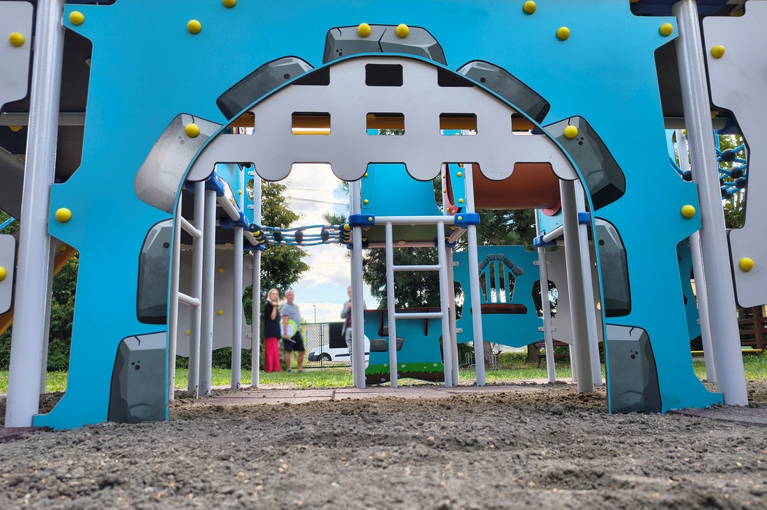 Na terenie placu zabaw zainstalowano również trampolinę naziemną. Tego typu urządzenia są w ostatnich latach niezwykle popularnym elementem wyposażenia placów i parków. Co ciekawe – zgodnie z wytycznymi jest przeznaczona dla dzieci od 3 roku życia, pod nadzorem opiekuna a także – za sprawa trwałości wykorzystanych materiałów – również samych opiekunów. Dorosłych ucieszą również urządzenia charakterystyczne dla siłowni plenerowych. Rodzice bez obaw będą mogli skorzystać również ze zjazdu linowego, zwanego potocznie „tyrolką”. Atrakcja polegająca na zjeżdżaniu po linie rozpiętej między dwoma punktami na wysokości jest bowiem w stanie udźwignąć ciężar aż trzystu kilogramów.