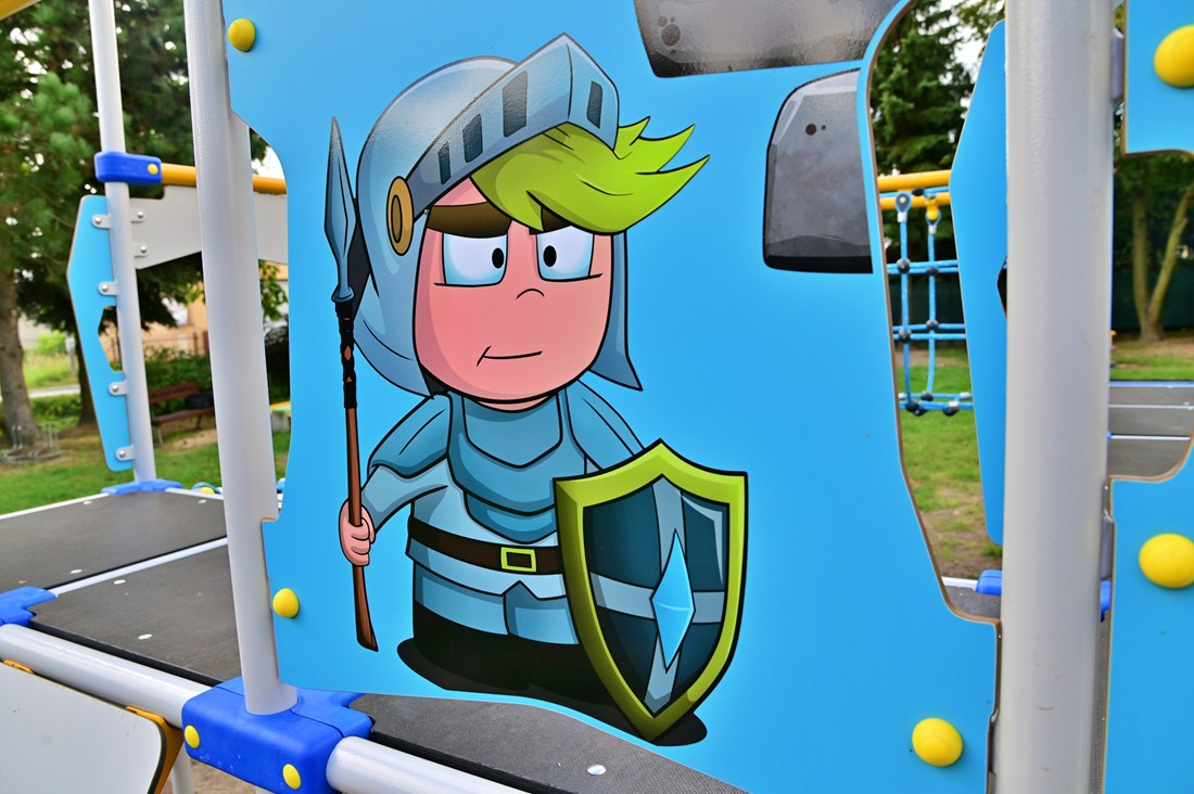 Centralnym punktem placu zabaw jest zestaw "Rycerska Warownia", czyli konstrukcja wyposażona w drabinki, liny i zjeżdżalnię. Dekoracje w postaci nadruków z motywem kamieni, duchów, smoków i rycerzy są odporne na działanie czynników atmosferycznych i promieniowania UV.
