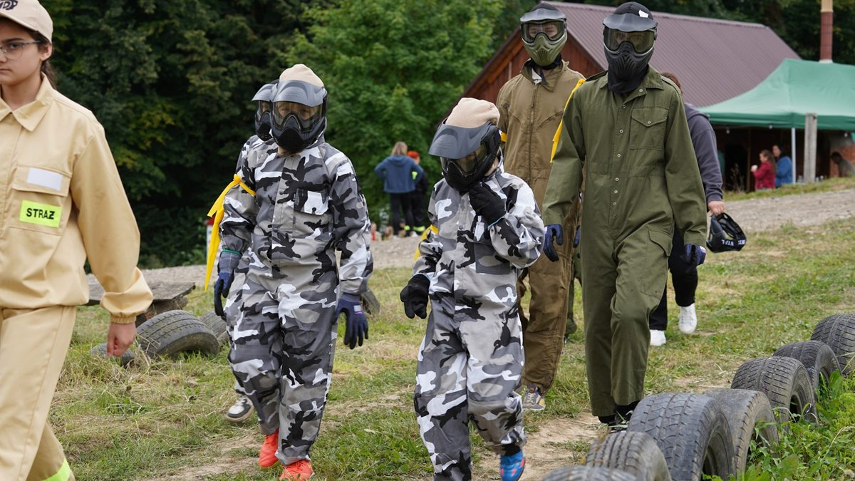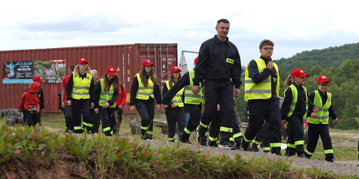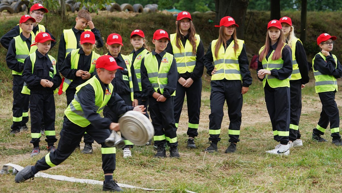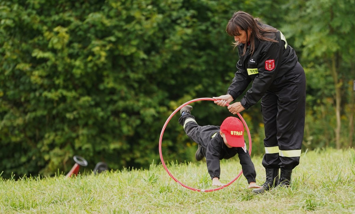 Młodzi strażacy uczestniczyli w konkurencjach sportowych i grach zespołowych, które wzmacniały ich zdolności do komunikacji oraz wspólnego rozwiązywania problemów.
