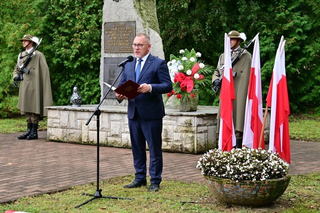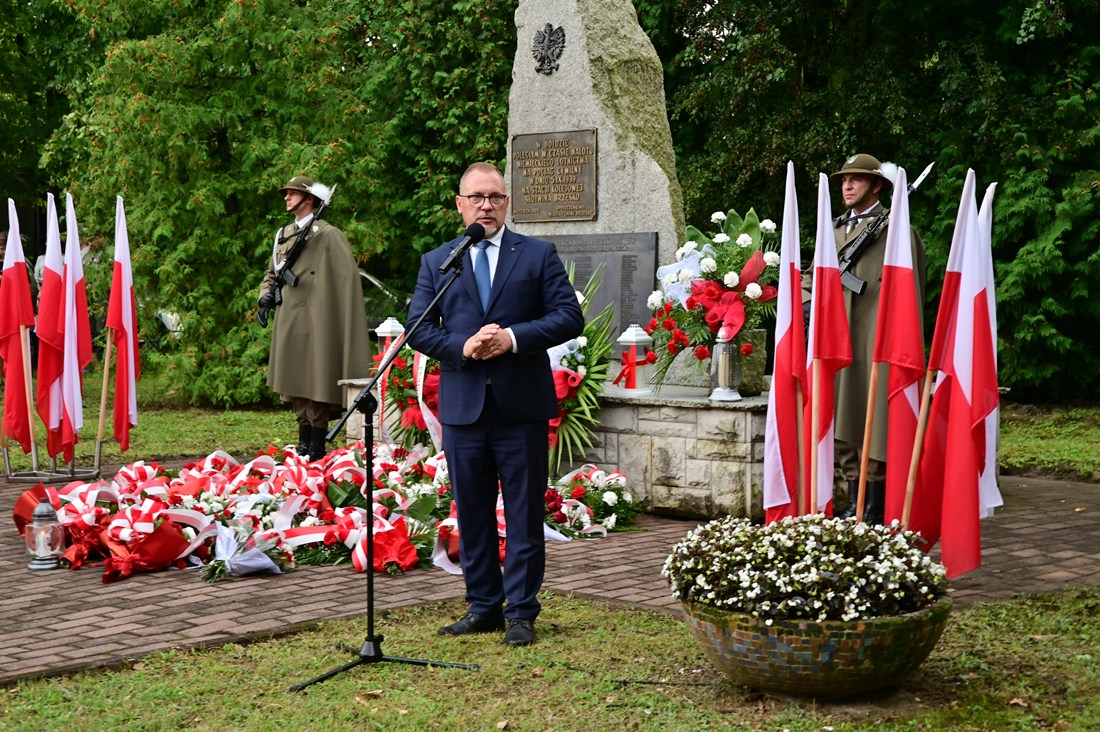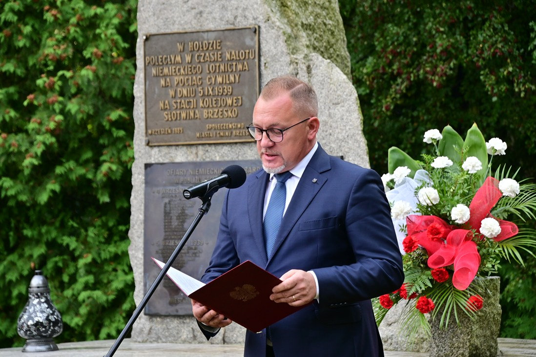 Przed pomnikiem okolicznościowe przemówienie wygłosił burmistrz Brzeska Tomasz Latocha. Włodarz zwrócił się do zgromadzonej wokół pomnika młodzieży - Ta uroczystość ma wymiar historyczny, bo pamiętamy o ofiarach września 1939 roku, ale ma też wymiar współczesny, bo uczymy się historii i chcemy, by nigdy się nie powtórzyła. Drodzy uczniowie, harcerze, to dla was ta szczególna lekcja i dumny jestem, że jesteście tutaj każdego roku, a dzisiaj w kościele zajęliście miejsca, by wysłuchać tragicznej historii którą przytoczył dla was i dla nas wszystkich ksiądz proboszcz. Musicie wiedzieć, że wolność nie jest dana raz na zawsze (…). Musicie ją pielęgnować, strzec i budować ją wspólnie.