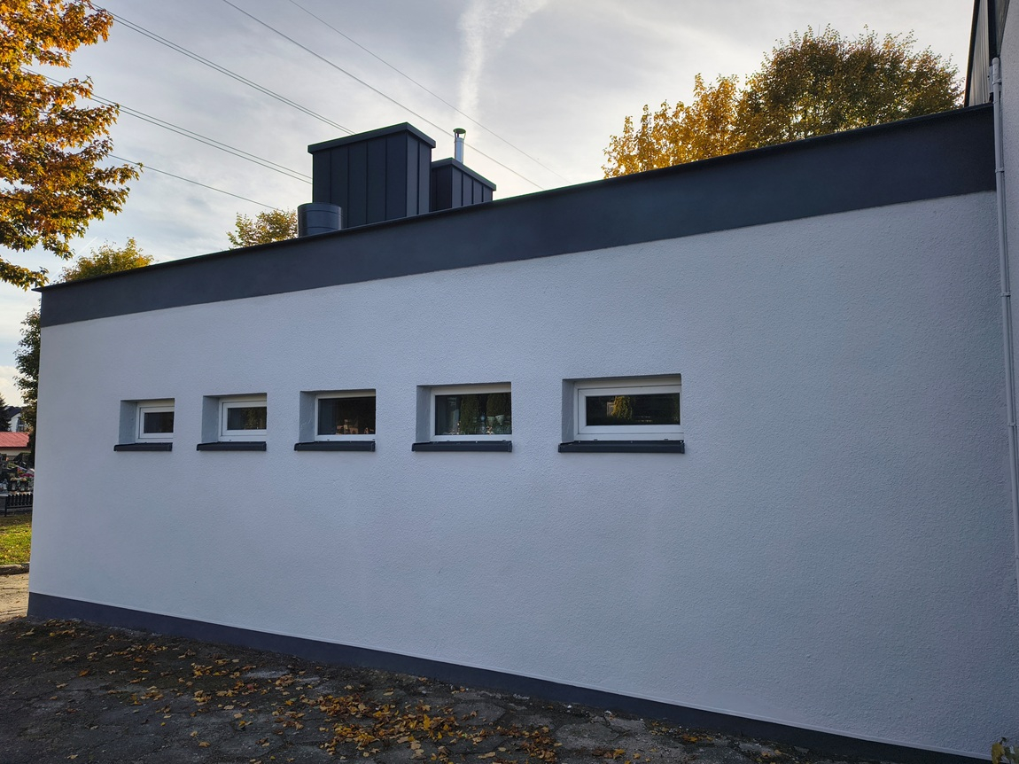 Kluczowym elementem przeprowadzonej inwestycji była całkowita wymiana poszycia dachowego wraz z niezbędnymi okuciami i elementami towarzyszącymi, na co z budżetu przeznaczono blisko 49 tysięcy złotych. Zabezpieczono i odnowiono również stare kominy. Następnie przeprowadzono wymianę głównej, przeszklonej witryny kaplicy, co wiązało się z zainstalowaniem nowych szyb oraz wymianą całej stolarki okiennej. Koszt tej części modernizacji to niemal 34 tysiące złotych. Konieczny okazał się również generalny remont elewacji, która z uwagi na upływ czasu i brak wcześniejszych renowacji znajdowała się w bardzo złym stanie. Odnowienie elewacji oraz montaż nowych rynien i spustów to koszt ponad 33,5 tysiąca złotych.