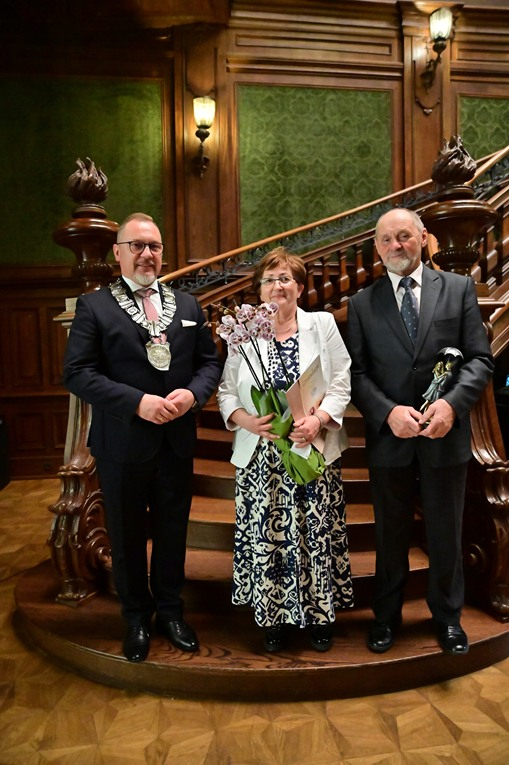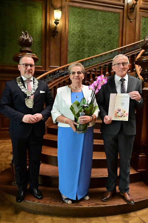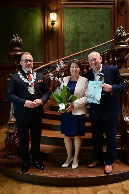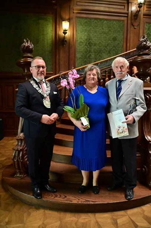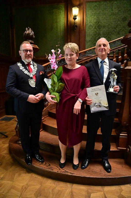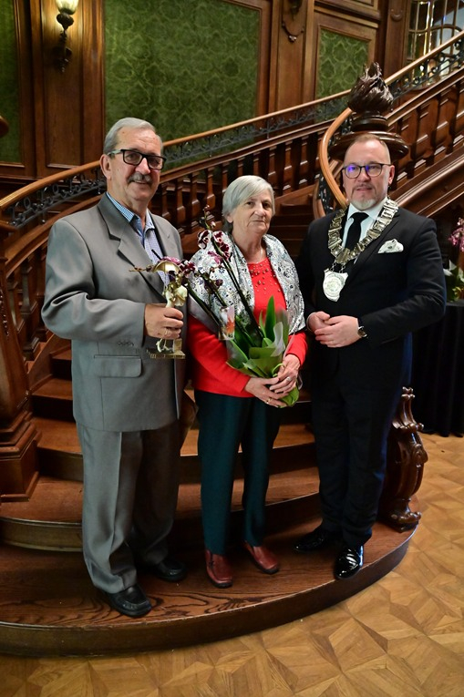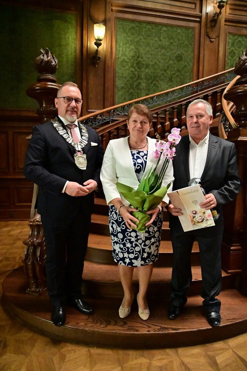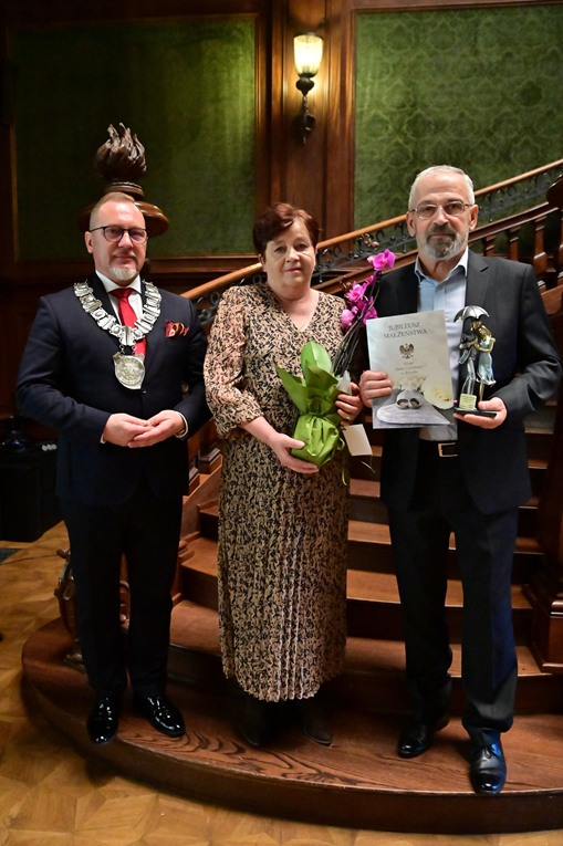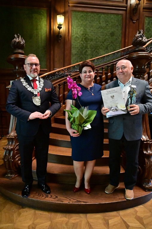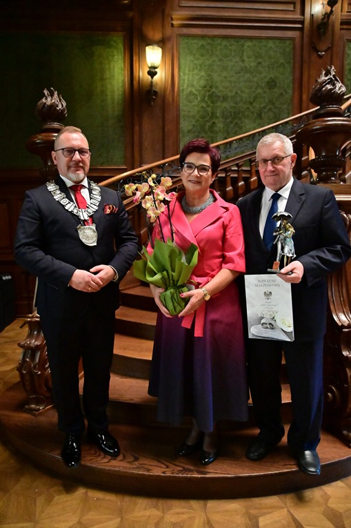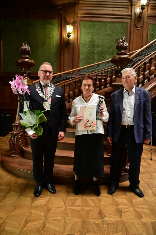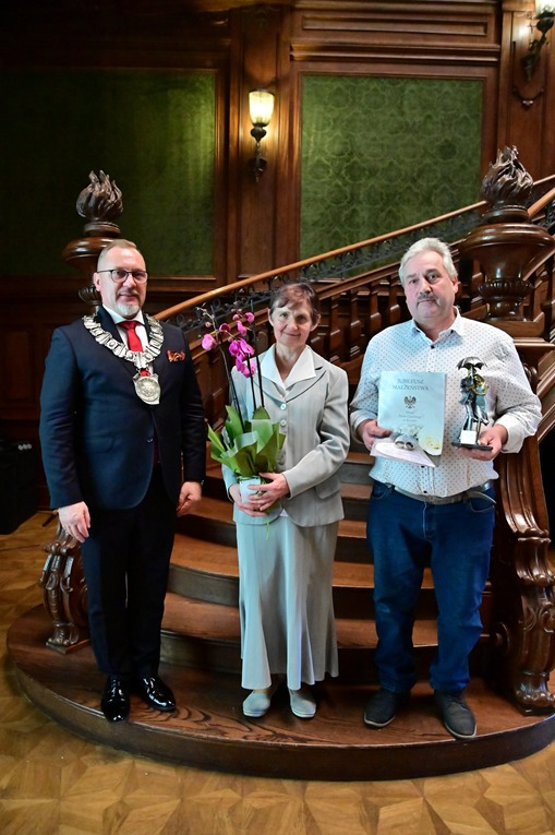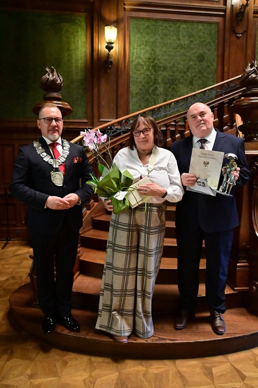 W tym roku organizatorzy postanowili obdarować każdą parę kwiatami, listem gratulacyjnym oraz symboliczną figurką. Idea wymiany tradycyjnego medalu na figurkę była prosta - można ustawić ją w widocznym miejscu, by jak najczęściej przywoływała wspomnienia lat spędzonych razem oraz miłych chwil towarzyszących samej uroczystości. A tych nie brakowało. O doznania muzyczne zadbali bowiem artyści z Miejskiego Ośrodka Kultury: Agnieszka Piekarz, Milena Halik, Anastazja Maćkowska, Zuzanna Musialska, Jessica Smith, Szymon Pawlik i Marcel Kózka. Tego roku 45-lecie ślubu obchodziła Aleksandra Fijałkowska wraz z mężem Henrykiem. Pani Aleksandra przez wiele lat kierowała brzeskim USC. Na zasłużoną emeryturę przeszła dopiero w marcu tego roku. Wizytę w pałacu wykorzystała, by podzielić się wspomnieniami i opowiedzieć o organizacji jubileuszy w latach poprzednich.