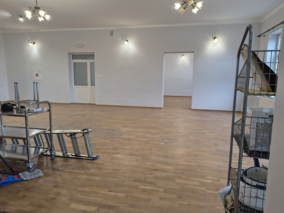Wśród wykonanych prac znalazły się m.in. odnowienie lamperii, wymiana skrzydeł drzwiowych, remont zabudowy kuchennej, wykonanie sufitu podwieszanego wraz z okapem, malowanie ścian i sufitów, całkowity remont toalet, a także wymiana płytek i armatury, zakup kuchni gastronomicznej: gazowo-elektrycznej 6-palnikowej, remont zaplecza na naczynia i drobny sprzęt AGD oraz adaptacja części korytarza na estetyczny schowek na sprzęt do utrzymania czystości w budynku.