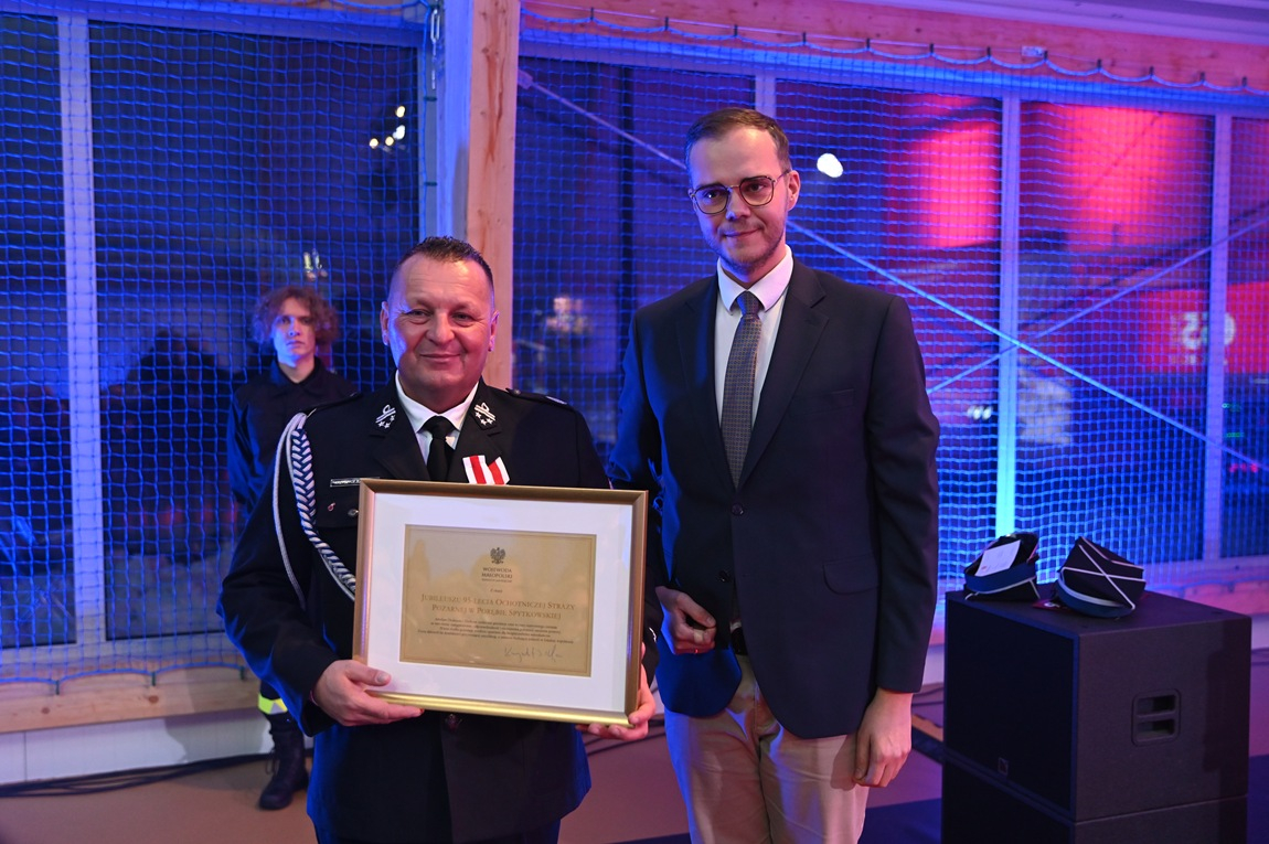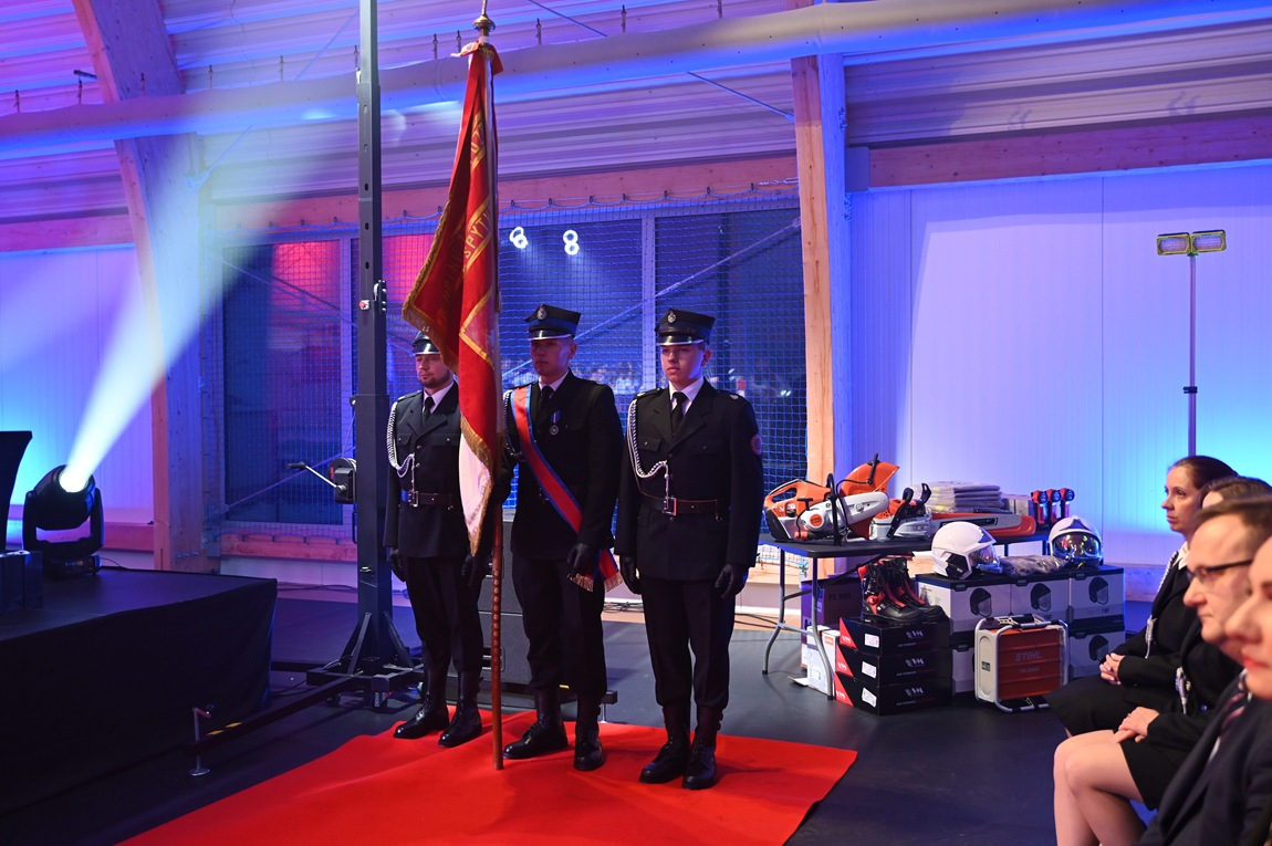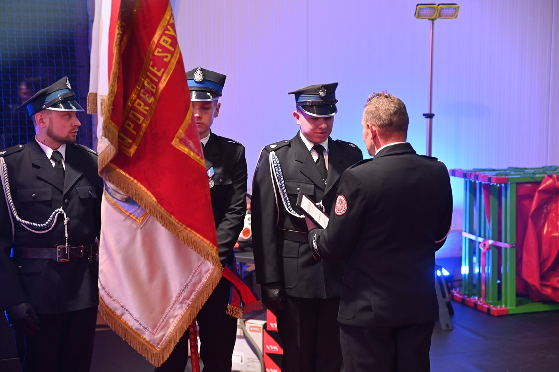 Wykorzystując wyjątkowe okoliczności towarzyszące jubileuszowi, Burmistrz Tomasz Latocha w asyście dyrektora Biura Wojewody Małopolskiego Łukasza Krzysztofika przekazał druhom sprzęt zakupiony w ramach środków pozyskanych przez pracowników urzędu miejskiego z Programu Ochrony Ludności i Obrony Cywilnej. Wśród ekwipunku znalazły się m.in. umundurowanie bojowe, maszt oświetleniowy, pilarka, przecinarka do betonu, hełmy, rękawice, składany zbiornik i stacja zasilająca.