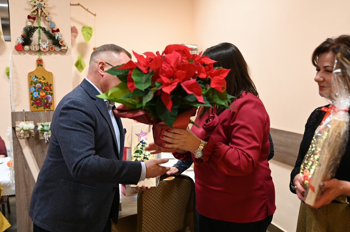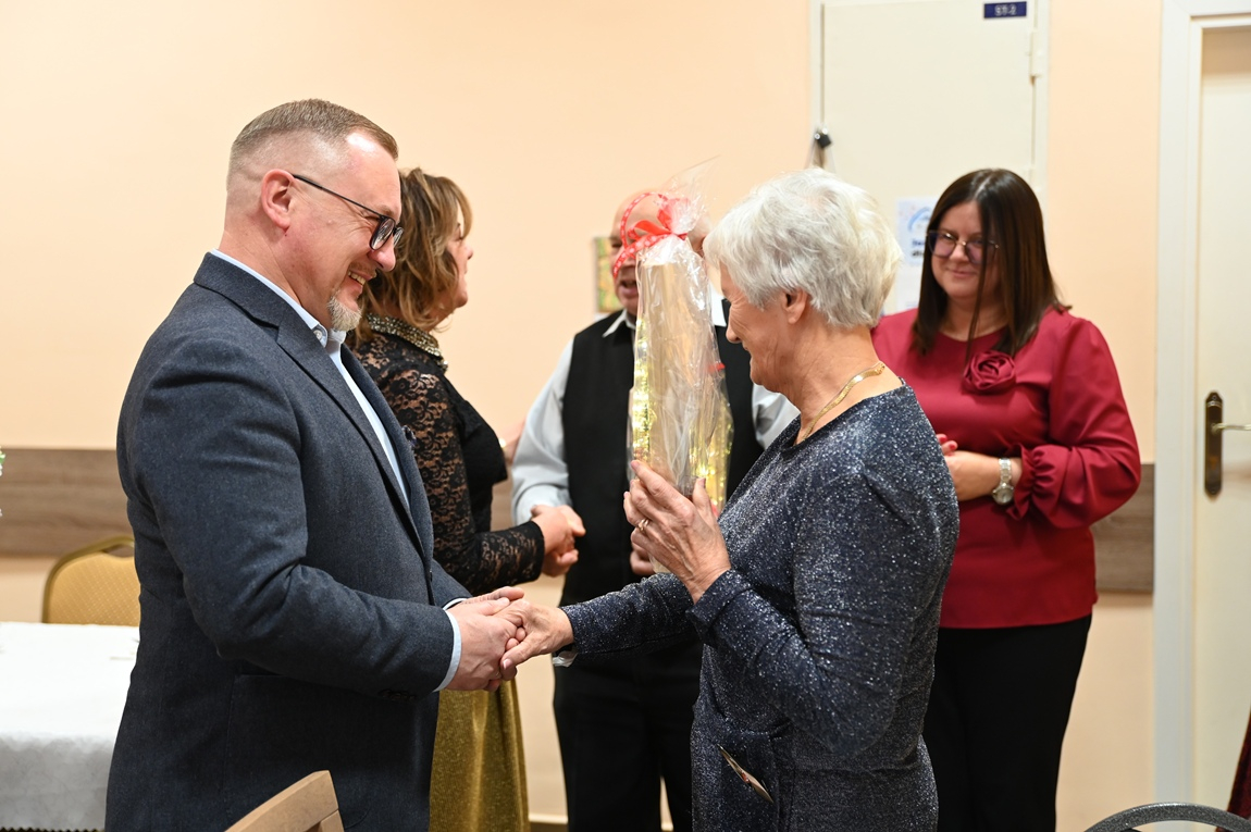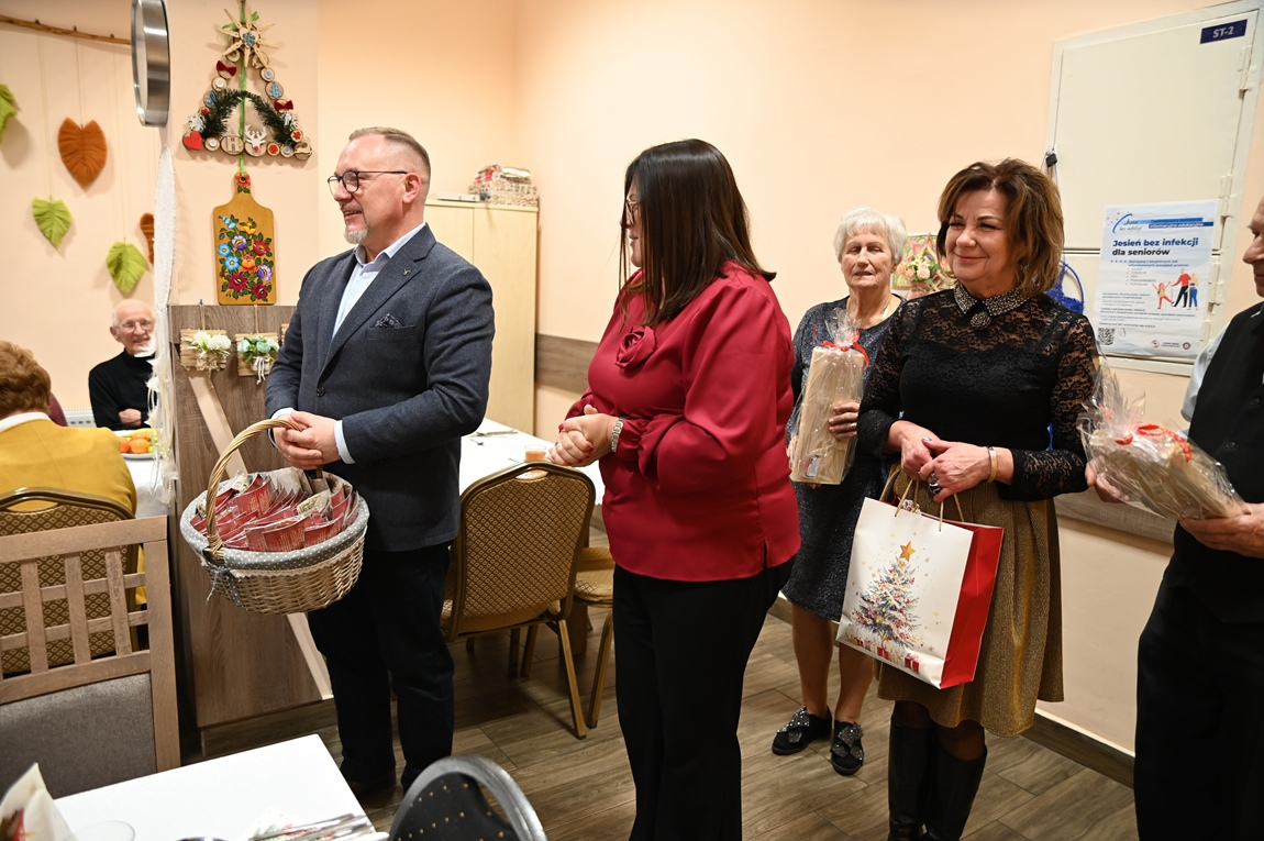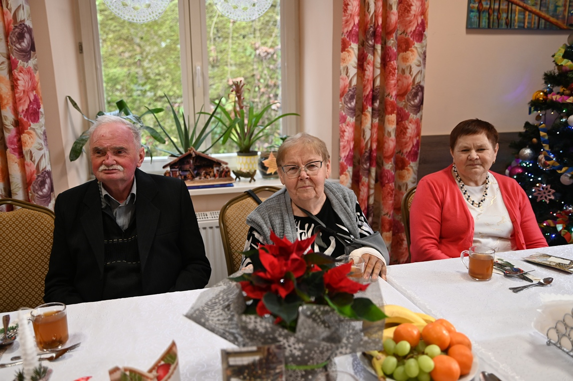 Grudniowa wizyta była okazją do rozmów o celebrowaniu tego wyjątkowego czasu oraz o znaczeniu świątecznych symboli. Okazuje się, że można je odnaleźć nawet w najprostszych rzeczach. Za przykład posłużył ręcznie wykonany choinkowy łańcuch – możemy go traktować jako symbol rodziny, w której każde ogniwo jest tak samo ważne. Właśnie dlatego o nikim nie można zapominać, bo często wystarczy że uszkodzi się jeden element i łańcuch będzie rozerwany. Babcia i dziadek mają takie samo znaczenie jak najmłodsi – mówił burmistrz, przekazując seniorom życzenia z okazji nadchodzących świąt oraz sianko i opłatek jako drobny, tradycyjny upominek. Od progu czuć było rodzinną, serdeczną atmosferę, co już od lat jest znakiem rozpoznawczym tej placówki.