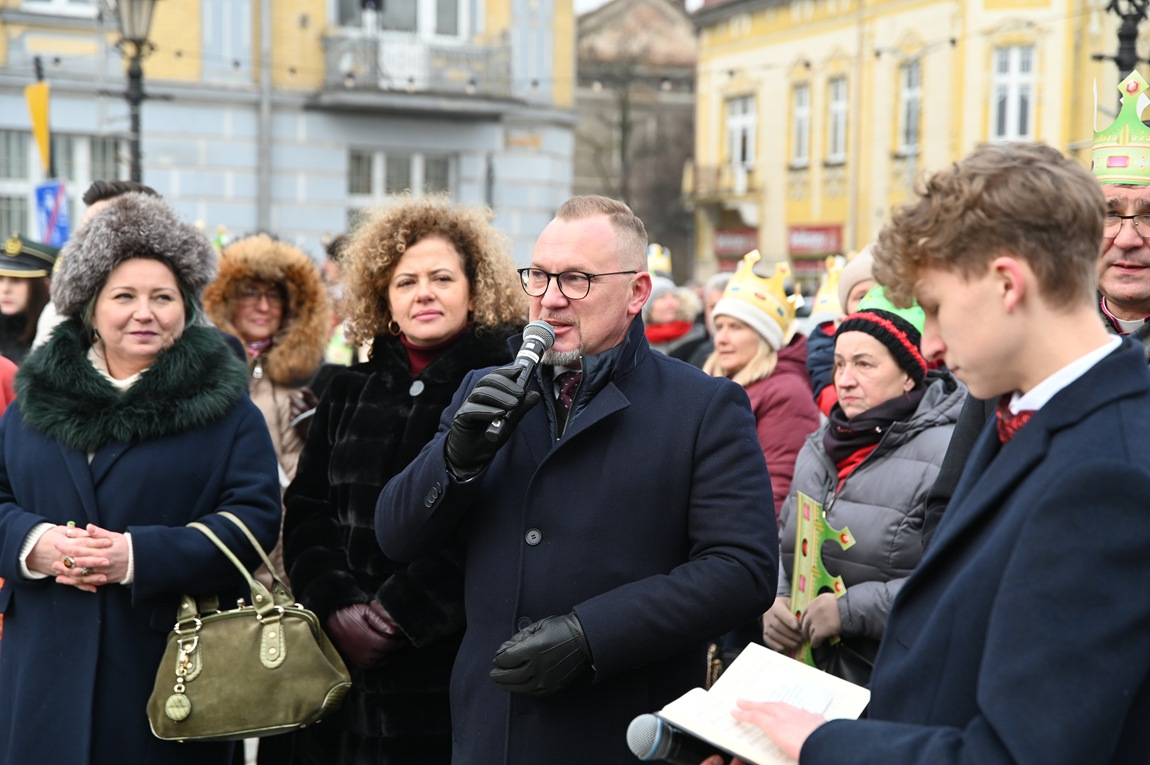 Głos zabrali również duchowni - proboszcz parafii Miłosierdzia Bożego Wojciech Werner oraz Józef Drabik kustosz Sanktuarium św. Jakuba Starszego Apostoła, który skierował w stronę uczestników kilka istotnych słów, zwracając uwagę na zakończenie wyjątkowego dla kościoła katolickiego roku jubileuszowego. Okres ten minął pod hasłem „Pielgrzymi Nadziei”. Prałat zachęcał jednak przede wszystkim do patrzenia w przyszłość: - Przed chwilą w Rzymie papież zamknął drzwi ostatniej z czterech bazylik (…) i zakończył się rok święty. Tegoroczny Orszak Trzech Króli przebiega pod hasłem „Nadzieją się cieszą”. Tą nadzieją żyjmy przez cały kolejny rok, bo tej nadziei otrzymaliśmy bardzo dużo, korzystając ze wszystkich łask roku jubileuszowego.
