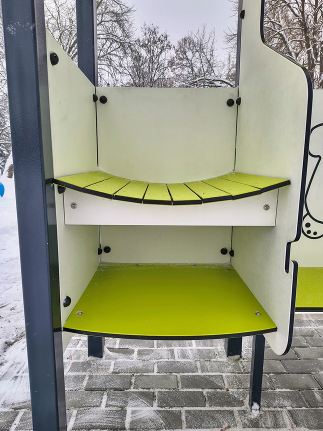 Każda konstrukcja składa się z zadaszenia chroniącego przed deszczem i słońcem, profilowanego przewijaka z półką na akcesoria, wygodnego siedziska oraz wieszaka na torbę. Pod względem technicznym obiekty opierają się na stalowych słupach nośnych oraz elementach ze stali nierdzewnej. Ścianki i dach wykonano z ekologicznej płyty HDPE, która cechuje się wysoką trwałością, odpornością na czynniki zewnętrzne oraz bezpieczeństwem w kontakcie z dziećmi. Wszystkie wykorzystane przy realizacji materiały i urządzenia posiadają stosowne atesty techniczne oraz spełniają obowiązujące normy jakości.