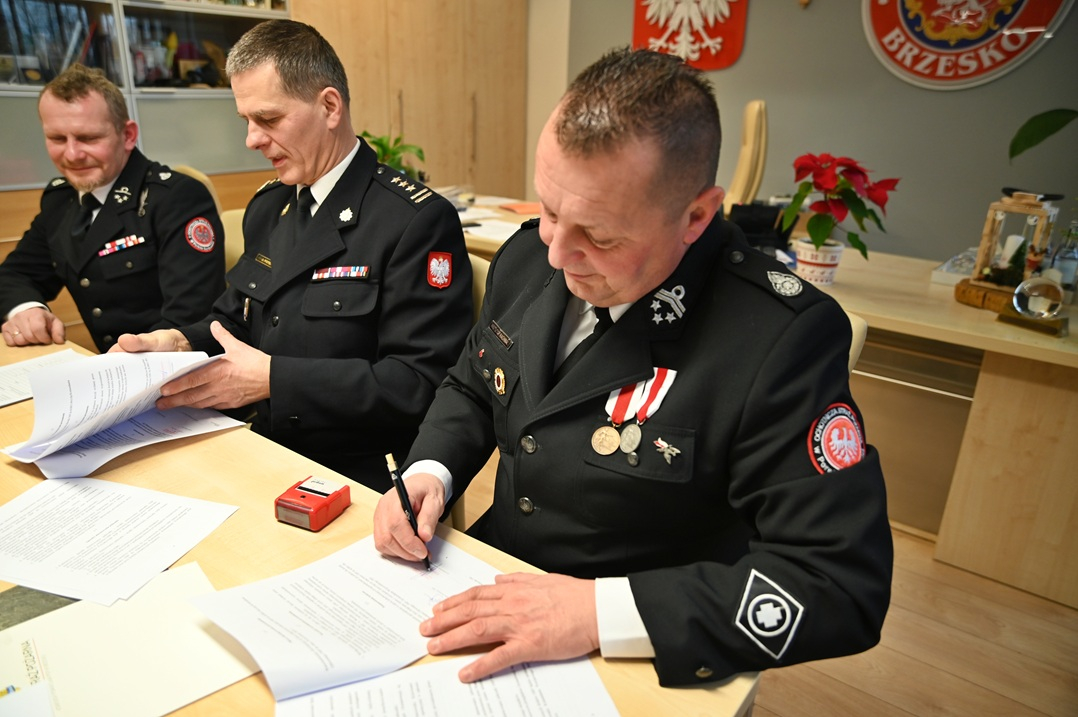 30 stycznia w Urzędzie Miejskim podpisano porozumienie w sprawie przyłączenia Ochotniczej Straży Pożarnej w Porębie Spytkowskiej do Krajowego Systemu Ratowniczo-Gaśniczego. W spotkaniu udział wzięli Burmistrz Tomasz Latocha, Komendant Powiatowy Państwowej Straży Pożarnej w Brzesku st. bryg. Janusz Potera, Komendant Gminny ZOSP RP Krzysztof Rachwał, Naczelnik OSP Poręba Spytkowska Krystian Karaś oraz Przewodniczący Rady Miejskiej w Brzesku Adrian Zaleśny, pełniący w jednostce funkcję sekretarza.