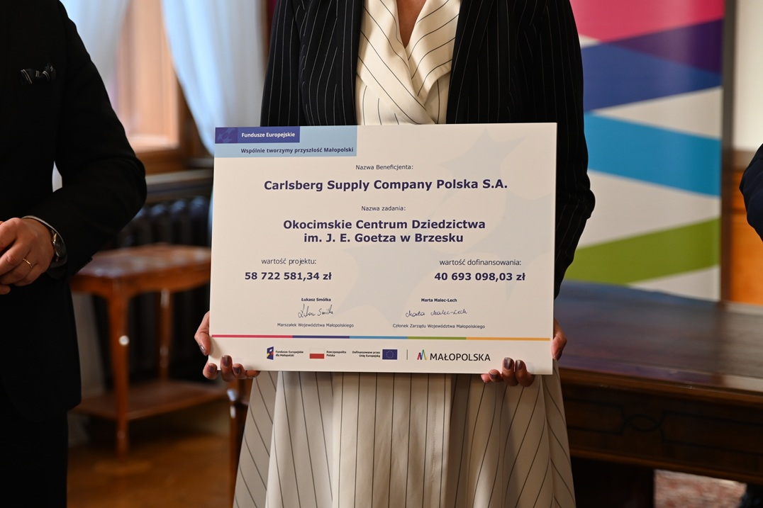W piątek, 6 lutego we wnętrzach browaru odbyło się oficjalne przekazanie promesy Zarządu Województwa Małopolskiego dla Browaru Okocim, na mocy której projekt stworzenia Centrum został wybrany do dofinansowania w ramach Funduszy Europejskich. W spotkaniu udział wzięli Marta Malec-Lech – Członkini Zarządu Województwa Małopolskiego, Mieszko Musiał – Prezes Zarządu Carlsberg Polska, Marcin Będlin – Dyrektor Browaru Okocim oraz burmistrz Brzeska Tomasz Latocha.