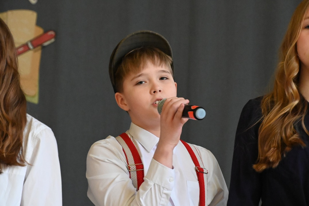 Na szkolnej scenie wybrzmiały znane utwory z okresu okołowojennego, m.in. „Ta ostatnia niedziela”, „Zimny drań” czy „Tango Milonga”. Postawiono na nie nie bez powodu, bowiem na mocy uchwały Sejmu Rzeczypospolitej Polskiej, rok 2026 został oficjalnie ustanowiony Rokiem Mieczysława Fogga (właśnie przypada 125. rocznica jego urodzin). Fogg był postacią, która propagowała polską kulturę na niemal wszystkich kontynentach. W najtrudniejszych chwilach, podczas wojny i powstania nie przestał śpiewać po polsku - występował dla walczących, podnosząc ich na duchu.