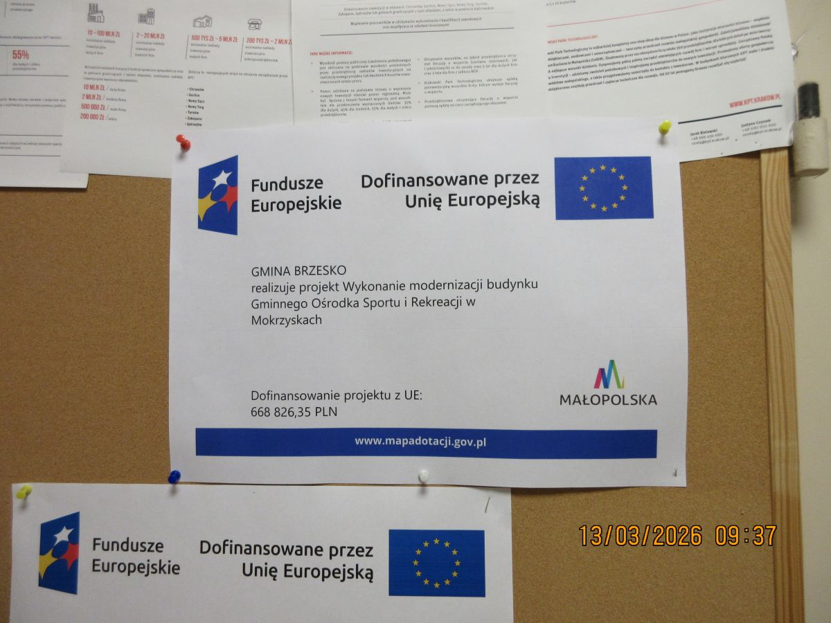 Cele: rozwój infrastruktury kultury oraz podniesienie standardu jej funkcjonowania poprzez modernizację budynku Gminnego Ośrodka Sportu i Rekreacji w Mokrzyskach. Zmodernizowanie 1 obiektu kulturalnego w sołectwie Mokrzyska na terenie Gminy Brzesko. Zwiększenie liczby osób korzystających z oferty kulturalnej na terenie Gminy Brzesko.