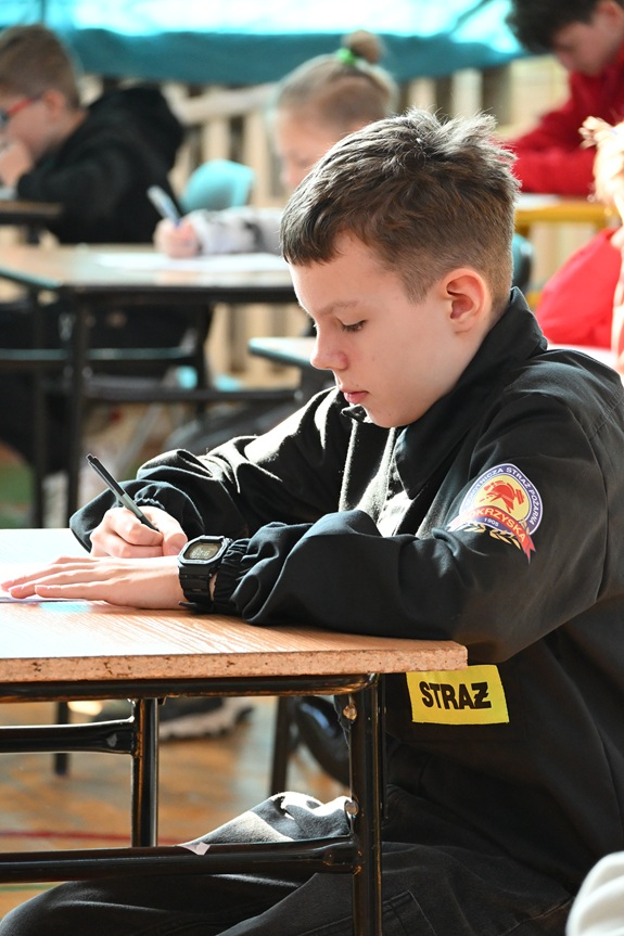 Jak nazywa się organizacja zrzeszająca Ochotnicze Straże Pożarne w Polsce? Jakie są pierwsze objawy zatrucia tlenkiem węgla? Co oznacza litera „C” w skrócie GCBA? Jakie warunki należy spełnić, by móc uczestniczyć w akcjach ratowniczo-gaśniczych? Na te i szesnaście innych pytań musieli znać odpowiedź uczestnicy gminnego etapu Ogólnopolskiego Turnieju Wiedzy Pożarniczej. Co ważne – zaprezentowane zagadnienia pochodzą jedynie z arkusza przeznaczonego dla najmłodszej grupy uczestników.