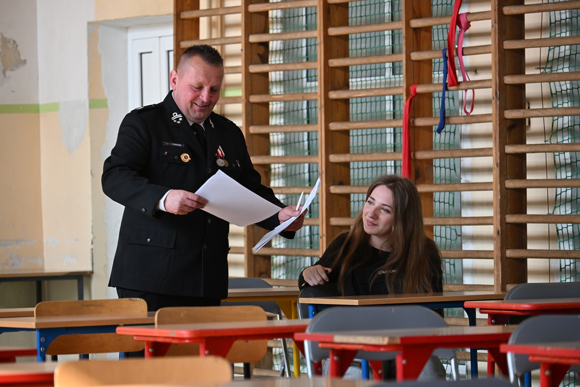 Jeszcze poważniej sprawy wyglądały w grupie klas V-VIII. Tutaj trzeba było wiedzieć m.in. w którym roku powstała pierwsza w Polsce jednostka OSP, czym charakteryzuje się oparzenie drugiego stopnia oraz czym jest sorbent. Uczniowie klas ponadpodstawowych musieli natomiast wykazać się wiedzą o pulsoksymetrii, komisjach OSP i szeregowaniu sprzętu bojowego. Większa była również liczba pytań.